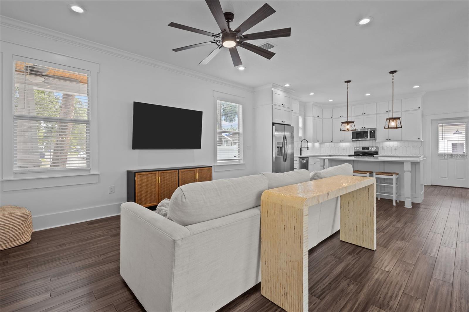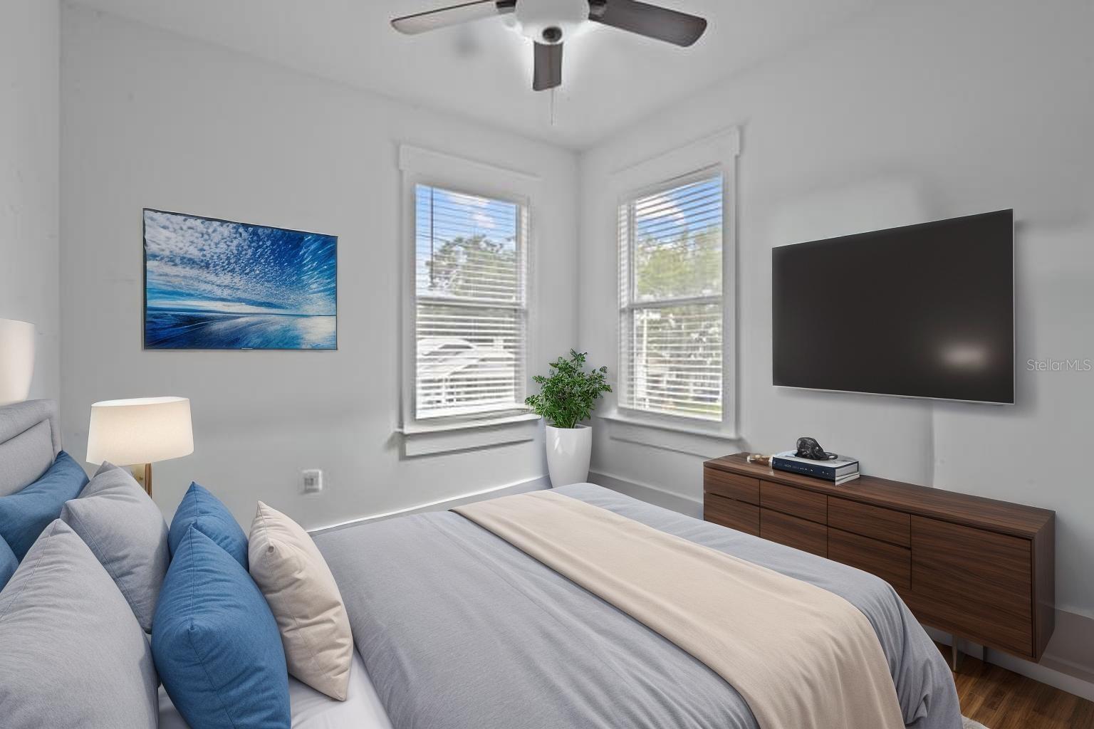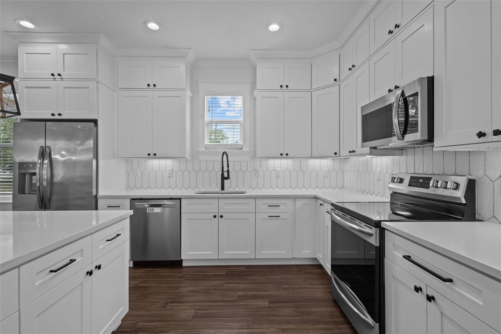 Welcome to 502 E Robles St, a stunning 3-bedroom, 2.5 bathroom home situated on a desirable corner lot in the heart of Historic Tampa Heights. Built in 2023 by Vikin Homes, a trusted builder known for their quality craftsmanship throughout Tampa Heights, this home seamlessly blends modern amenities with classic bungalow charm. The property’s curb appeal is undeniable, with a picturesque wrap-around front porch perfect for morning coffee, working from home, or evening relaxation. Step inside to find an open-concept first floor featuring wood flooring, oversized windows, and a bright, airy layout. At the center of it all is a show-stopping kitchen with an expansive island, solid wood cabinetry, tile backsplash, stainless steel appliances, pendant lighting, and bar seating—ideal for both everyday living and entertaining. Upstairs, the spacious primary suite offers a full en suite retreat with dual sinks, a large walk-in shower, and a private water closet. The two additional bedrooms share a well-appointed full bathroom, while a half bath on the main level adds convenience for guests. Modern upgrades include energy-efficient windows, upgraded plumbing and electrical systems, and a detached 2-car garage. The fully fenced backyard adds privacy and versatility, while the corner lot provides additional outdoor space and charm. The location is unbeatable—walk to the Tampa Riverwalk, Armature Works, and local waterfront parks and restaurants. Quick access to major highways makes it easy to explore Hyde Park, Downtown Tampa, or the beaches of St. Pete. Don't miss the opportunity to own a recently built home in one of Tampa’s most vibrant and historic neighborhoods. Schedule your private showing today! --