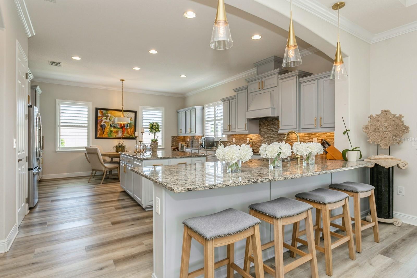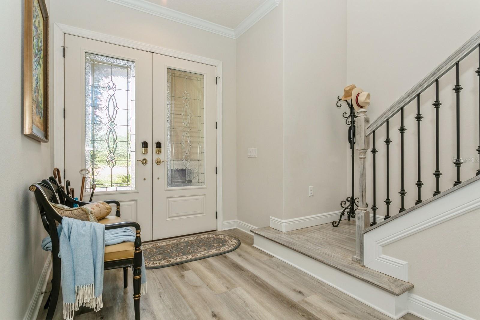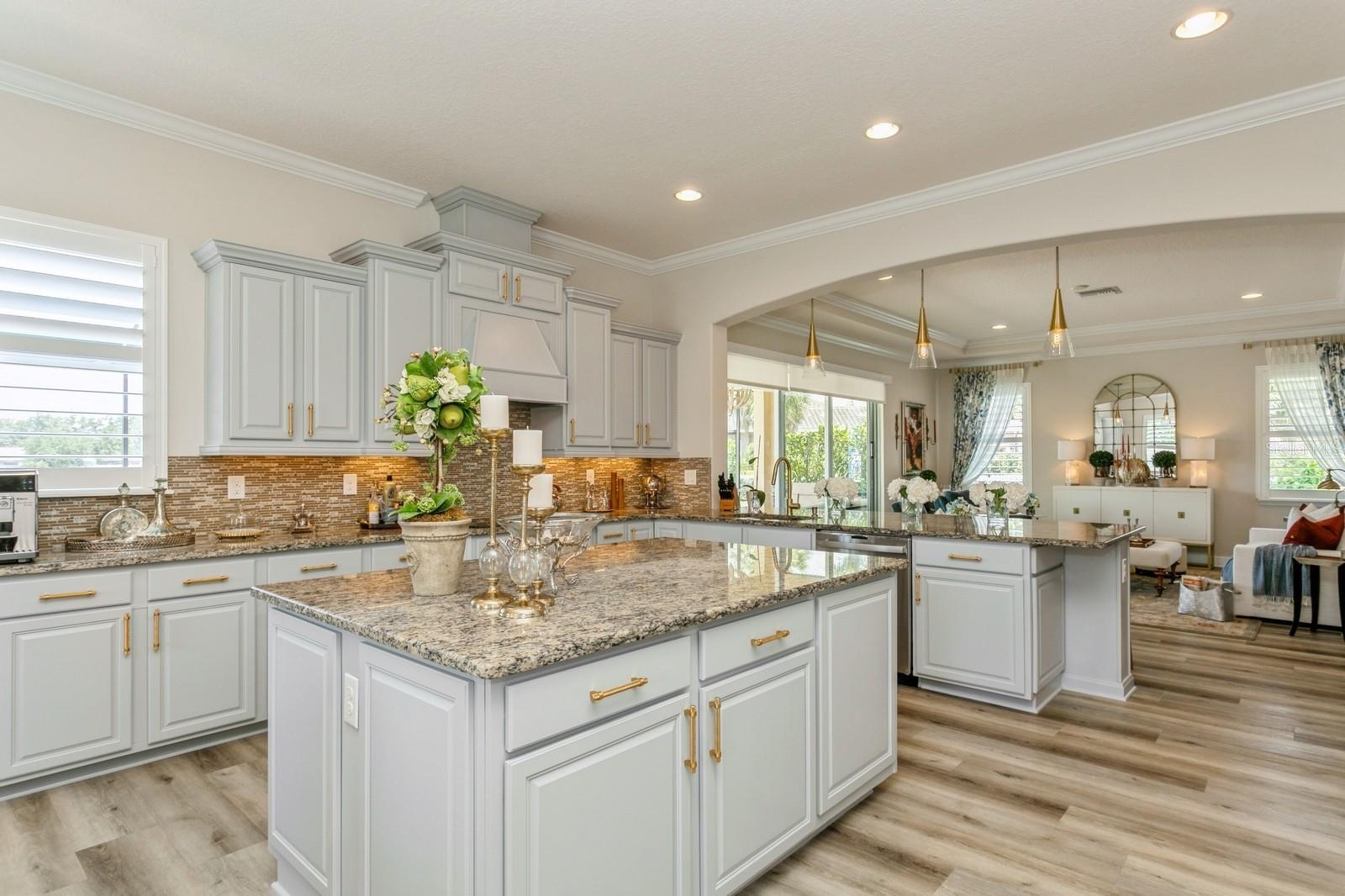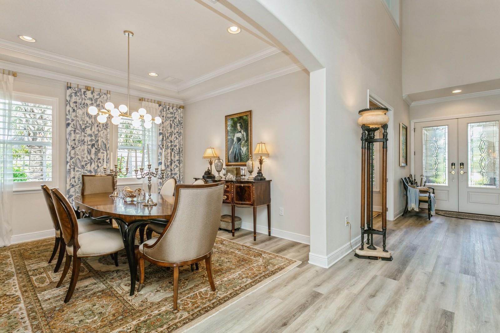 Luxuriously appointed 5 bedroom/ 4.5 bathroom home with many updates. Situated on 1+ acres in the unique gated community of Vilano, known for its spacious landscaped lots. Landscaping had a complete makeover in 2022 adding privacy and beautification to the property. It includes evening light enhancement, low-maintenance perennial garden with native and flowering plants and trees. This home boasts tray ceilings and new hurricane rated double glass front doors which provide elegance and light into the entrance of the home. There is a large gourmet kitchen with sizable island, new appliances and updated cabinetry, new floors in the entire home, new window shutters, solar shades and heated-saltwater pool. Lighting (all dimmable) and plumbing fixtures have been replaced throughout the home as well. High ceilings with crown molding complement the appearance of the home showcasing timeless stature. The first floor includes an in-suite bedroom with full bath. You will also find a butler pantry, study, dining room, laundry room and powder room on the first floor. Spacious second-floor master bedroom has double doors leading to a large master suite with sitting area, new his and hers walk-in closets featuring floor-to-ceiling cabinets, spinning shoe tower with full-length mirror and a pull-down rack. Master suite is also appointed with linen closet, his/hers vanities, a soaking tub, and a large shower. There are three additional bedrooms upstairs of which two have in-suite full bathrooms. The second floor includes a large multipurpose loft with an abundance of windows. The three car garage is deeper than most which provides for extra storage . This home is a two minute drive away from the award winning Laurel Oaks Country Club with amenities including two 18 hole golf courses, 12 Har-Tru tennis courts, six pickleball courts, a remodeled clubhouse and pool.