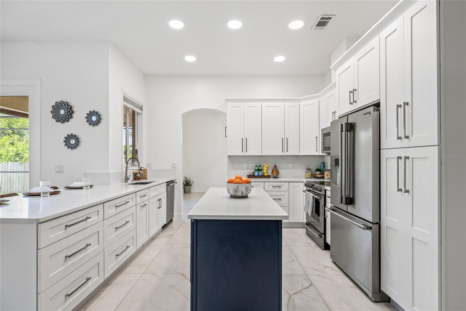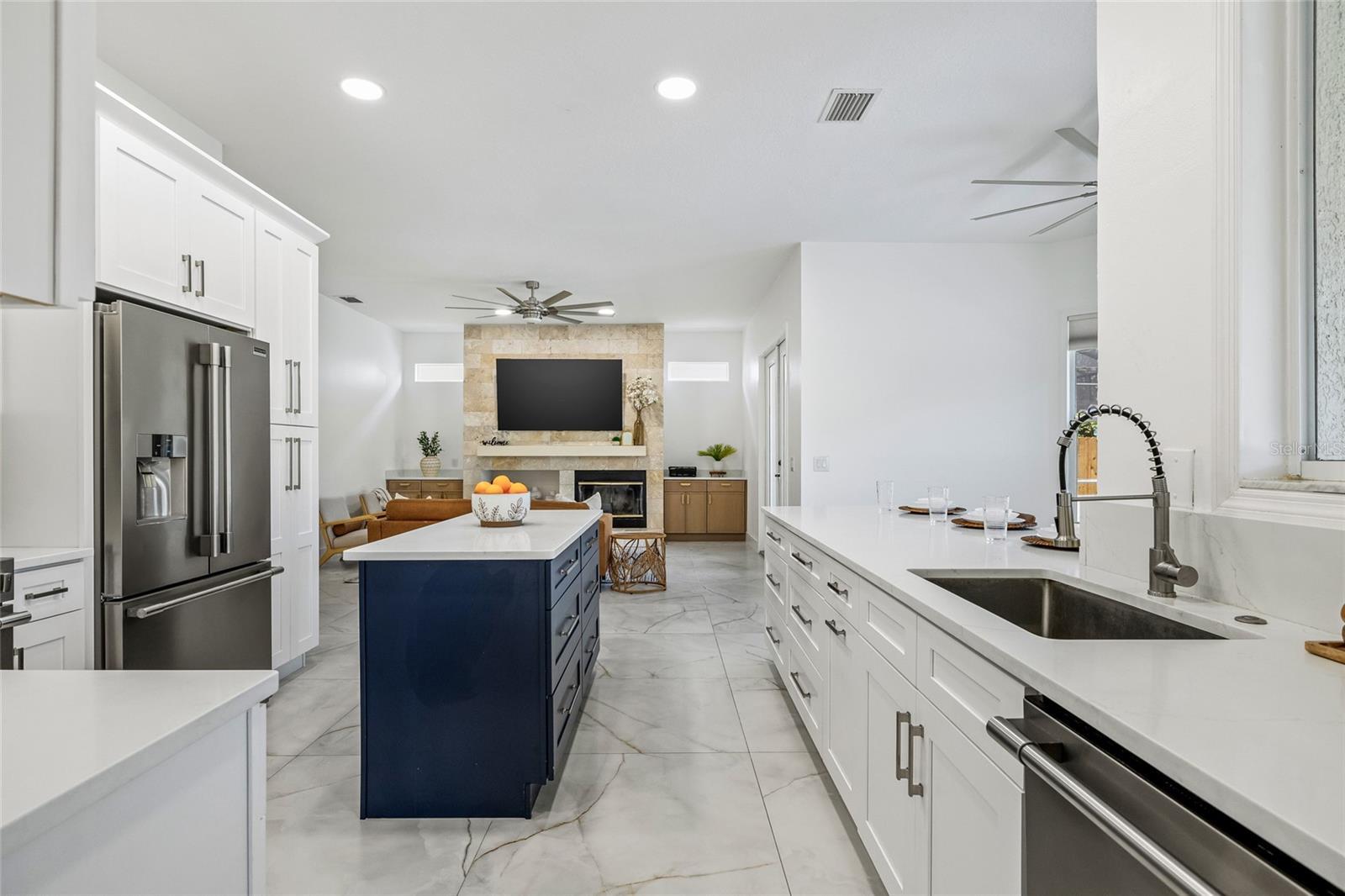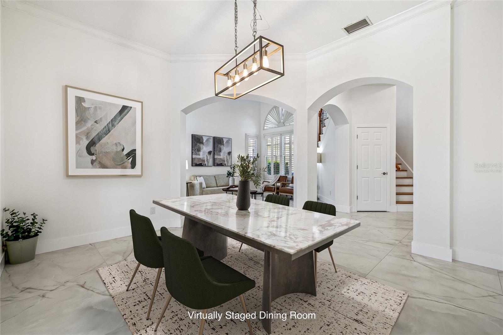 - Built-in Features, Cathedral Ceiling(s), Ceiling Fans(s), Crown Molding, Eat-in Kitchen, High Ceilings, Kitchen/Family Room Combo, Living Room/Dining Room Combo, Solid Wood Cabinets, Stone Counters, Thermostat, Vaulted Ceiling(s), Walk-In Closet(s), Window Treatments