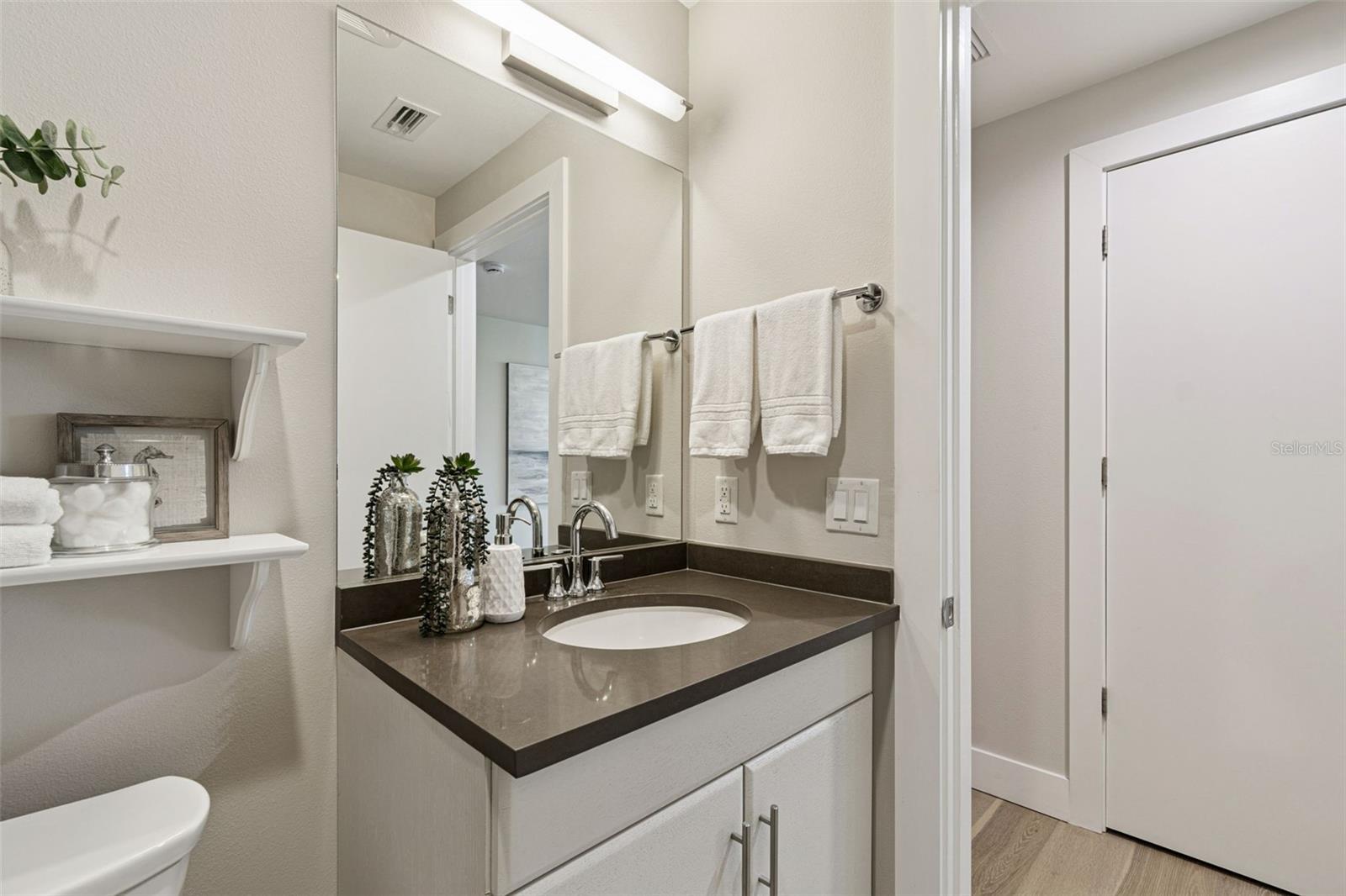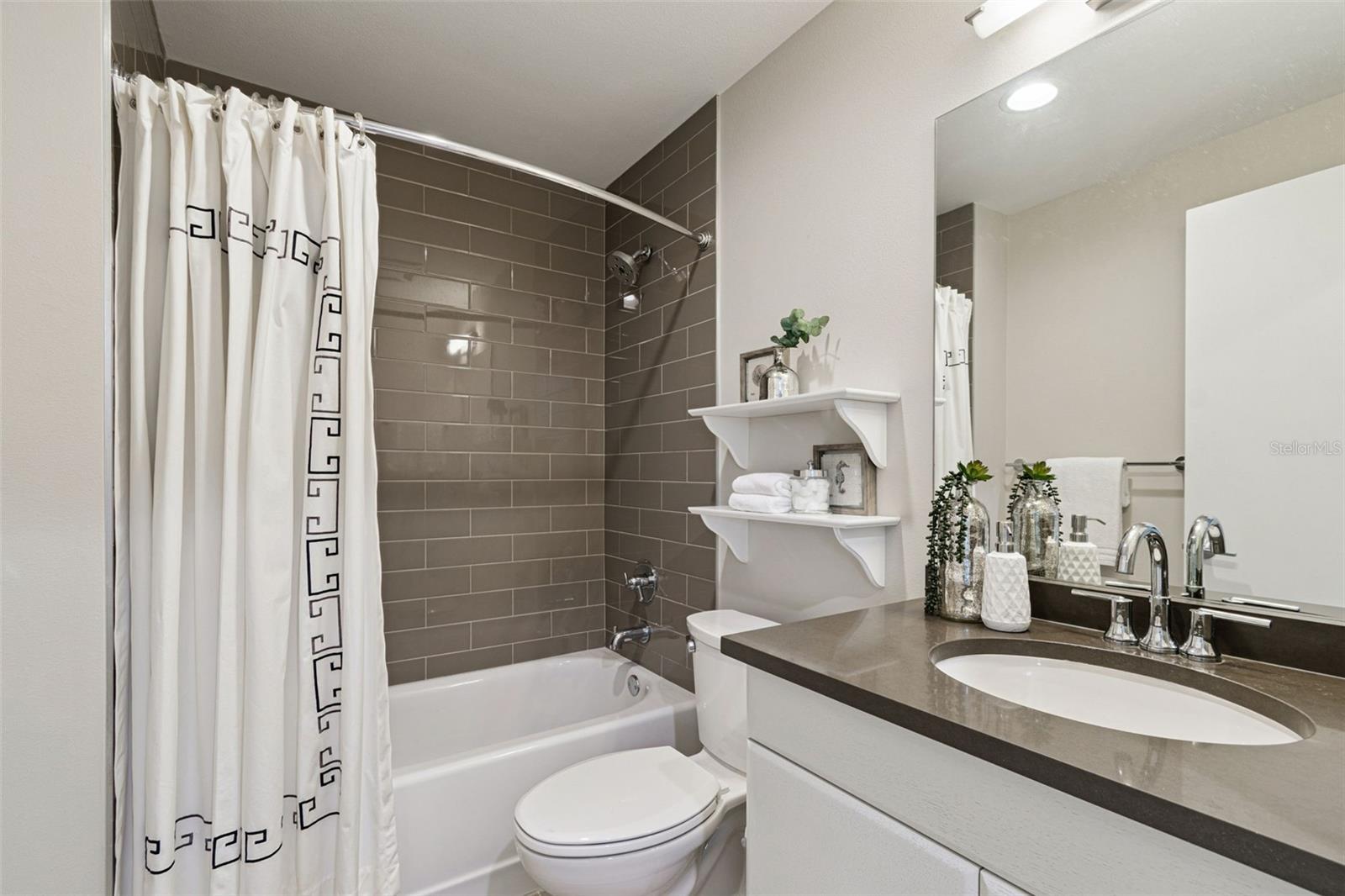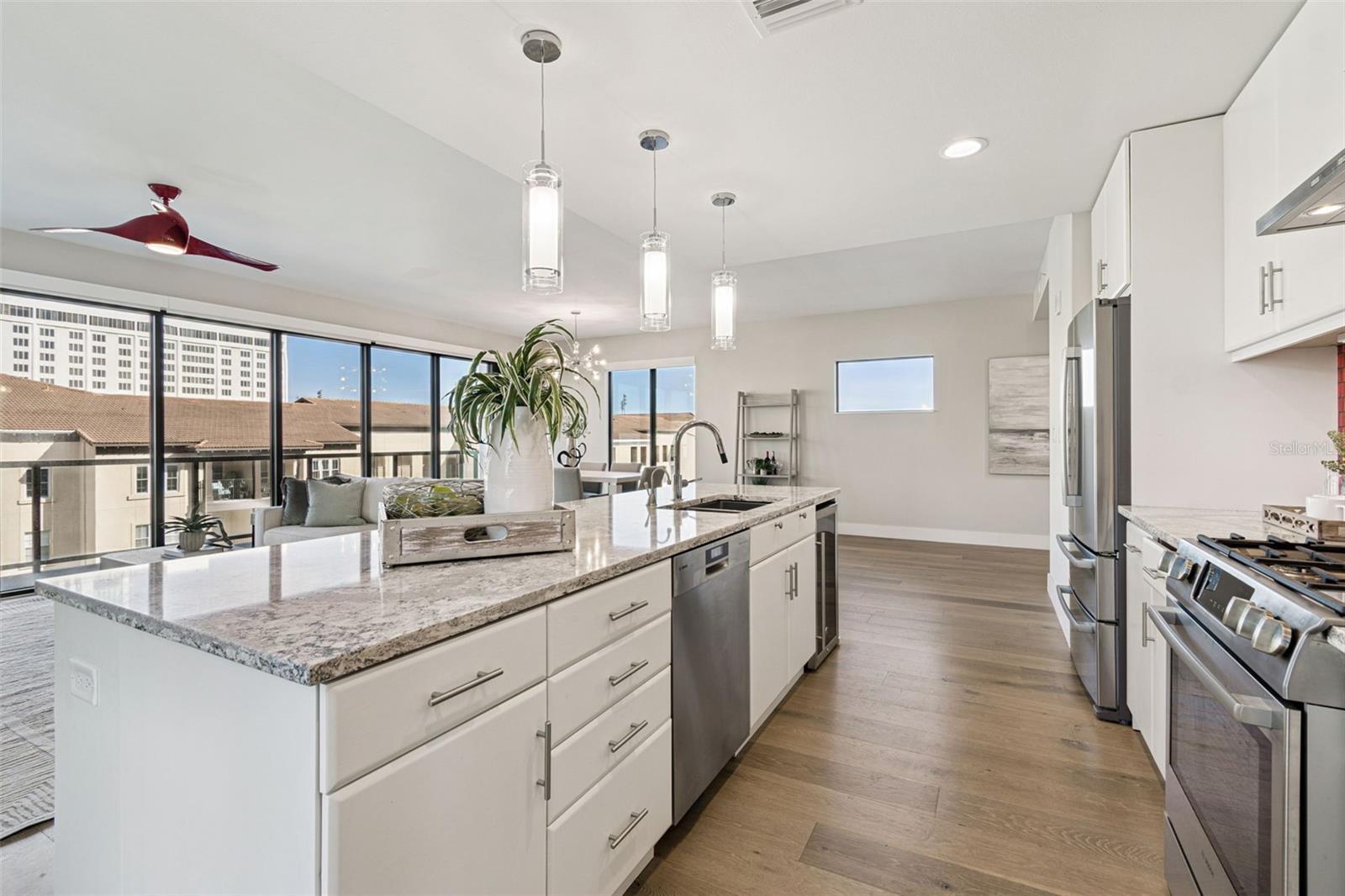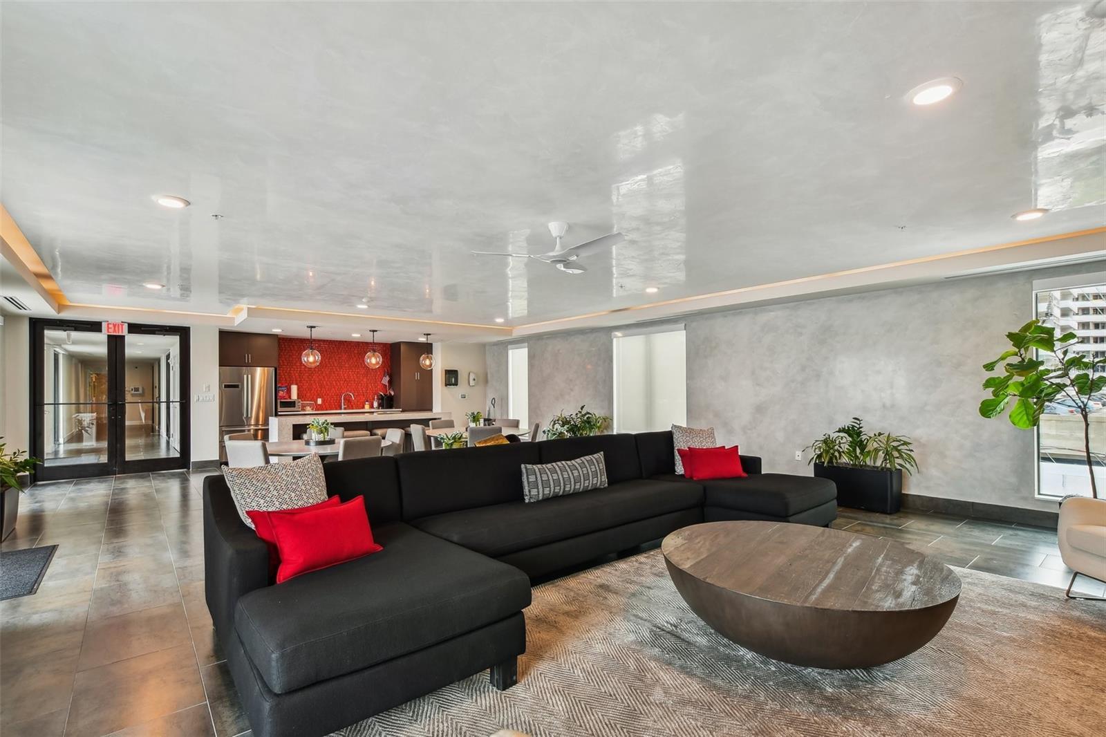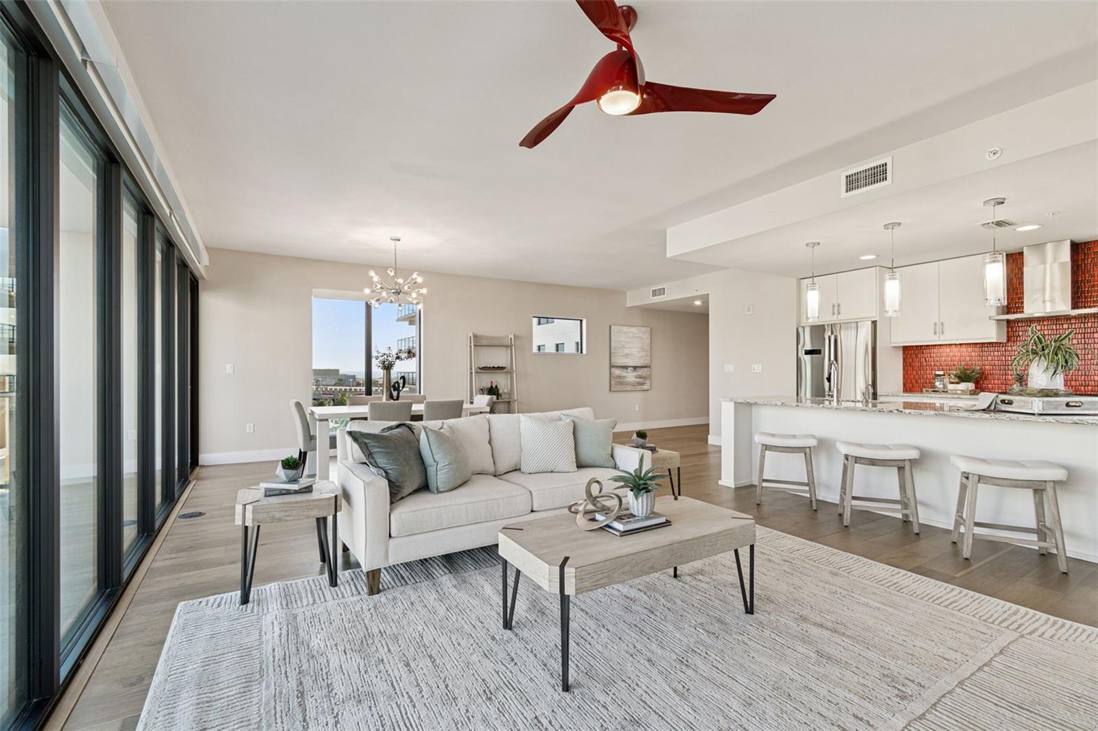 - High Ceilings, Living Room/Dining Room Combo, Open Floorplan, Stone Counters, Walk-In Closet(s), Window Treatments