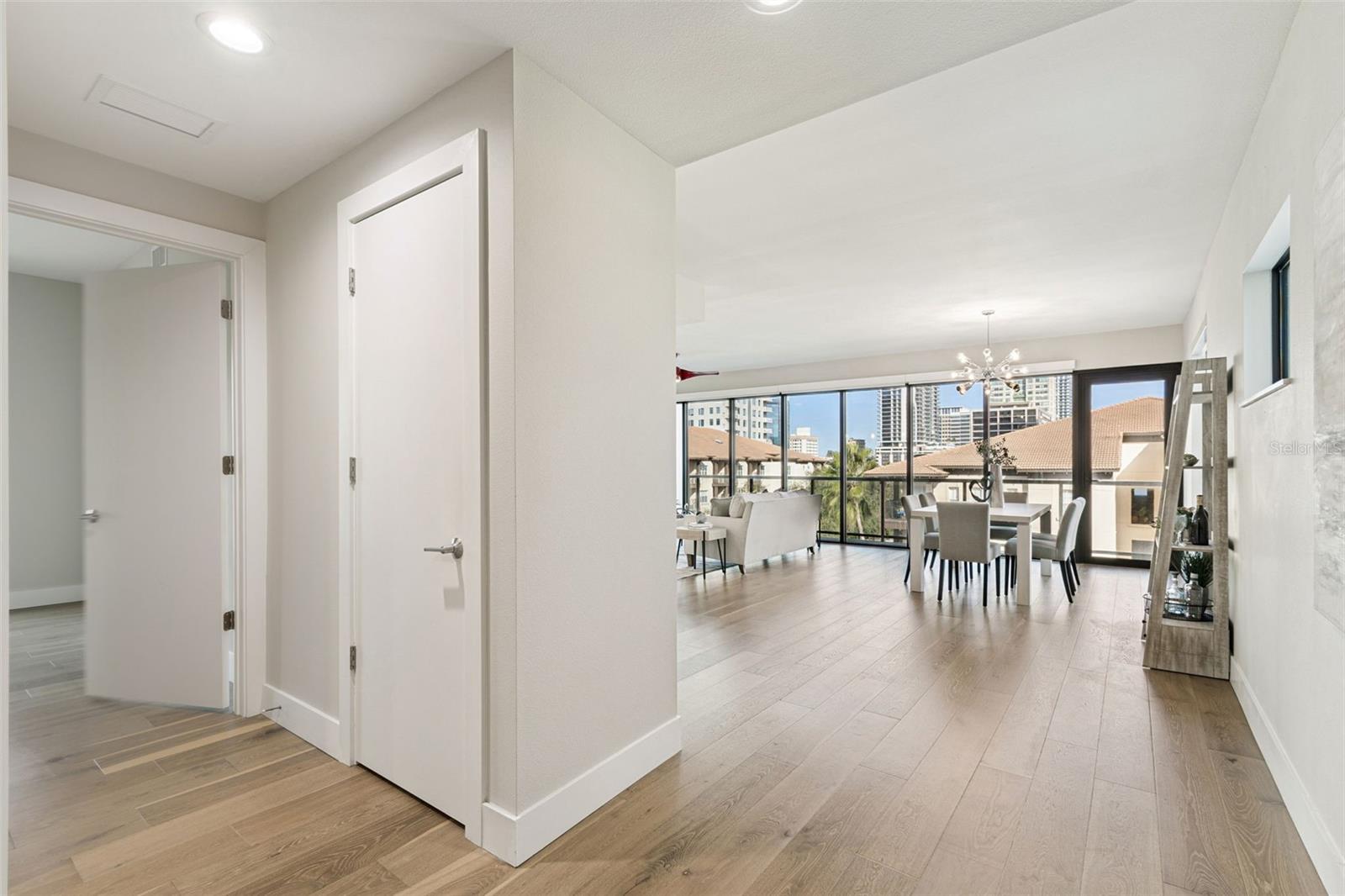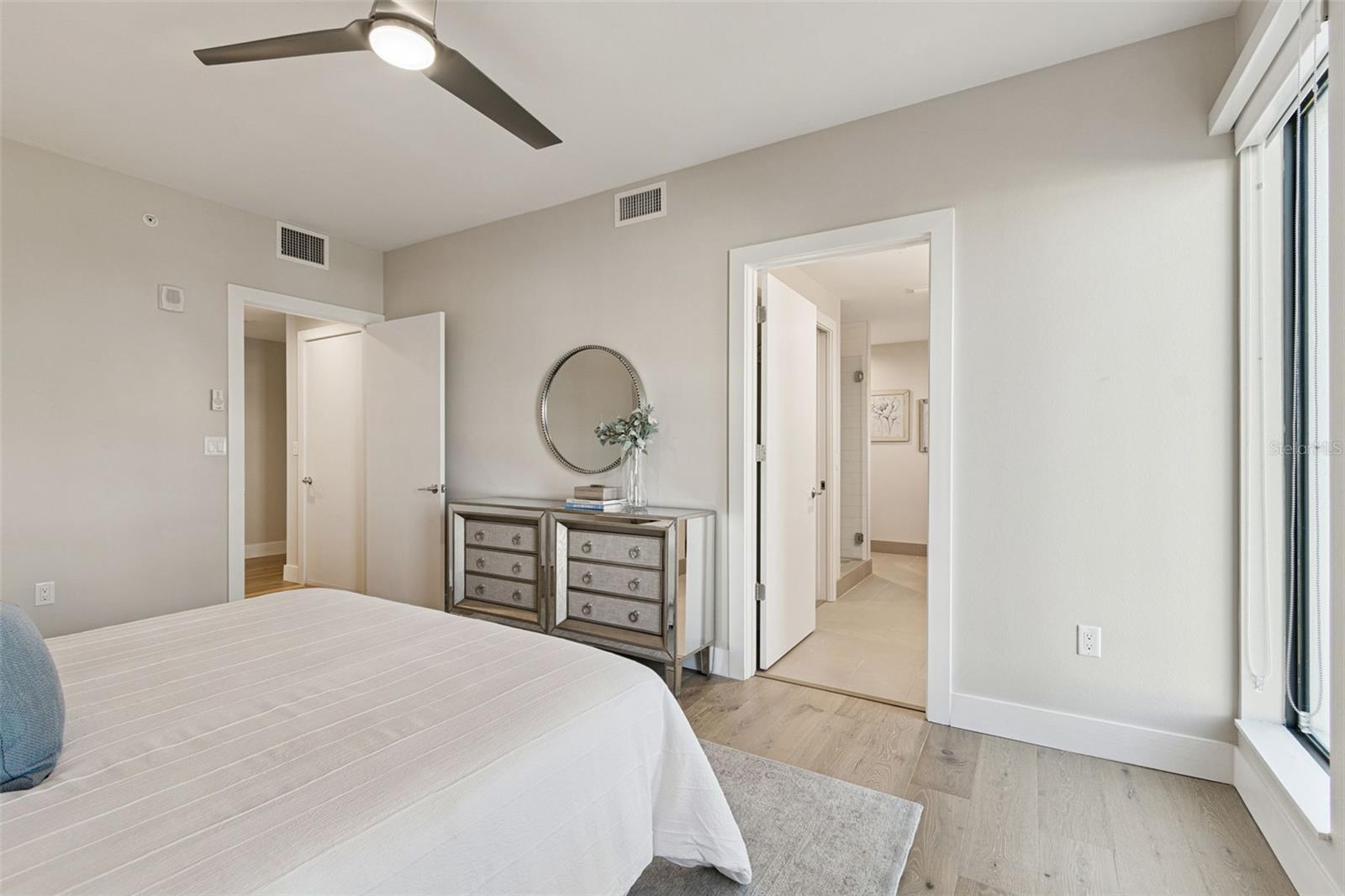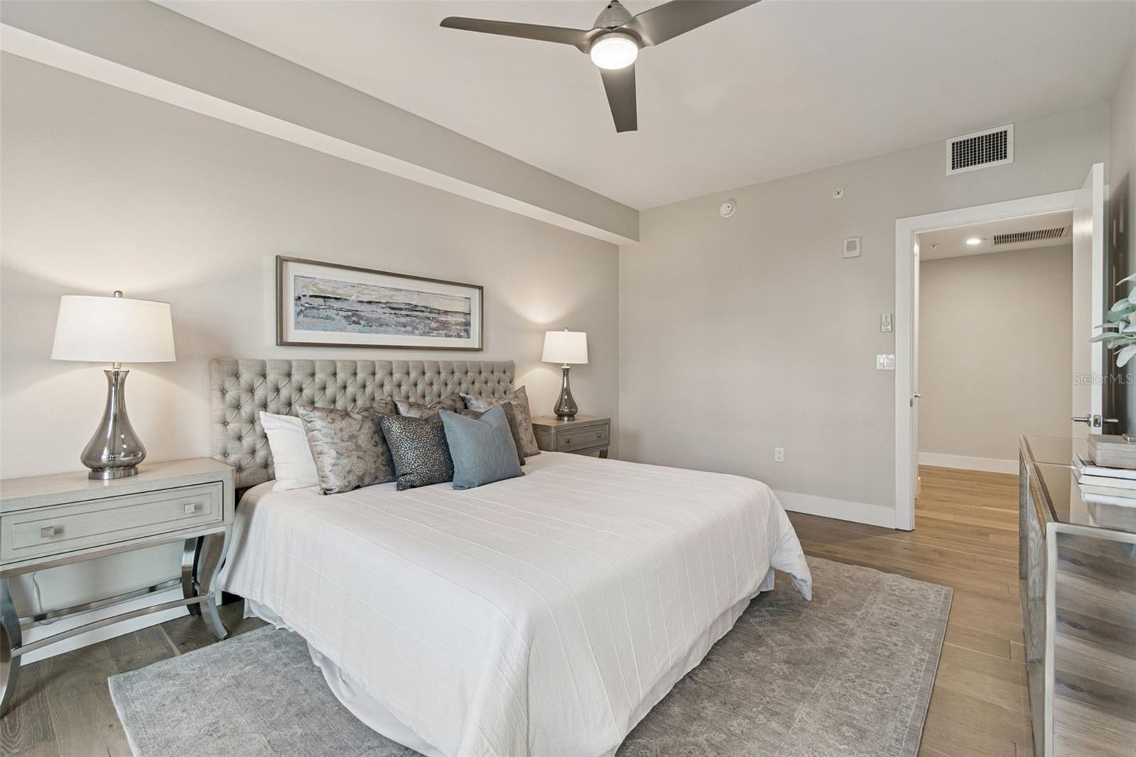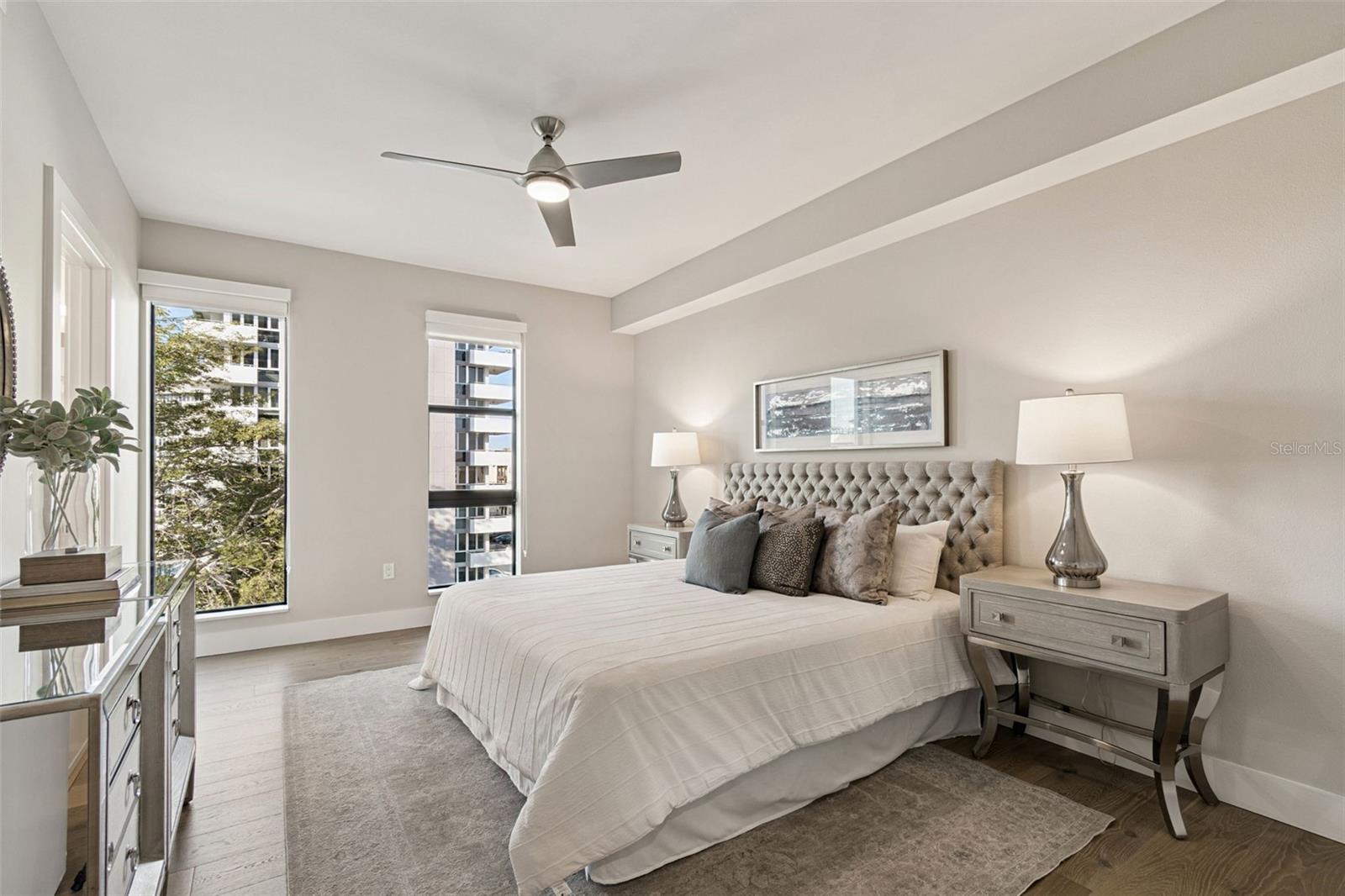 Under contract-accepting backup offers. Power-priced at $895,000 — serious value in today’s market with highly motivated sellers. You’ll enjoy panoramic vistas of the city and Tampa Bay from the spacious balcony with room for plenty of seating and no adjacent neighbors. Step inside and you're welcomed by a spacious Gallery Hall—perfect for showcasing art and setting a dramatic tone for what’s ahead. This 1,555-square-foot, 2-bedroom, 2-bath home stands apart with windows on three sides, flooding the open floor plan with natural light and ever-changing views. The living and dining areas are framed by floor-to-ceiling glass and outfitted with motorized blinds for effortless ambiance control. The sleek, contemporary kitchen features upgraded countertops and cabinetry with custom pullouts, a natural gas range, wine cooler, and smart storage throughout. Design details shine here—upgraded dimmers, modern lighting, and stylish ceiling fans add a layer of refinement. The primary suite is a serene retreat with a generous California Closets walk-in and a spa-inspired bath complete with a deep soaking tub, oversized shower, and dual-sink vanity. The second bedroom includes a custom-built queen Murphy bed with integrated desk, making it ideal as a guest room, office, or both. Blackout and shade blinds are installed in both bedrooms for maximum comfort. A dedicated laundry area with custom cabinetry adds convenience, and the included first-floor parking space is a major plus. The Salvador—an exclusive, LEED-certified building of just 74 residences—offers outstanding amenities: pool and spa, state-of-the-art fitness center, social room, grilling area, dog park with wash station, sculpture garden, and outdoor fire pit. Concierge service and on-site management elevate the lifestyle. Set in a peaceful pocket just blocks from downtown, the Dali Museum, Mahaffey Theater, Albert Whitted Airfield, and the Saturday Morning Market, this residence blends privacy, luxury, and location like few others. Schedule your private tour today.