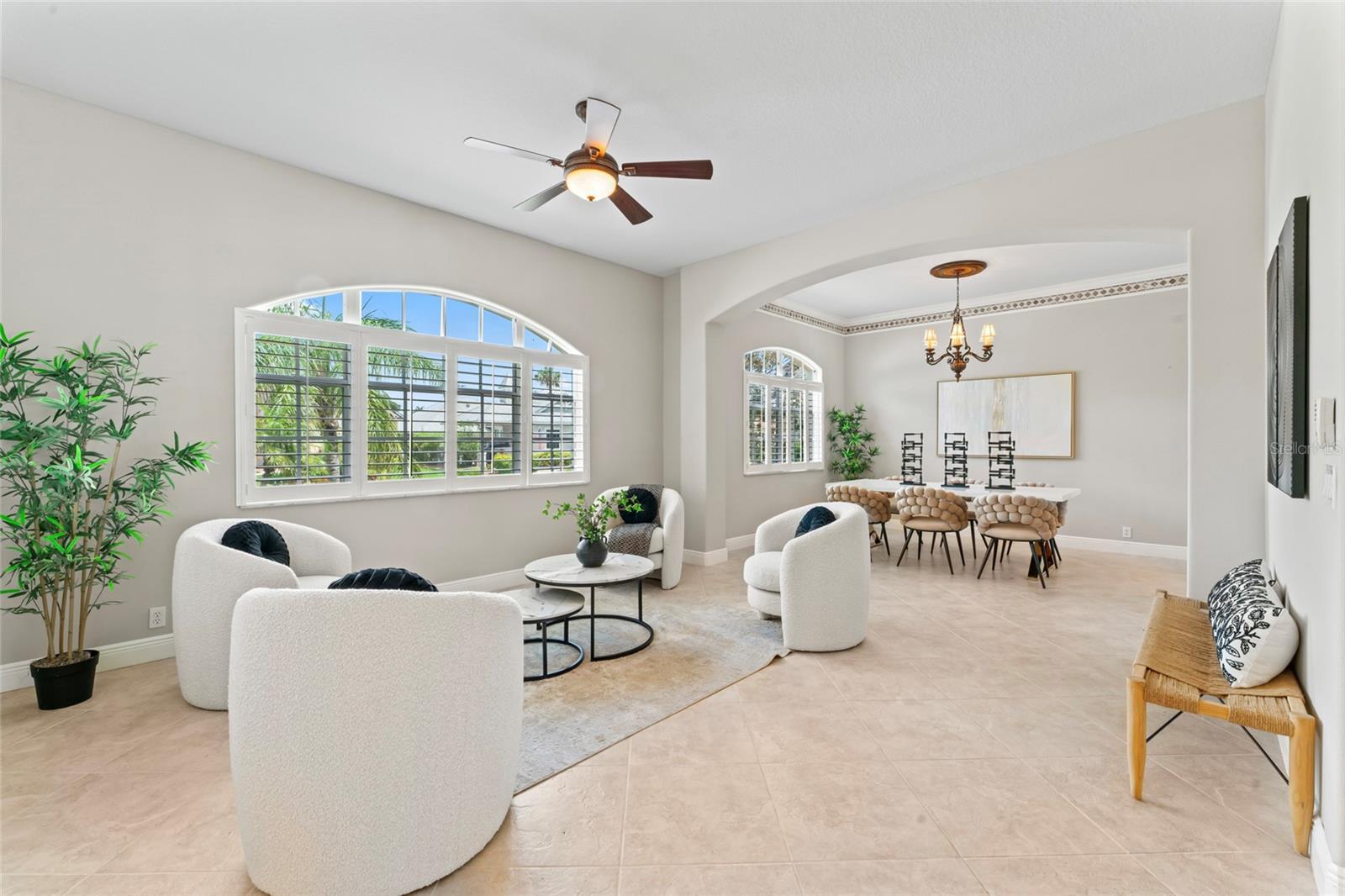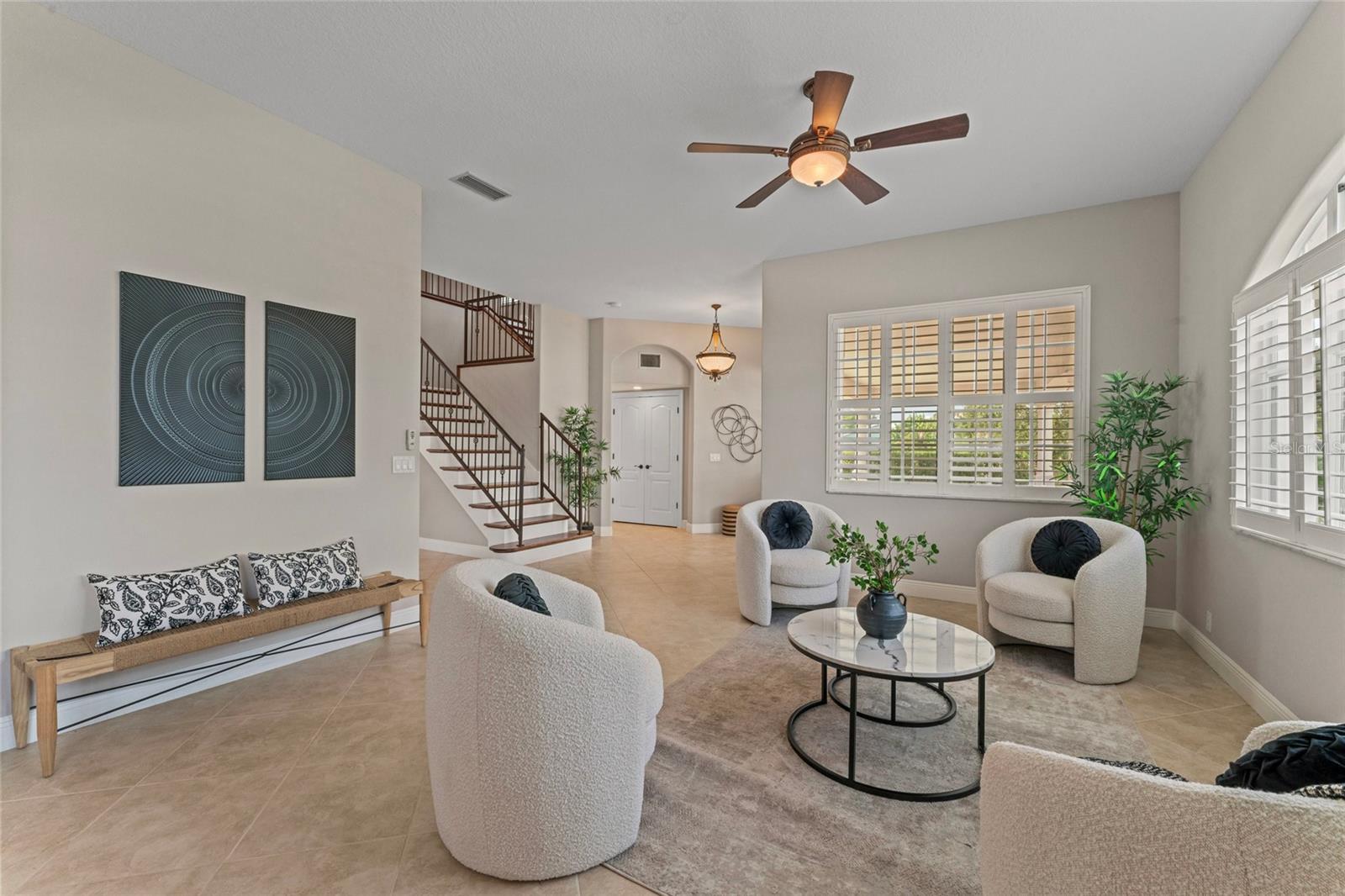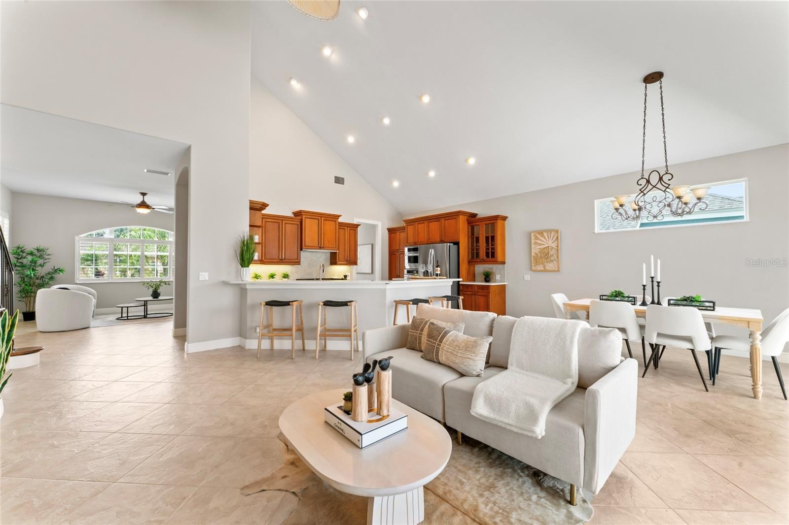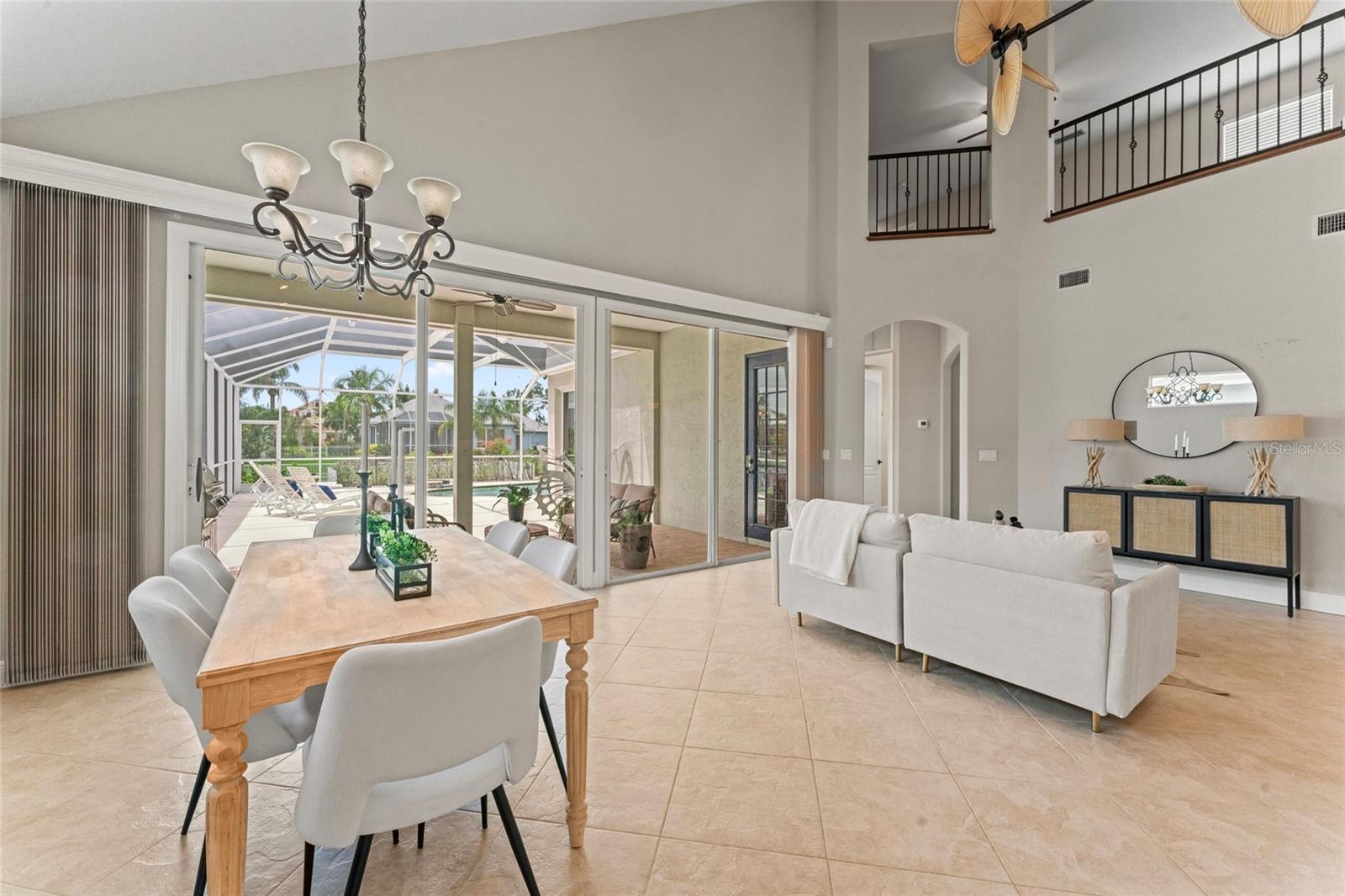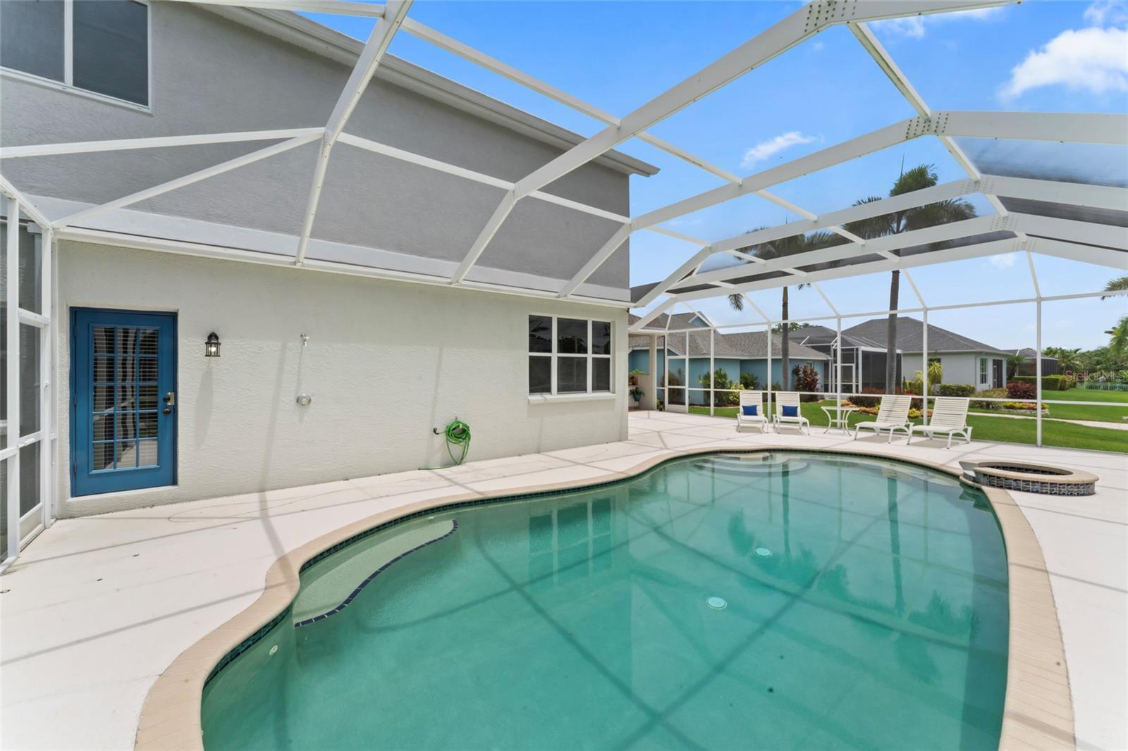 Coastal Waterfront Living in The Inlets at Riverdale! Welcome to this expansive two-story waterfront home, ideally located in the highly desirable Inlets at Riverdale—a premier boating community offering direct canal access to the Manatee River and the Gulf of Mexico. Perfectly positioned on one of the largest lots in the neighborhood, this stunning residence offers over 3,470 square feet of thoughtfully designed living space, including four bedrooms and three and a half bathrooms, with the spacious primary suite located on the main level. As you enter through grand double doors, you’re greeted by elegant tile flooring, formal living and dining rooms, and a dry bar—an inviting introduction to this elegant yet comfortable home. Soaring vaulted ceilings and a bright, open great room create a warm and welcoming atmosphere, ideal for both relaxing and entertaining. The kitchen is a chef’s dream, featuring new stainless-steel appliances, quartz countertops, and warm wood cabinetry, all seamlessly connected to the main living areas. Also on the first floor is a bright, private office space and a stylish powder room, offering both functionality and flexibility. The generously sized primary suite includes a cozy sitting area, dual walk-in closets, double vanities, and a luxurious walk-in shower. Upstairs, an open balcony overlooks the main living space and leads to a large loft—perfect for a game room, media room, or optional fifth bedroom. Three additional guest bedrooms provide ample space for family or visitors. One features its own en-suite bathroom, while the other two share a well-appointed Jack-and-Jill bathroom. The outdoor space is designed for year-round enjoyment with a heated pool, covered and screened lanai, full outdoor kitchen, and private boat slip. From here, you’ll be on the open water in minutes. Additional highlights include a newer roof (2018), new HVAC systems for both levels, a new pool pump, a newer water heater, and fresh exterior paint—all contributing to peace of mind and move-in-ready convenience. Located in a quiet, low-HOA community just minutes from I-75, shopping, dining, and Florida’s world-renowned Gulf Coast beaches, this home offers the perfect blend of luxury, comfort, and waterfront lifestyle. Bring your boat, your family, and your love for coastal living—this is the home you’ve been waiting for.