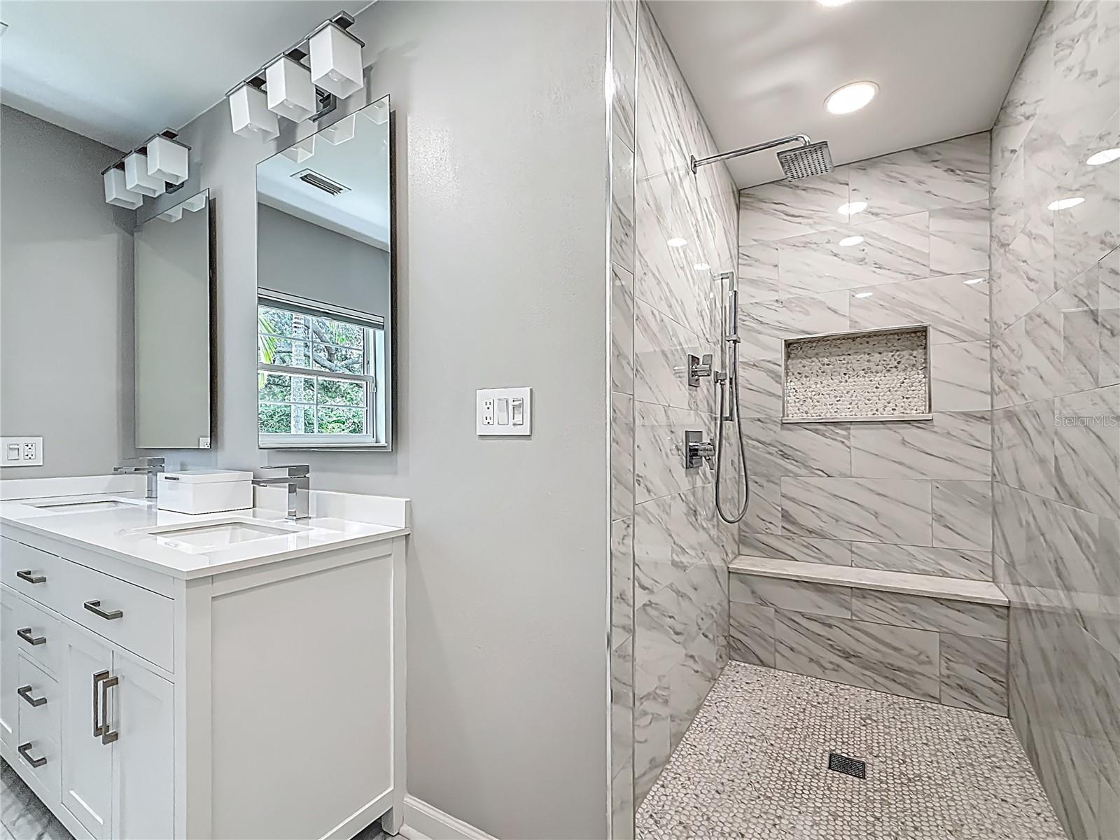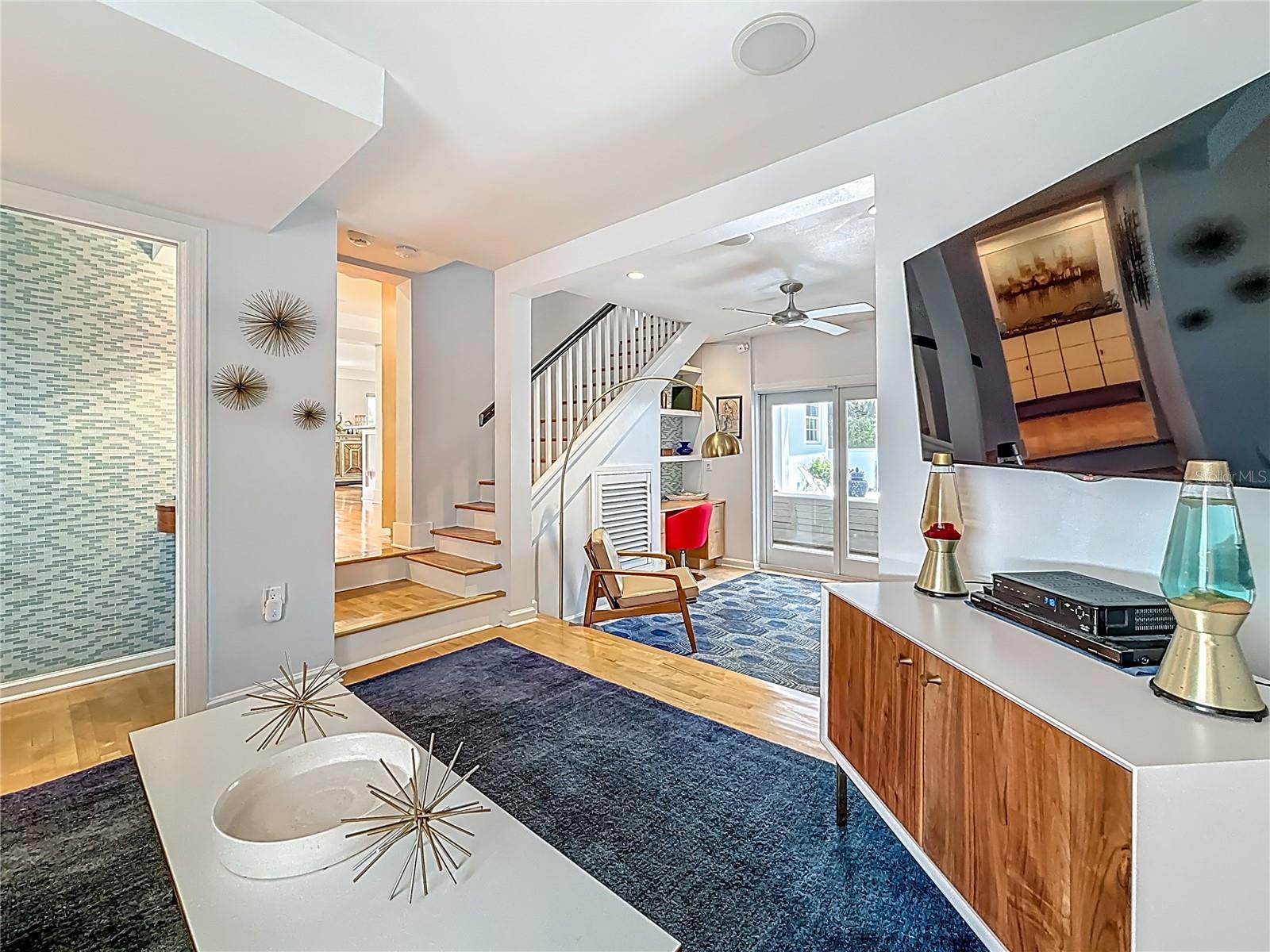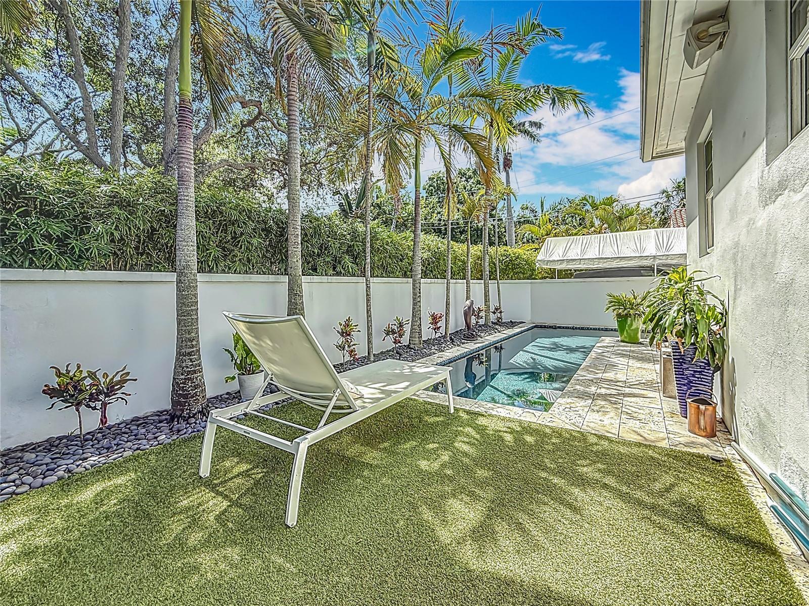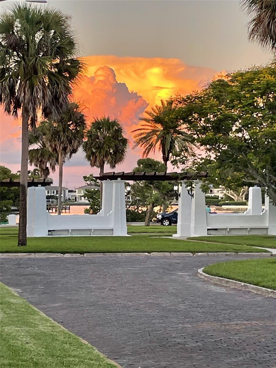 Under contract-accepting backup offers. Immaculate and stunning Mid-Century Modern home in historic Granada Terrace. Great water view and because of it's high elevation it has never been affected by past storms or hurricanes. Granada Terrace Park has sweeping water views across Coffee Pot Bayou and is the perfect location that allows you to walk out the front door and watch manatee and dolphins frolicking, drop in a kayak, take a long walk along the water to downtown, fish off the steps that Perry Snell installed for gondola tours or simply enjoy the quiet peace of the park. The serene garden entrance leads up to coral steps and a perfect porch to people watch. At the entry, you will find an open floor plan with a cozy sitting area that has breathtaking views of the water and an occasional wedding, a living room, dining room and open kitchen with an eat-in bar. The kitchen cabinets go perfectly with the original wood flooring for a retro, yet modern aesthetic. A primary suite with a graciously appointed bathroom has views of the park and doors to a small outside sitting area that lead to the turfed backyard, pool and lanai. A resplendent retreat. The second bedroom, also with ensuite bath, is located downstairs and would make a great space for a family member or guest room. Past the kitchen are stairs leading up to the private second primary or guest room with a full ensuite bath. Adjacent to the kitchen is a den that has many uses. Movie watching, cozying up to a good book, a wonderful play area for the kids or working from the built in desk. The den has doors that lead out to the lanai and pool area. A half bath located in the den provides convenient access on a pool day. The covered lanai and pool are hidden by a beautifully lush bamboo hedge and privacy wall. The pebble pool and no maintenance turf is easy on the kids and revered by dogs everywhere. There is also plenty of room to store the kayaks and paddle boards. The driveway and carport are to the side maintaining that clean front yard aesthetic. A storage area with a garage door that could house your scooters or a motorcycle for the inevitable downtown adventures is a handy space with access to the laundry room. Lutron lighting for complete control and customization of whole house illumination. Hunter Douglas custom blinds that open up and down. Landscaping lighting. Surround sound. The brick lined streets, immediate access to the third largest urban waterfront park system in North America, walking distance to vibrant downtown St. Pete and a small boat launch at Crisp Park make this undeniably the spot to enjoy all that the historic Old NE area has to offer.