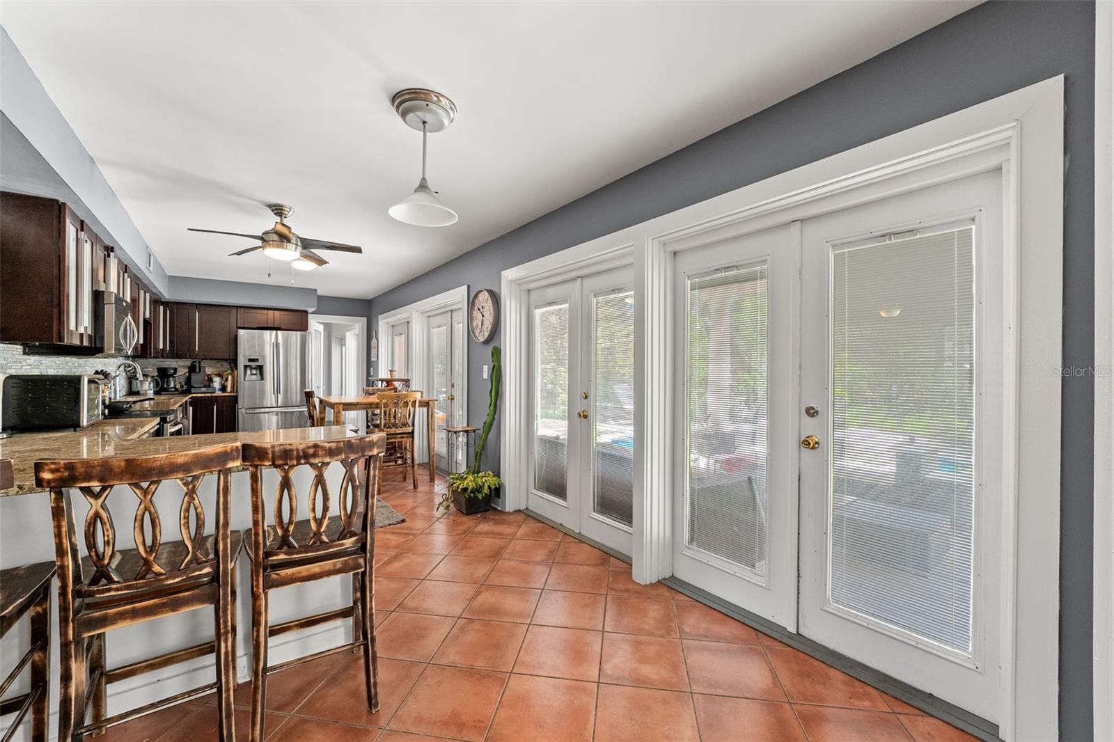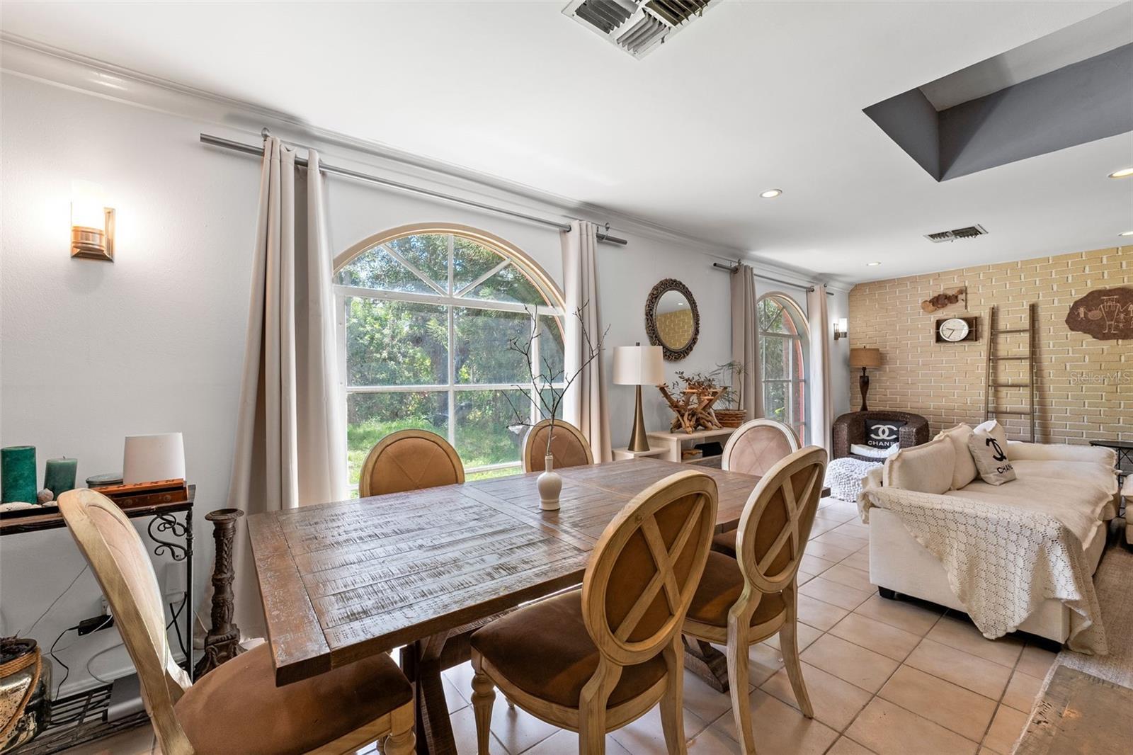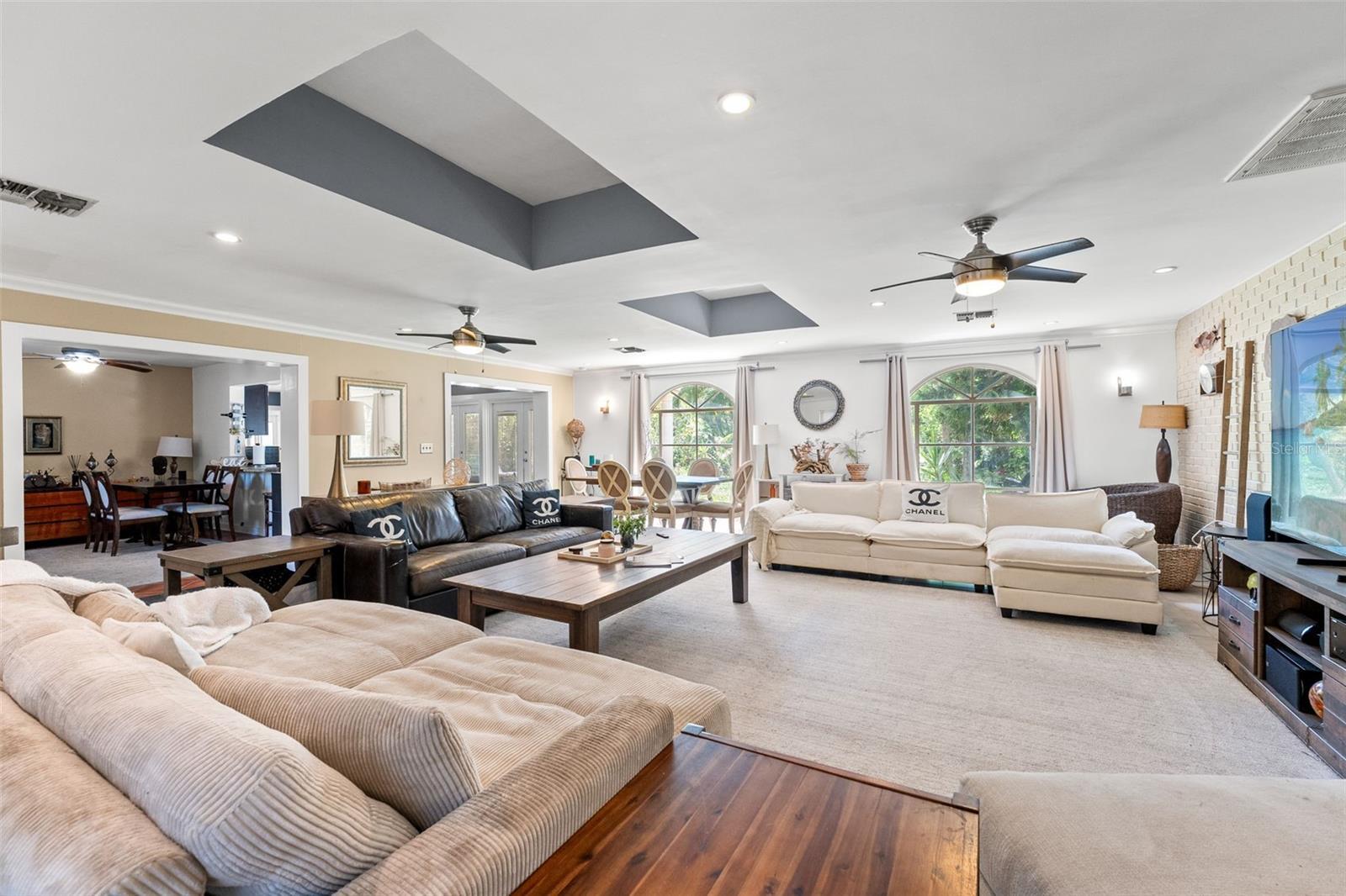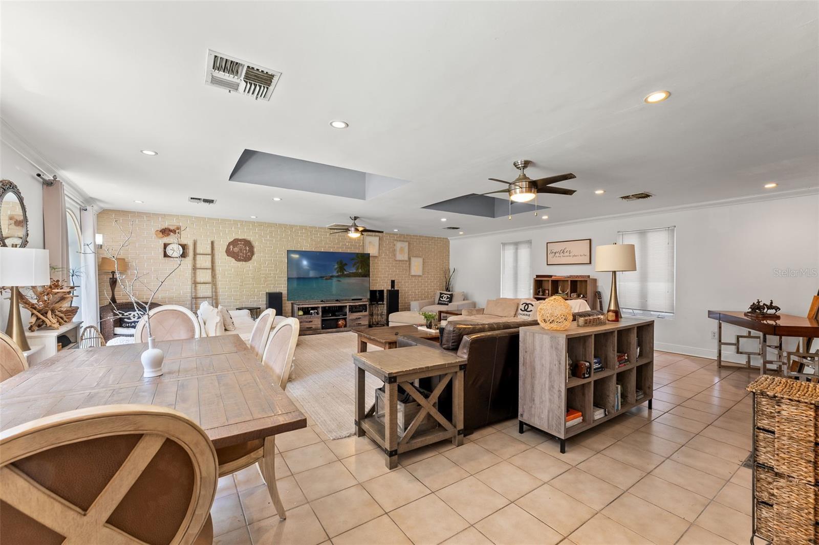 - Built-in Features, Ceiling Fans(s), Eat-in Kitchen, High Ceilings, Kitchen/Family Room Combo, L Dining, Open Floorplan