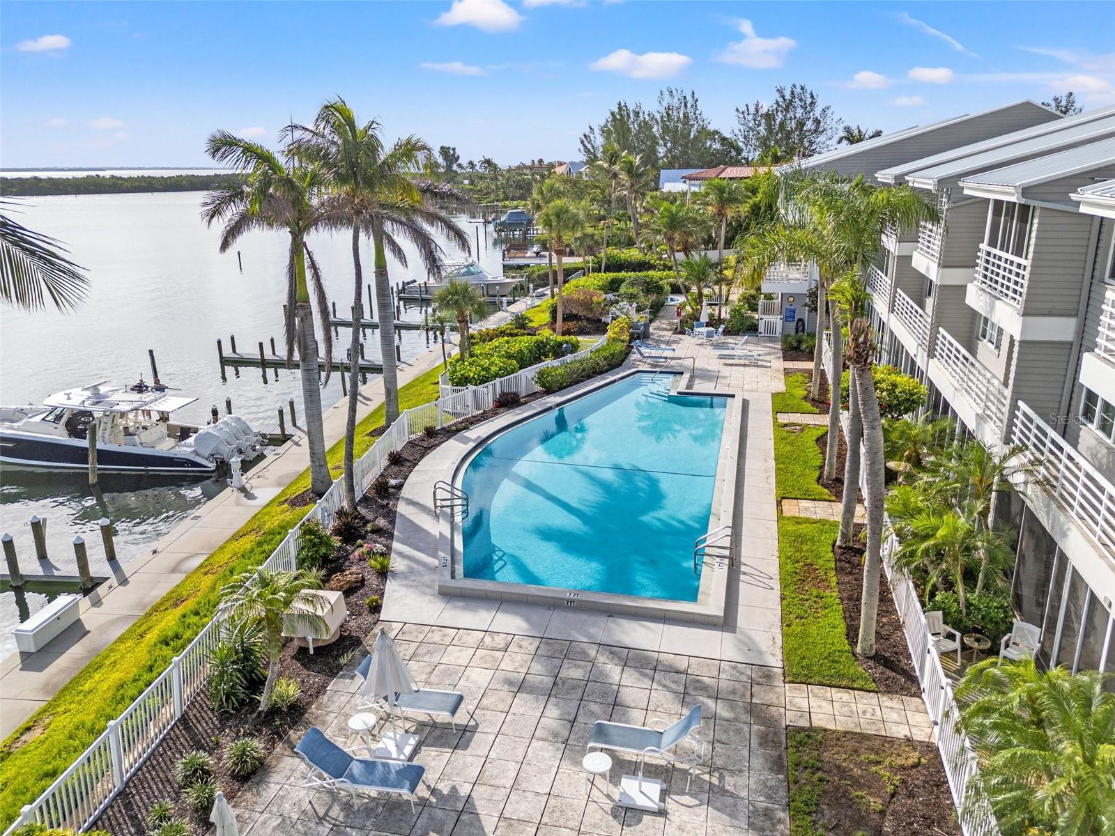 Paradise at Harbour Villa Club – Waterfront Luxury with a boat slip on Longboat Key! Enjoy this condo year-round or rent it weekly when you cannot be there- you choose! Discover this fully renovated 2BR/2BA condo with panoramic views of the gorgeous Sarasota Bay. Bright and spacious, the open floor plan features soaring 9 ft ceilings, custom finishes, a gourmet kitchen with top-of-the-line appliances and a sleek wet bar. The primary suite offers stunning water views, dual closets, and a spa-inspired bath. The second bedroom is spacious and set apart from the primary. Step into the enclosed lanai for breathtaking 180° water views and added living space— perfect for relaxing or entertaining. This unit comes with a deeded 40' boat slip #3 which features upgraded power and plumbing, new wraps, caps, marine grade bumpers and a deck box- a rare bonus that can accommodate a 55' vessel! Harbour Villa Club is nestled in a quiet corner, and you can walk or bike to the beach, area restaurants, and beloved Harry's Corner Store. This is a pet friendly community with covered parking, storage, elevators, kayak and bike storage, private dock, heated pool, tennis/pickleball courts, grills and beautiful landscaping. Weekly rentals allowed. Call today!