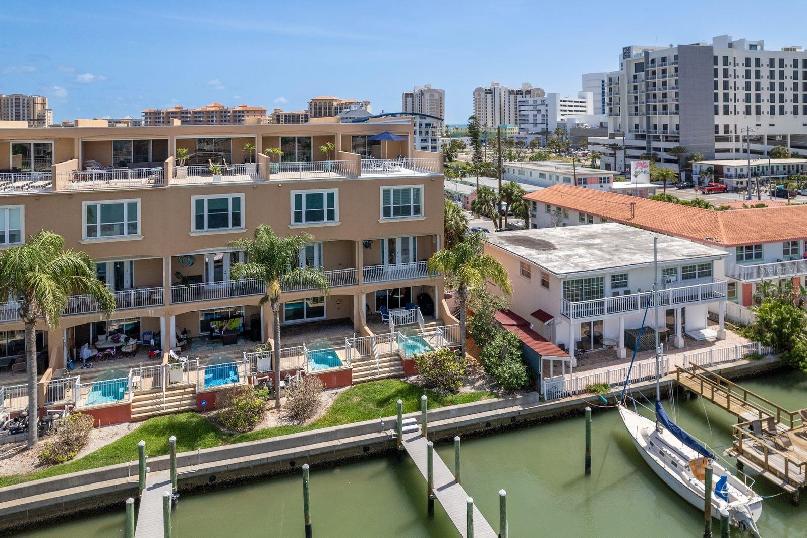 FANTASTIC OPPORTUNITY! WAY Under Appraised Value! Experience the pinnacle of luxury coastal living in this furnished 3-bedroom, 2.5-bath waterfront townhome, ideally located in the heart of world-renowned Clearwater Beach. Blending sophistication with everyday comfort, this exceptional residence features a private boat slip, rooftop terrace, private dipping POOL. ELEVATOR and a rare oversized 2-car GARAGE with metallic epoxy floors, built-in storage, and additional washer/dryer hookups—a coveted combination in this highly desirable location. Step inside to discover bright, open living spaces adorned with stunning decor throughout and filled with natural light and plantation shutters. The kitchen features Stunning stainless steel appliances, boasting a GAS stove, an illuminating glass breakfast bar with a dining area. Enjoy breathtaking views of the Intracoastal Waterway from three private BALCONIES and your expansive rooftop retreat, perfect for entertaining or relaxing in style. Tired of the sunshine, step back inside and enjoy the game or a movie in the dedicated media room. The owners suite is well sized with a spectacular ensuite bathroom. Bedroom two features a personal balcony and bedroom three has ample room with lots natural light. Boating enthusiasts will love the private BOAT SLIP, while beach lovers can enjoy a short stroll to the sugar-white sands of Clearwater Beach, consistently ranked the #1 BEACH in the U.S. Indulge in the ultimate Florida lifestyle with top-rated restaurants, boutique shopping, watersports, the Clearwater Marine Aquarium, and the brand-new Sound Amphitheater all nearby. Whether you're searching for a full-time residence, vacation retreat, or investment opportunity, this remarkable townhome offers luxury, location, and lifestyle all in one. Schedule your private tour today—paradise awaits! Additional highlights include: LOW HOA, Laundry hookup in garage and upstairs. Per permits: ROOF 2023, GENERATOR 2022, WINDOWS/DOORS 2020, HVAC 2020,WATER HEATER 2024