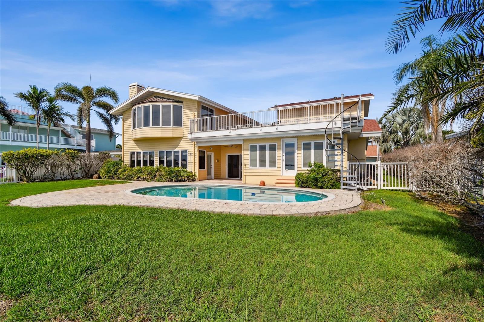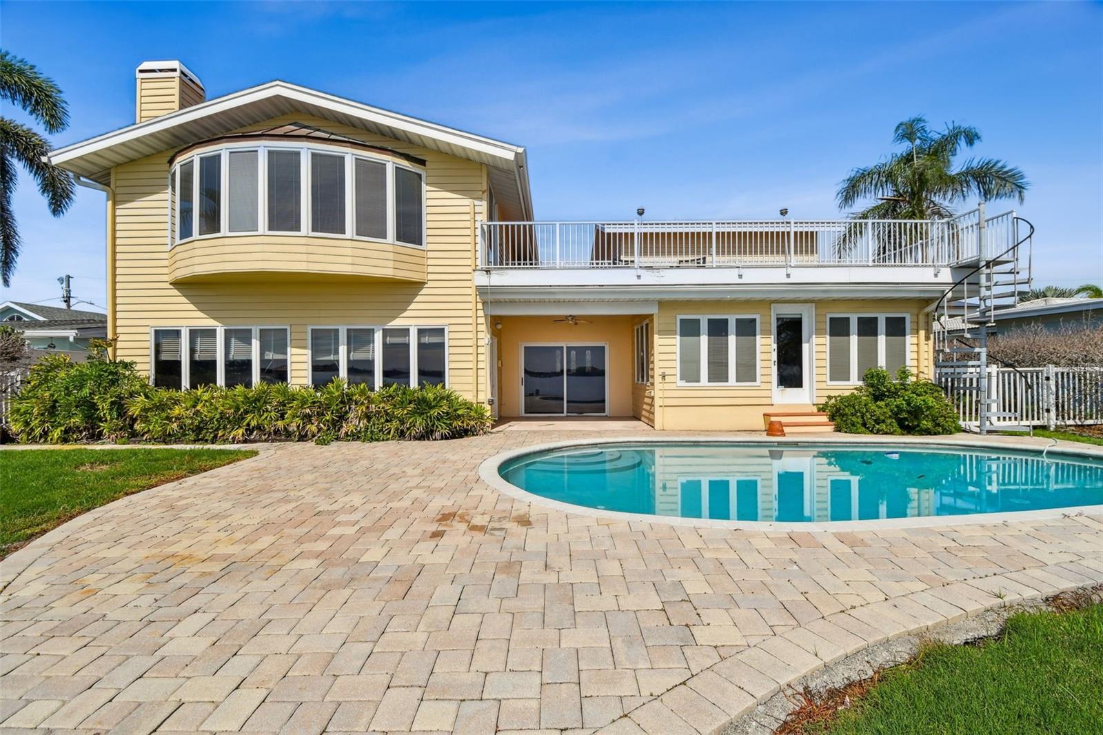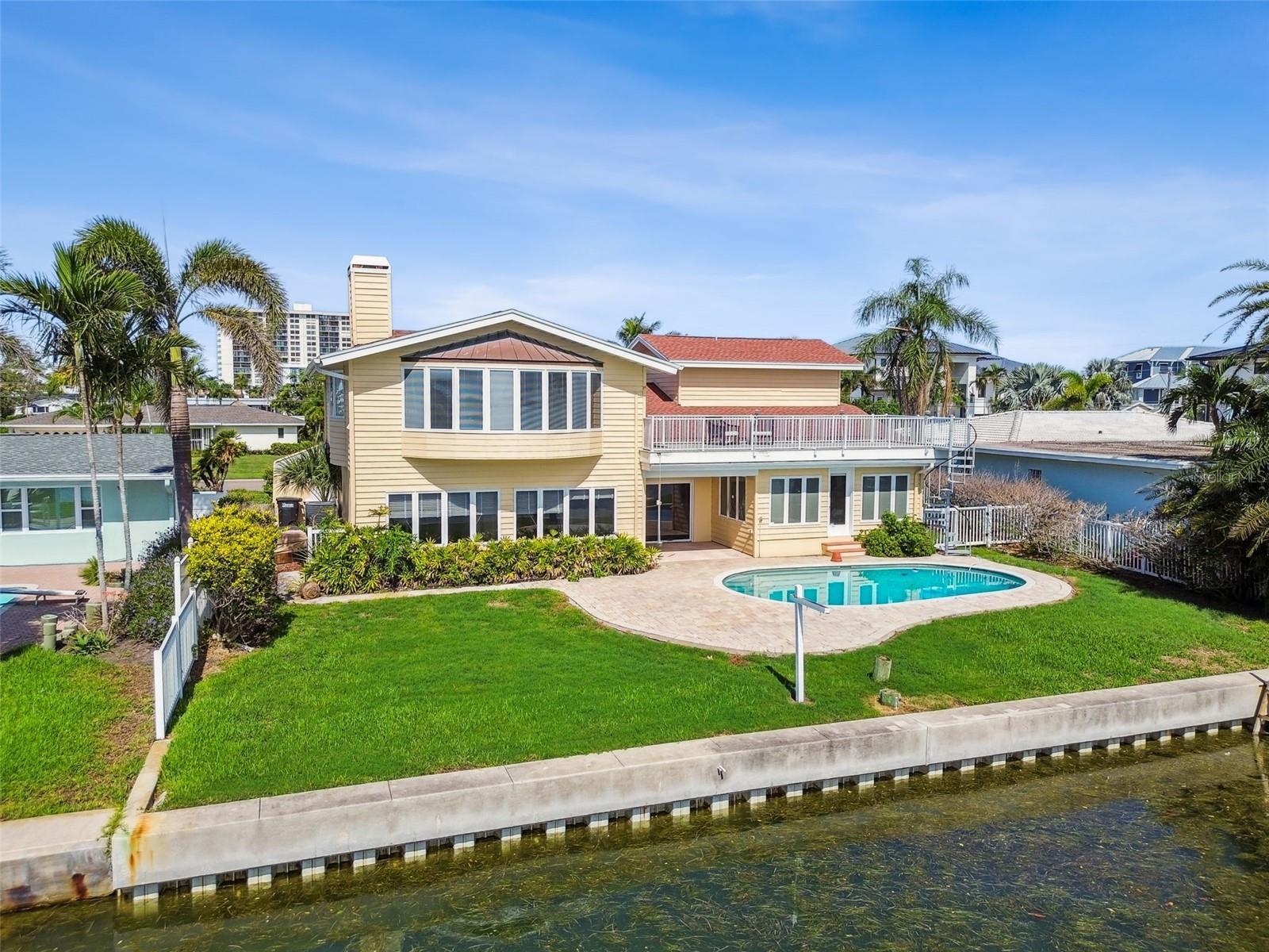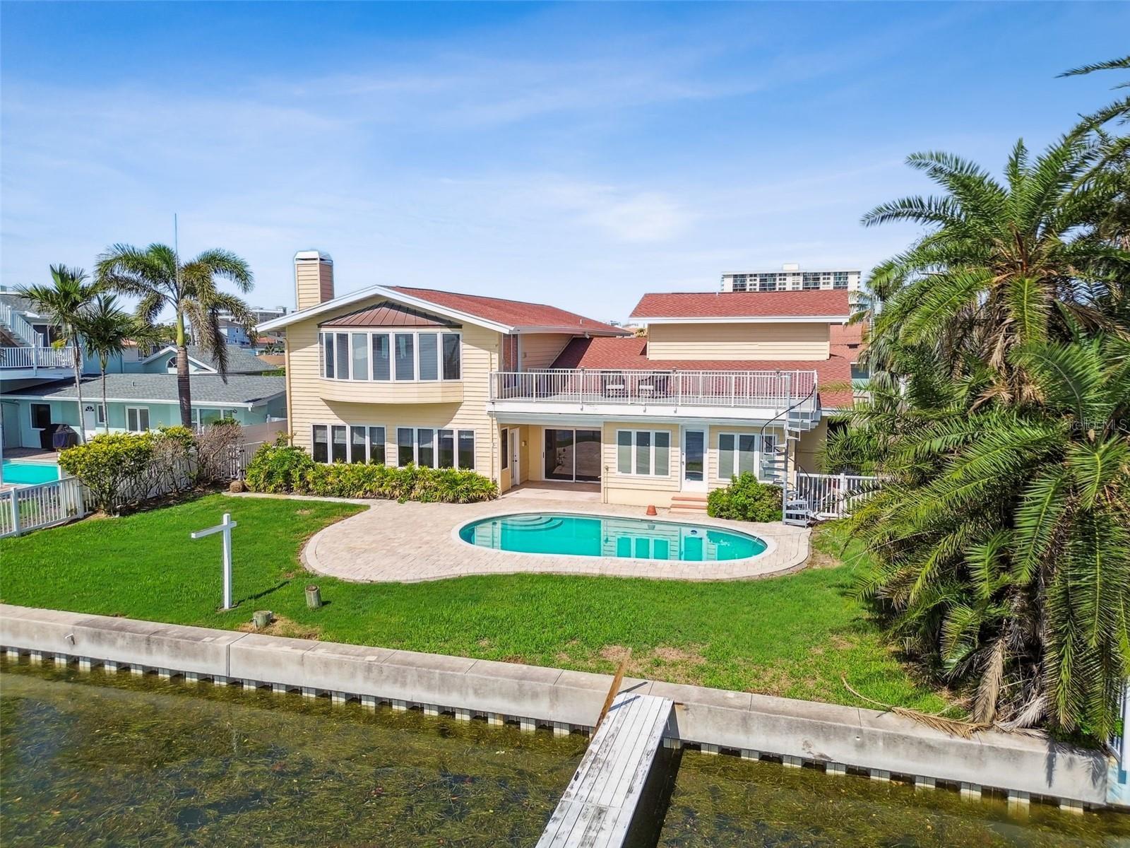 Exceptional Waterfront Opportunity on Island Estates – Renovate or Rebuild with Stunning & Rare Open Water Views! Welcome to one of the most desirable waterfront locations in Clearwater Beach – Island Estates. This 5-bedroom, 4-bathroom home offers over 4,100 square feet of living space and sits on an expansive open-water lot just steps from the cul-de-sac, offering both breathtaking views and enhanced privacy. This is a rare chance to either renovate a custom-built Mediterranean-style residence or build your dream home from the ground up on this prime piece of waterfront real estate. The property did experience flooding during the last major storm and is being sold as an opportunity for a full renovation or new construction. Inside, enjoy water views from nearly every major room, including the spacious second-floor primary suite featuring a wood-burning fireplace and private balcony. The home’s layout includes a grand great room, and an open-concept family room that create a warm and inviting living space ideal for entertaining or everyday life. Step outside to a large, tropical pool area and a lanai perfect for relaxing or hosting guests while taking in the sweeping views of the open Intracoastal waters. Boaters will appreciate the easy access to the Gulf of Mexico, just around the corner from your backyard. Island Estates is a golf cart-friendly community and just minutes from Clearwater Beach, shops, restaurants, and the marina. Located approximately 15 miles from both Clearwater/St. Petersburg and Tampa International Airports, this property offers the best of waterfront living in a vibrant coastal setting. Whether you’re dreaming of a luxury renovation or designing a brand-new waterfront estate, this Island Estates property presents a rare and exciting opportunity.