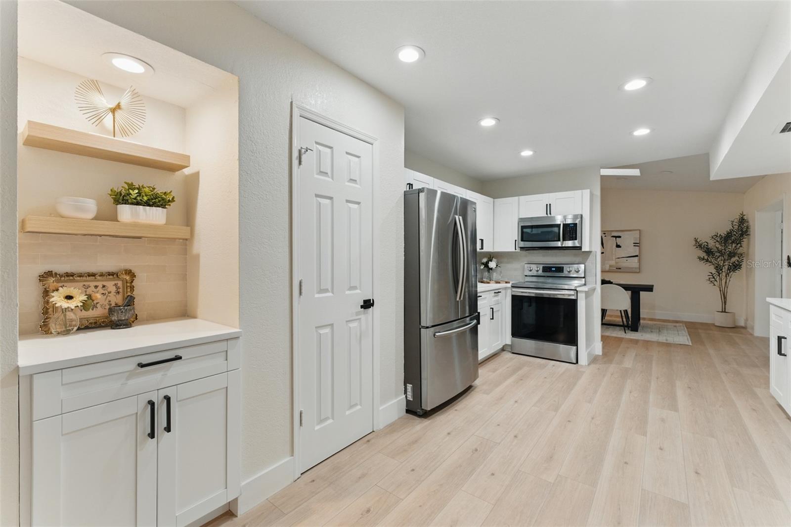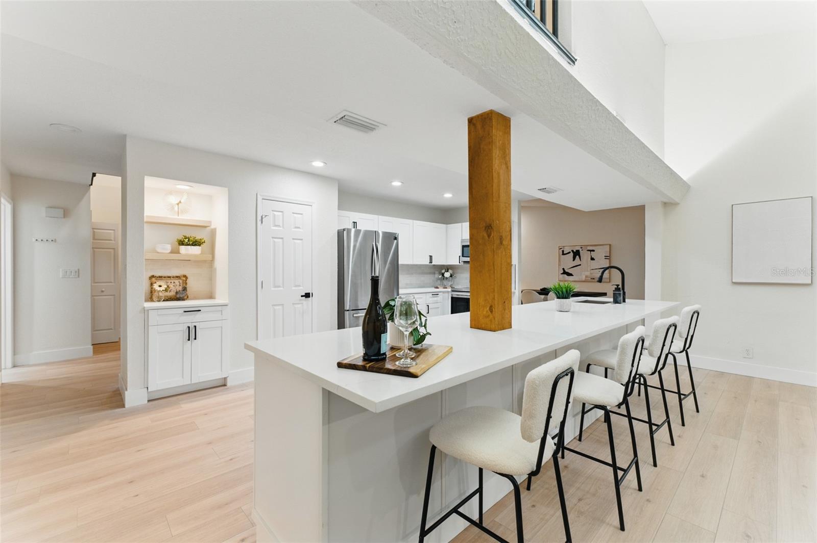 - Built-in Features, Cathedral Ceiling(s), Ceiling Fans(s), Eat-in Kitchen, High Ceilings, Kitchen/Family Room Combo, Living Room/Dining Room Combo, Open Floorplan, PrimaryBedroom Upstairs, Smart Home, Solid Surface Counters, Solid Wood Cabinets, Thermostat, Vaulted Ceiling(s), Walk-In Closet(s)