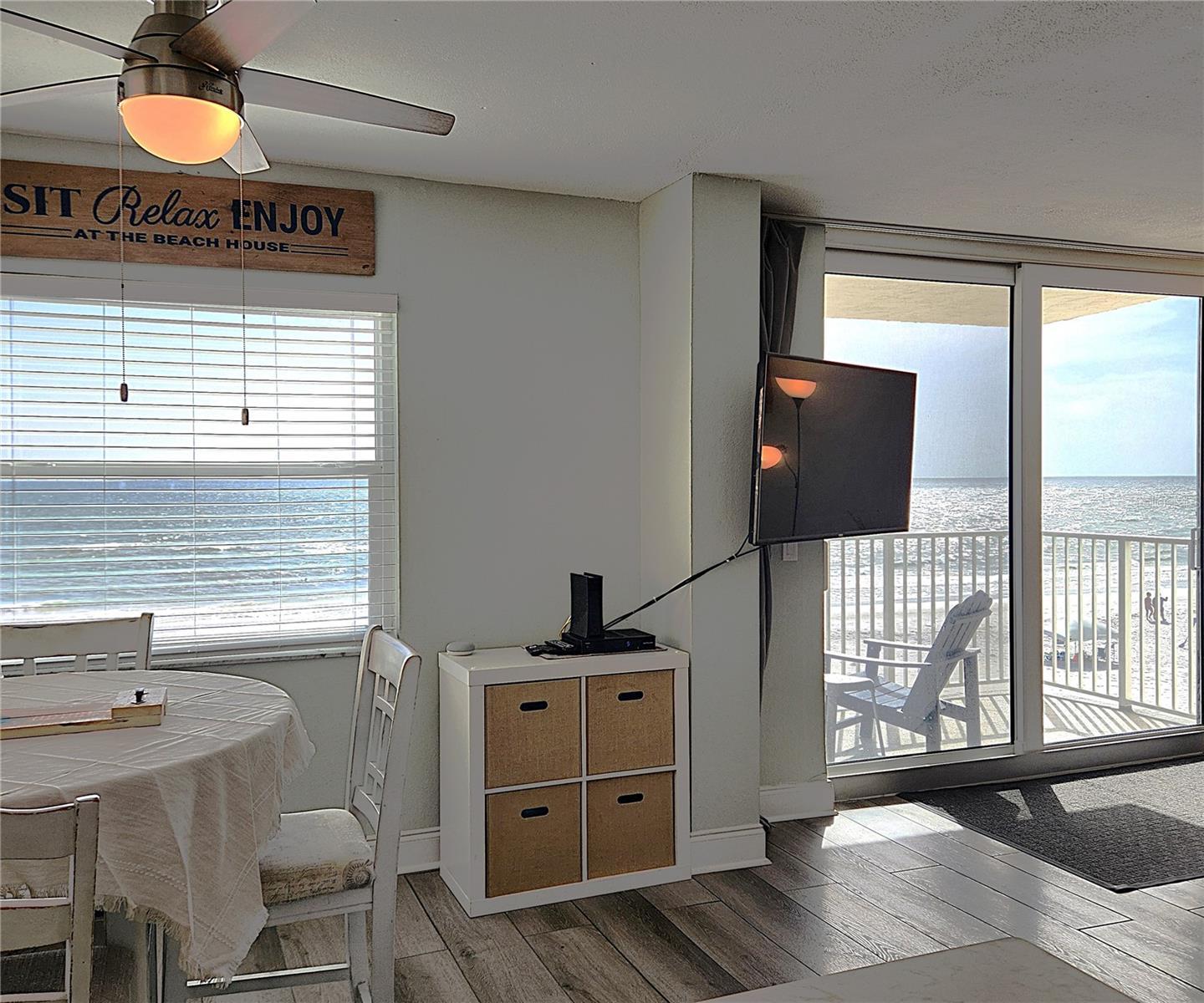 - Ceiling Fans(s), Living Room/Dining Room Combo, Thermostat, Window Treatments