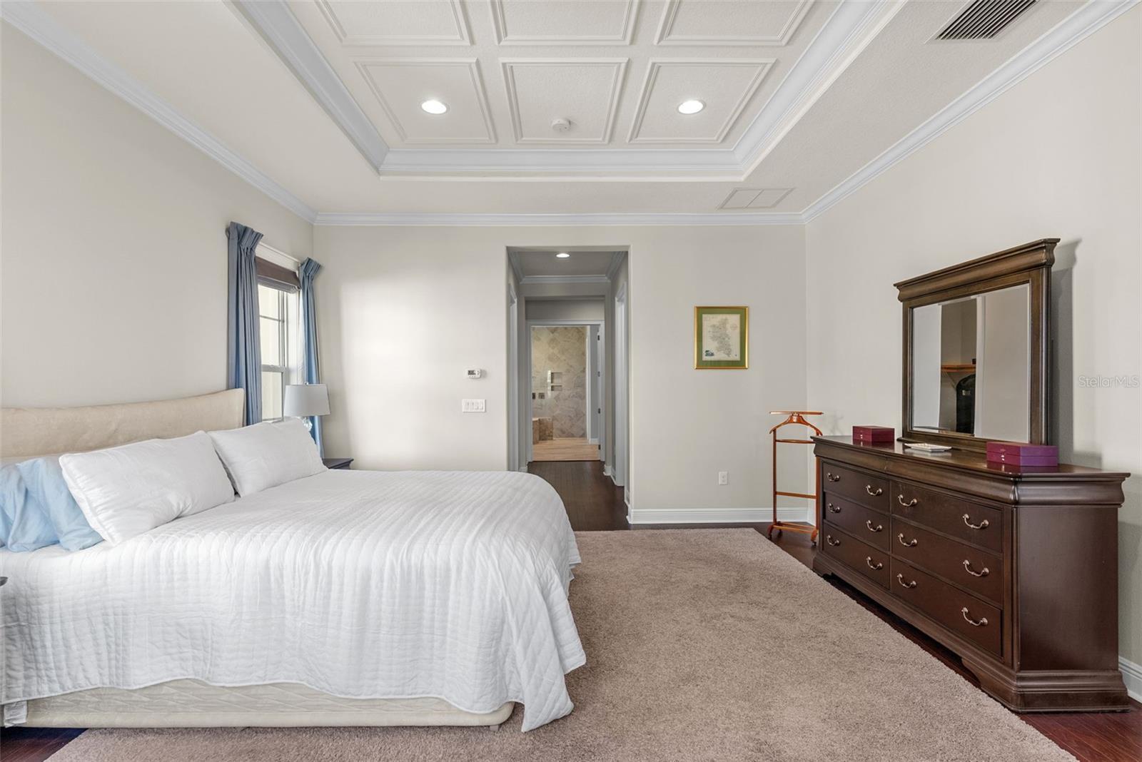 - Built-in Features, Coffered Ceiling(s), Crown Molding, Dry Bar, High Ceilings, In Wall Pest System, Open Floorplan, Solid Surface Counters, Solid Wood Cabinets, Split Bedroom, Stone Counters, Thermostat, Tray Ceiling(s), Walk-In Closet(s), Window Treatments