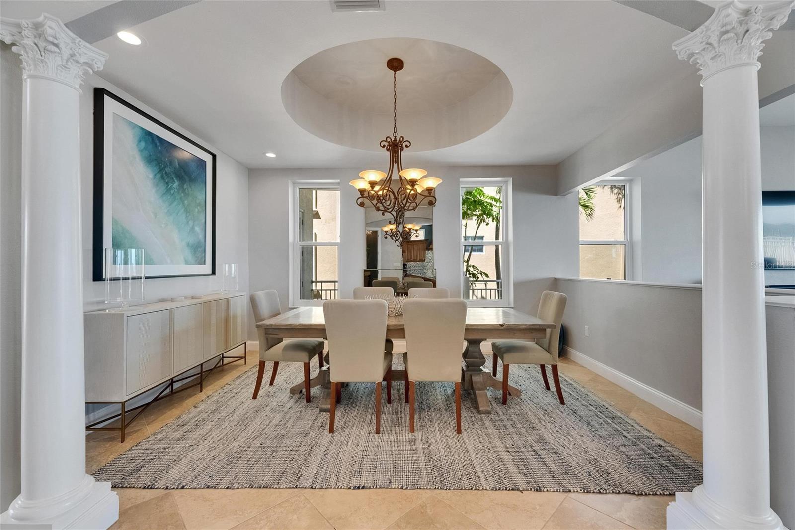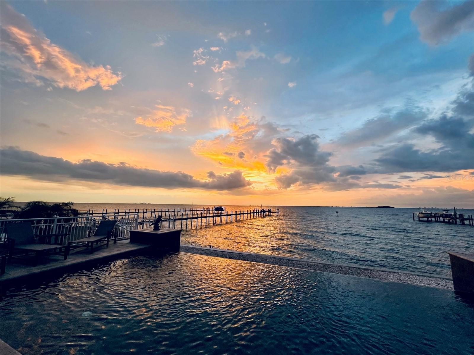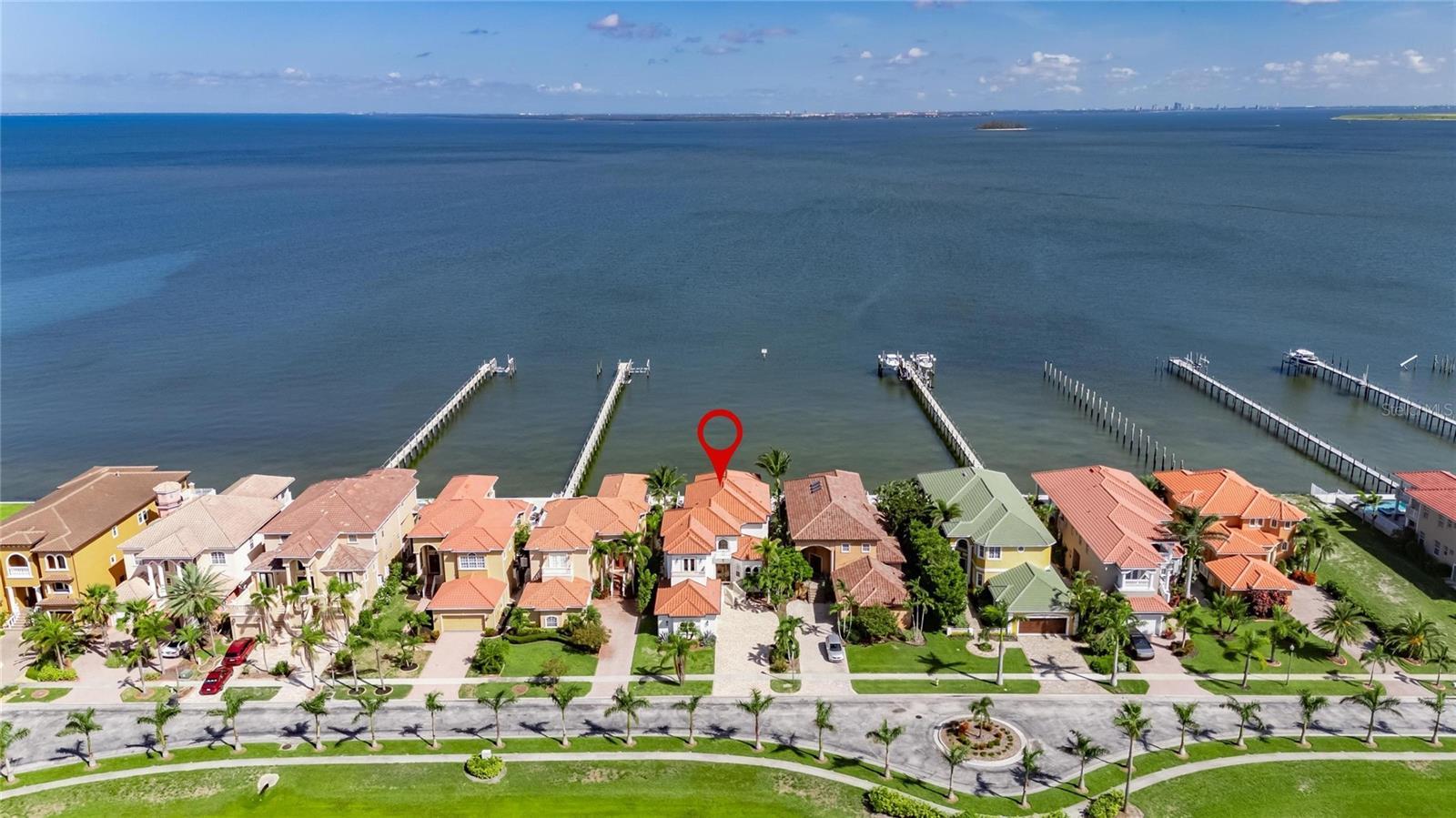 Experience luxury coastal living in this breathtaking Spanish Mediterranean home, perfectly positioned in an exclusive gated community to capture UNOBSTRUCTED PANORAMIC VIEWS of Tampa Bay, St. Petersburg and the Skyway Bridge. As you step through the newly installed custom front door, you're immediately drawn to the show-stopping heated infinity-edge pool and spa that visually blend into the sparkling waters beyond. From nearly every room, enjoy mesmerizing, wide open waters views. A daily reminder of the beauty and serenity this home offers. Whether you are lounging by the pool, dining al fresco outside the covered outdoor living area, or relaxing on one of the many private balconies, you'll have a front-row seat to the SPECTACULAR SUNSETS that paint the sky in brilliant shades of orange, pink, and gold. The OUTDOOR KITCHEN completes the perfect setting for unforgettable evenings spent with family and friends. Inside, the elegance continues with a formal dining room and a designer kitchen featuring QUARTZITE COUNTERTOPS, custom backsplash, solid wood cabinets, butler's pantry, and premium THERMADOR AND SUB-ZERO appliances, including a professional gas range. Wine connoisseurs with certainly enjoy the wine cellar off the kitchen. The main floor also includes a spacious bedroom with full ensuite bath--ideal as a second primary suite--along with a half bath for guests, and a separate private office making working from home a breeze. The owner's retreat is a true sanctuary with tray ceilings, custom closets, sliders that lead out to a large covered private balcony, and jaw-dropping views. The luxurious ensuite bath features dual vanities, a soaking jetted tub, and a walk-in shower. Three additional bedrooms-each with access to private balconies-giving plenty of space for family or guest, with a full laundry room conveniently located on the same level. Built with durable and energy-efficient ICF (Insulated Concrete Form) construction, the home has been thoughtfully upgraded with new impact-resistant windows (May 2025), two new A/C units, an on-demand tankless water heater, and a new front door (May 2025). This propoerty qualifies as a SHORT-TERM RENTAL, making it as versatile as it is stunning. Whether you're searching for your forever home or a high-performing investment, this one-of-a-kind waterfront oasis delivers on every level. Easy commute to downtown Tampa (22 miles) and Tampa International Airport (27 miles)