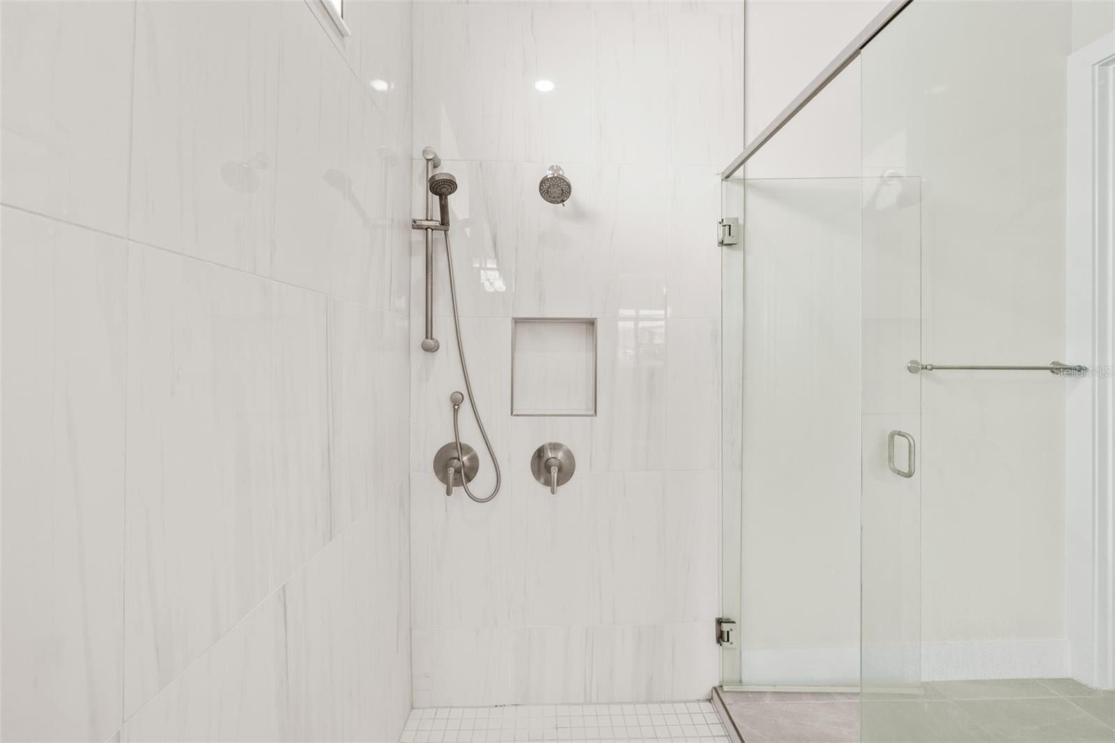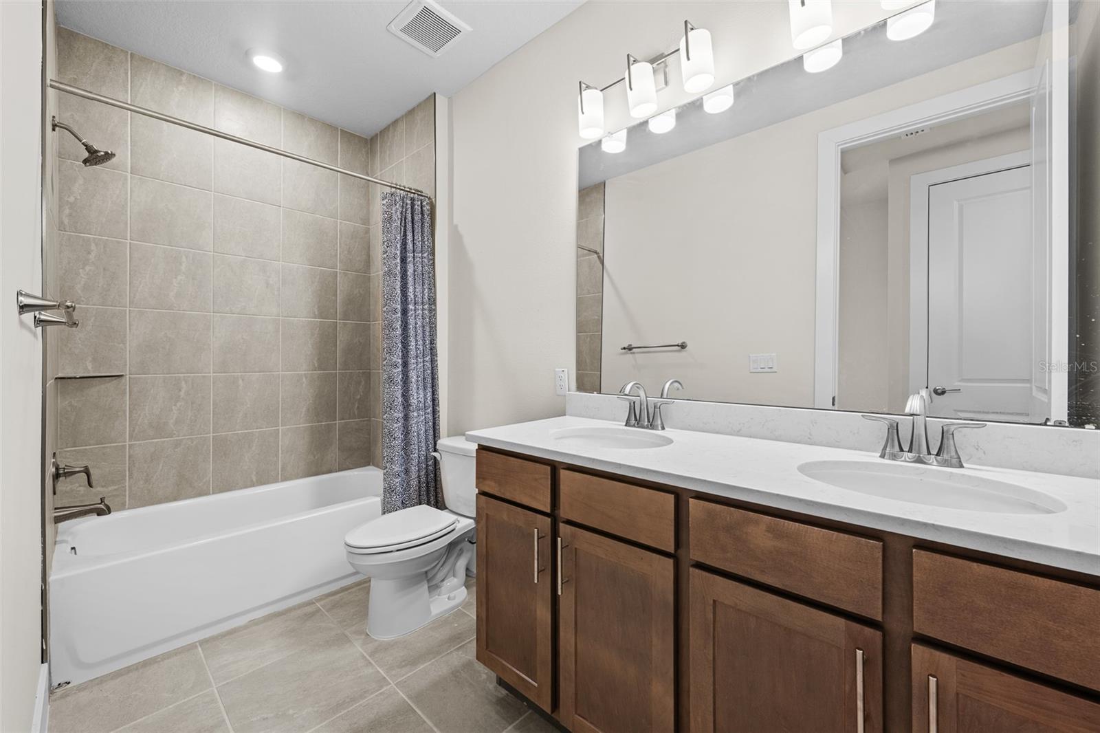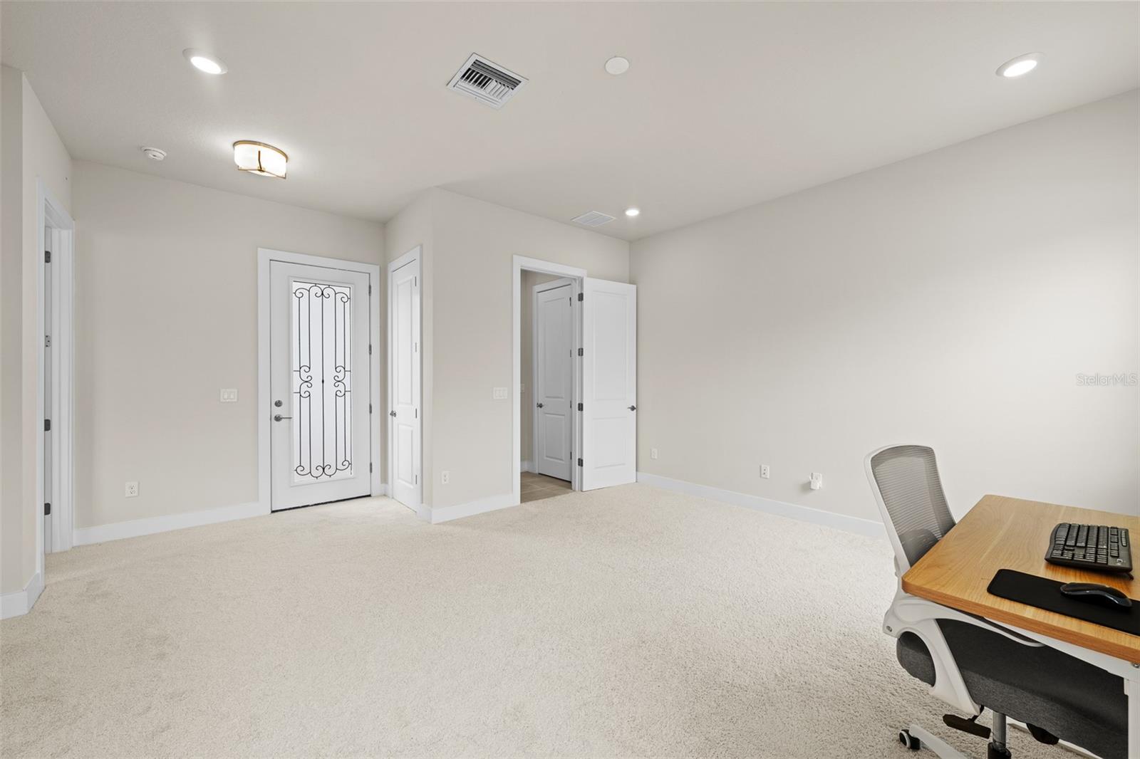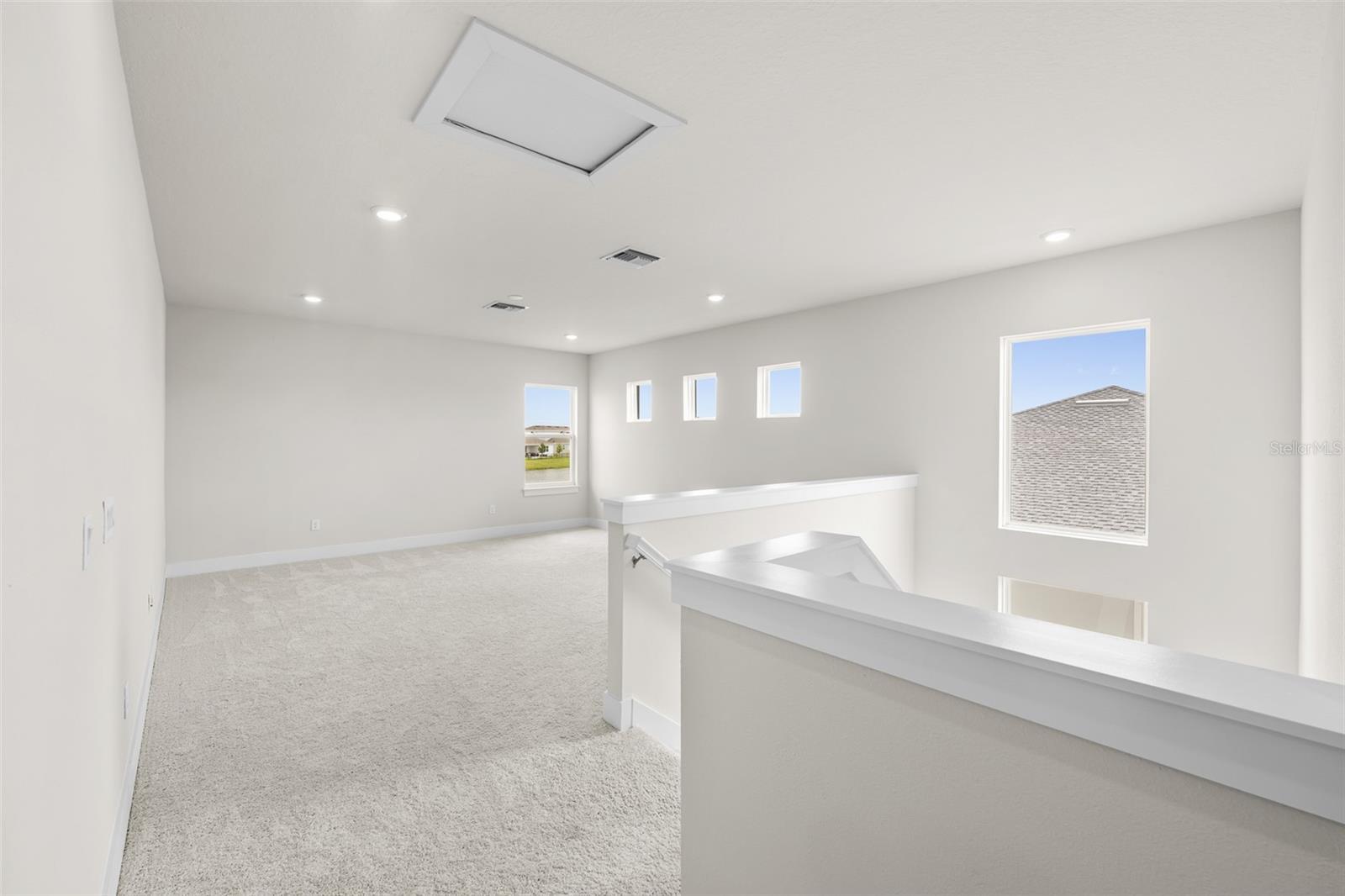 Experience exceptional waterfront living in this stunning four-bedroom, three-and-a-half-bath residence with a dedicated in-law suite with private entrance, all in the amenity-rich community of Epperson Ranch. A stylish frosted glass and wrought iron front door welcomes you into a home defined by sophisticated finishes and a thoughtful layout. The expansive living space is adorned with durable ceramic tile floors, creating a seamless flow from room to room. The heart of the home is the gourmet kitchen, which boasts attractive quartz countertops, a classic white subway tile backsplash, and sleek stainless steel Samsung appliances including oven, microwave, refrigerator freezer combo and a ceramic cooktop with modern range hood. Ample dining options are provided with a large, sunny breakfast nook for casual meals and a separate formal dining room ideal for entertaining. The luxurious primary suite is a private retreat, featuring an upgraded oversized window package that fills the room with natural light and pond views. The en-suite bath is appointed with quartz counters, dual vanity, a separate water closet and a large, frameless glass walk-in shower. A unique and desirable feature of this home is the private in-law suite, complete with its separate entrance, a bedroom, an en-suite bath, living room and plumbing ready for a kitchenette. Upstairs, a spacious loft area offers flexible living space, ideal for a media room, home office or play area. The well-equipped laundry room includes built-in cabinetry and a utility sink for added convenience. Go outside to the screened and covered lanai, which features a panoramic screen to maximize the tranquil pond views. This outdoor living space is pre-plumbed and wired for an outdoor kitchen, making it an entertainer's dream. An additional paver lanai extends the outdoor space, offering even more room for relaxation and enjoyment. This home provides an unparalleled lifestyle in a premier location, and a prime oversized lot. Epperson’s famous crystal lagoon comprises 7.5 acres of clear blue water including sandy beaches, a swim-up bar, food trucks and various water activities. Epperson also showcases UltraFi, a community-wide internet and cable experience, Streetleaf solar streetlights, golf cart paths and miles of trails. In the Robin's Cove neighborhood is Eagle Park, which includes a community clubhouse, recreational trails, exercise stations, dog parks, playground and a dock for King Lake. This growing area is across the street from The Kirkland Ranch Academy of Innovation and new Kirkland Ranch K-8 School. Enjoy golf cart access to Publix and Starbucks while also conveniently less than five minutes from Interstate 75, providing ample shopping and dining options at the Tampa Premium Outlets, Shops at Wiregrass and Krate at the Grove.