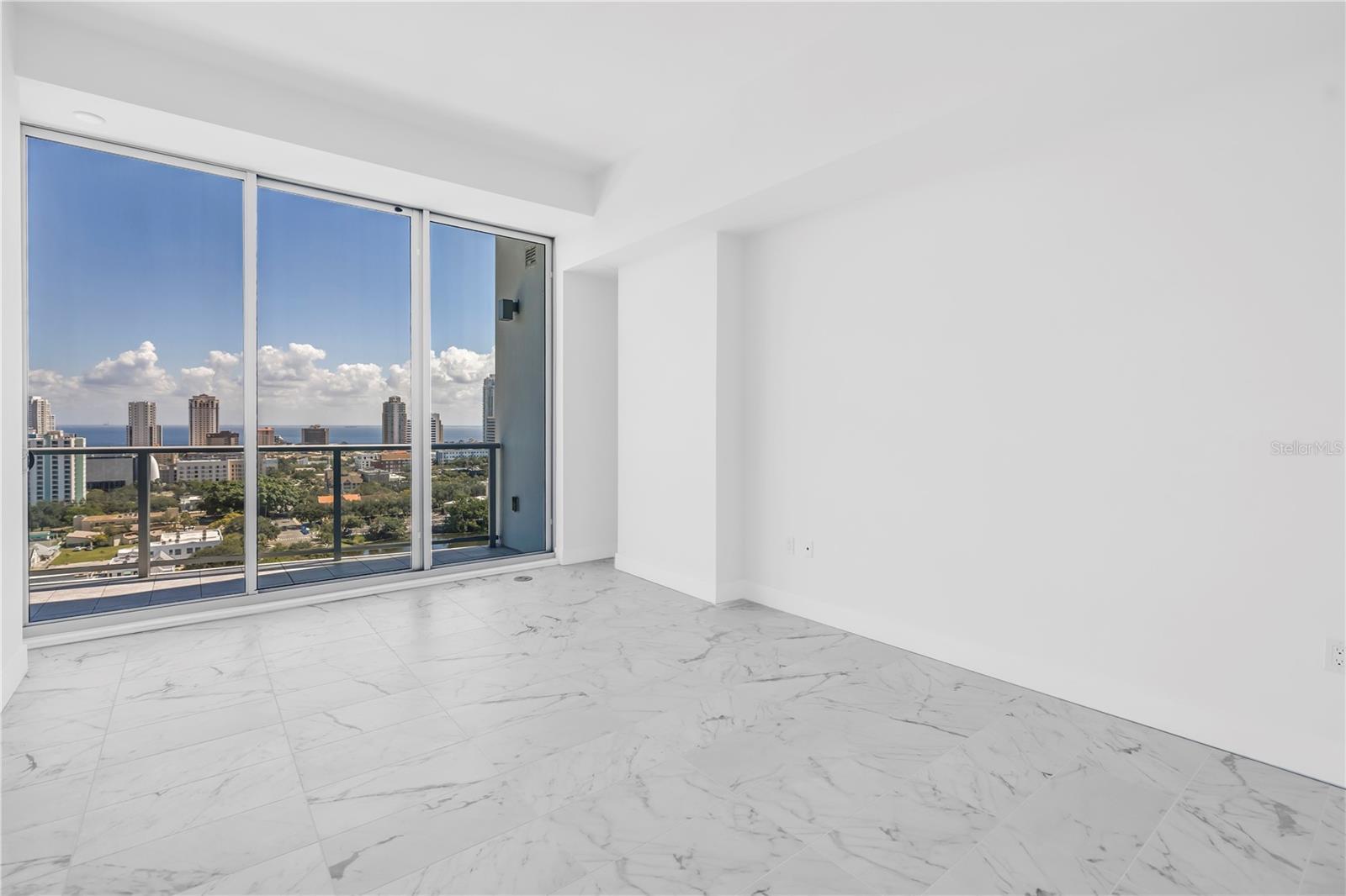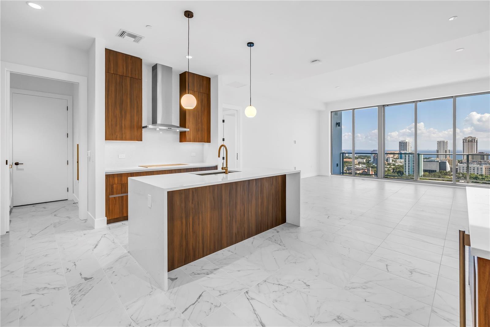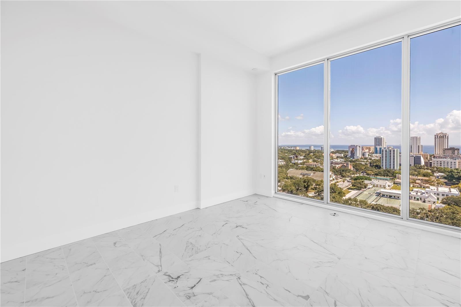 REFLECTION St. Pete presents a rare opportunity to own the Jade Penthouse—a 17th-floor corner residence in one of downtown’s most unique luxury towers. Spanning over 1,700 square feet, this 2-bedroom, 2-bath home offers sweeping city and water views paired with the privacy and sophistication of penthouse living. Inside, the residence features soaring 11-foot ceilings, upgraded porcelain tile floors, and a designer kitchen with panel-ready Bosch appliances, quartz countertops, and a custom dry bar with a Thermador wine fridge—perfect for entertaining. The open layout is bright and inviting, framed by floor-to-ceiling glass that fills the home with natural light. The spacious primary suite includes a European wet room and generous walk-in closet, while the guest suite provides flexibility for visitors or a home office. Two assigned parking spaces are included. Residents enjoy exclusive access to a 12,000-sq-ft rooftop retreat, complete with a heated saltwater pool and spa, glass-walled fitness center, social club, fire pit lounge, and outdoor kitchen—all surrounded by panoramic city and bay views. Built for both luxury and longevity, REFLECTION features REME Halo air filtration, a water softening system, touchless entry, and superior construction proven to withstand recent hurricanes. Nestled along Mirror Lake and just steps from Central Avenue’s dining, shopping, and cultural destinations, the Jade Penthouse offers an unmatched balance of tranquility, convenience, and elevated downtown living.