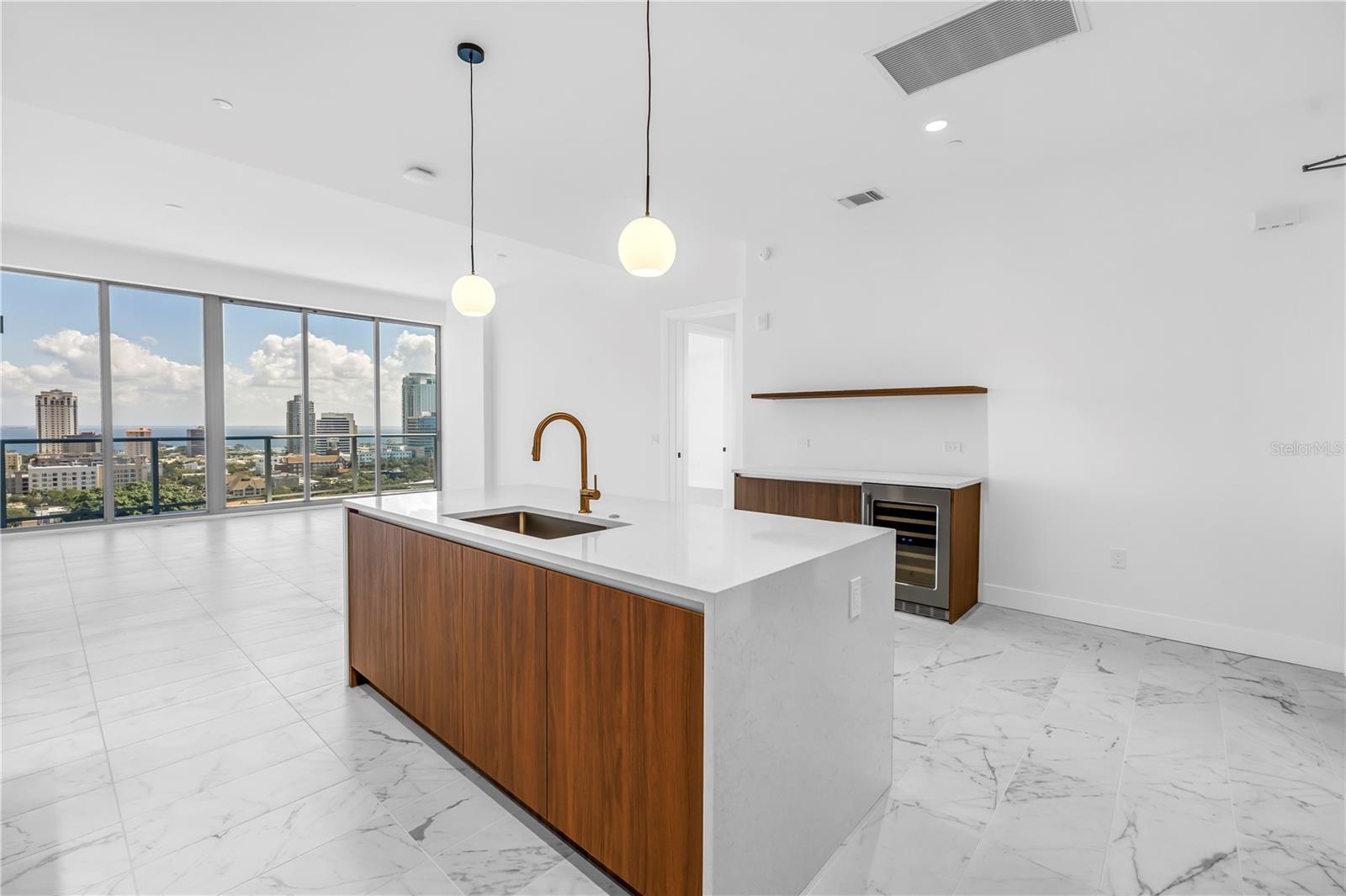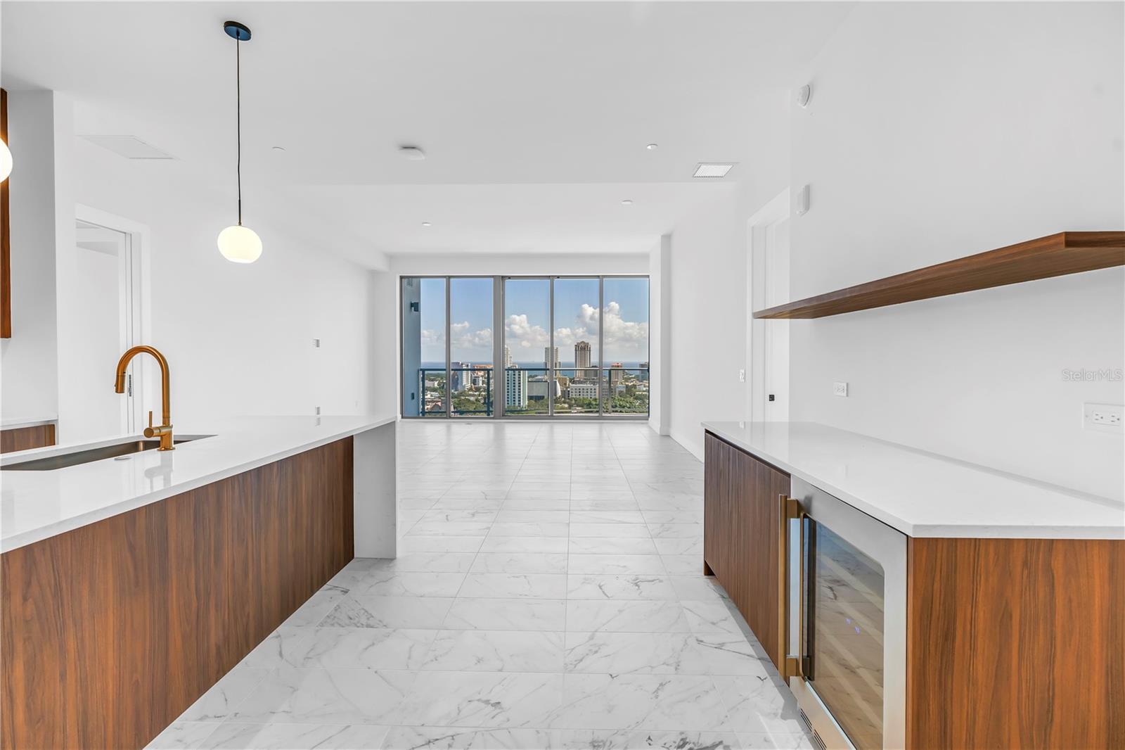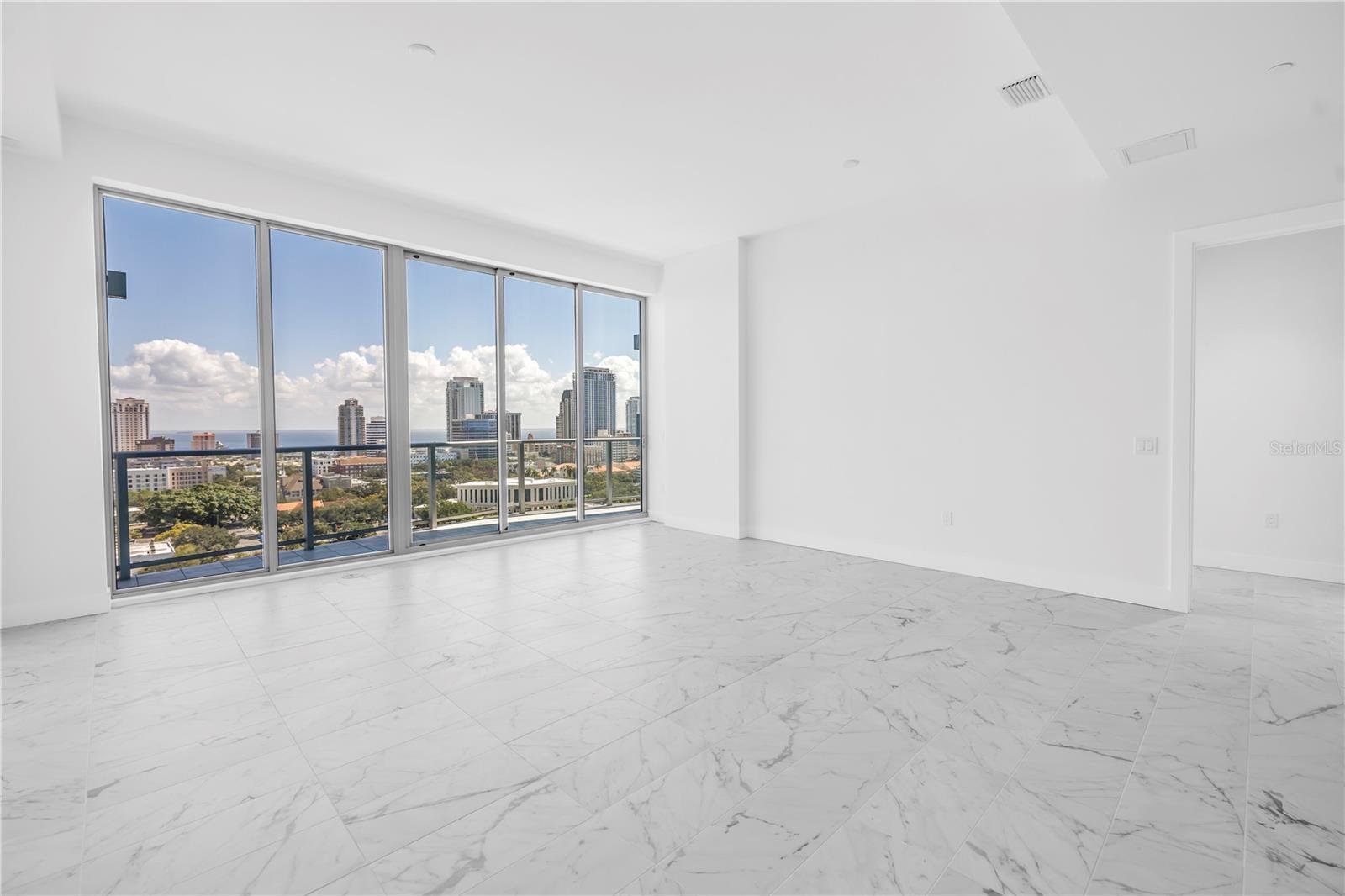 REFLECTION St. Pete presents a rare opportunity to own the Jade Penthouse—a 17th-floor corner residence in one of downtown’s most unique luxury towers. Spanning over 1,700 square feet, this 2-bedroom, 2-bath home offers sweeping city and water views paired with the privacy and sophistication of penthouse living. Inside, the residence features soaring 11-foot ceilings, upgraded porcelain tile floors, and a designer kitchen with panel-ready Bosch appliances, quartz countertops, and a custom dry bar with a Thermador wine fridge—perfect for entertaining. The open layout is bright and inviting, framed by floor-to-ceiling glass that fills the home with natural light. The spacious primary suite includes a European wet room and generous walk-in closet, while the guest suite provides flexibility for visitors or a home office. Two assigned parking spaces are included. Residents enjoy exclusive access to a 12,000-sq-ft rooftop retreat, complete with a heated saltwater pool and spa, glass-walled fitness center, social club, fire pit lounge, and outdoor kitchen—all surrounded by panoramic city and bay views. Built for both luxury and longevity, REFLECTION features REME Halo air filtration, a water softening system, touchless entry, and superior construction proven to withstand recent hurricanes. Nestled along Mirror Lake and just steps from Central Avenue’s dining, shopping, and cultural destinations, the Jade Penthouse offers an unmatched balance of tranquility, convenience, and elevated downtown living.