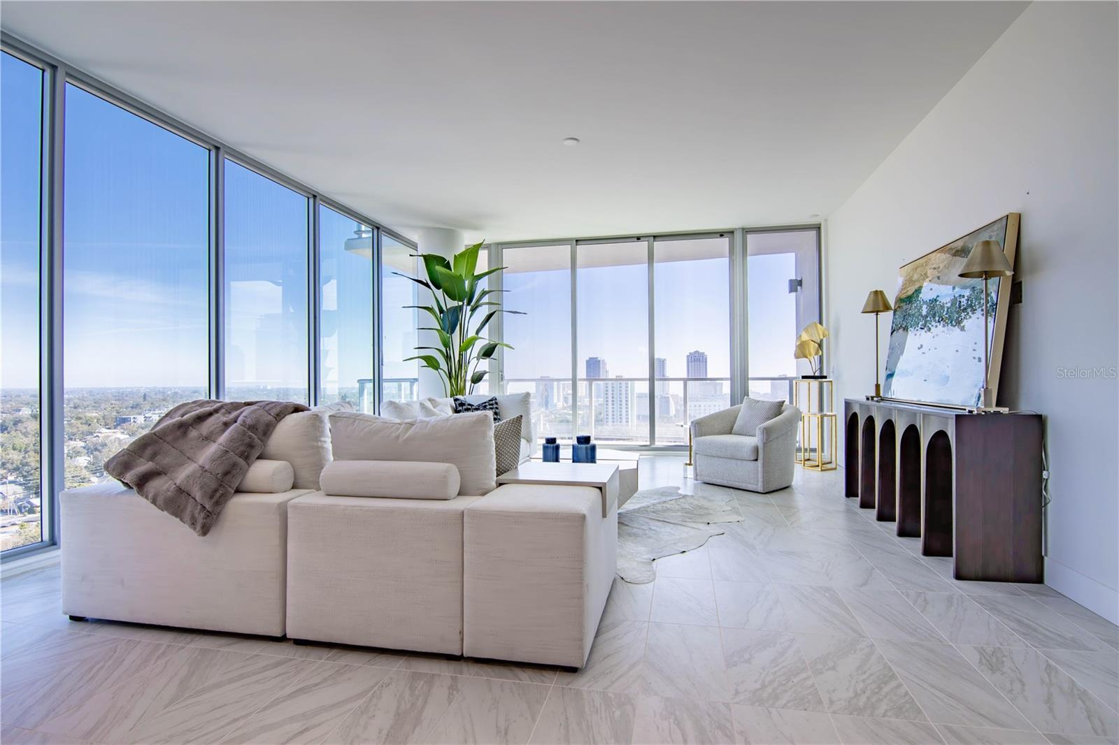 REFLECTION St. Pete is a vision of truly having it all, perfectly situated in the heart of downtown. The community is walkable, bikeable, and conveniently located near the best dining, boutiques, and award-winning museums and galleries on Central Avenue. This northeast-corner Citrine floor plan offers 2 bedrooms, 2 baths, and wraparound floor-to-ceiling glass with panoramic views of the skyline, Mirror Lake, and Tampa Bay. The open layout features 10-foot ceilings, porcelain tile floors, and a modern kitchen with quartz counters, a double-waterfall island, and panel-ready Bosch appliances. The spacious primary suite includes a European-style wet room and walk-in closet; the second bedroom enjoys abundant natural light and a generous closet. Two assigned parking spaces are included. Residents enjoy exclusive access to the 12,000-sq-ft rooftop oasis with resort-style pool and spa, fitness center, social club, fire pit lounge, and outdoor kitchen—all with stunning city and bay views. REFLECTION is built with durability and wellness in mind, featuring REME Halo air filtration, water softening, and touchless entry. Its performance through recent hurricanes highlights the building’s superior construction and lasting quality. Just blocks from the energy of Central Avenue yet tucked beside peaceful Mirror Lake, REFLECTION offers a rare balance of excitement and tranquility in the heart of downtown St. Petersburg.