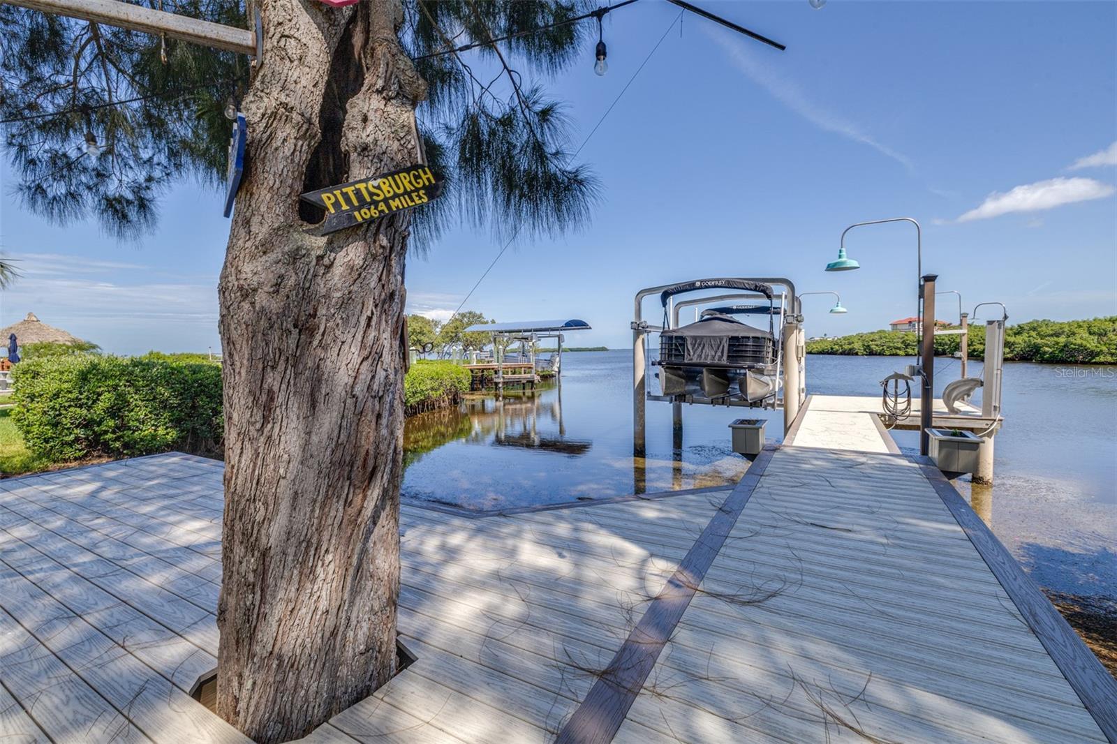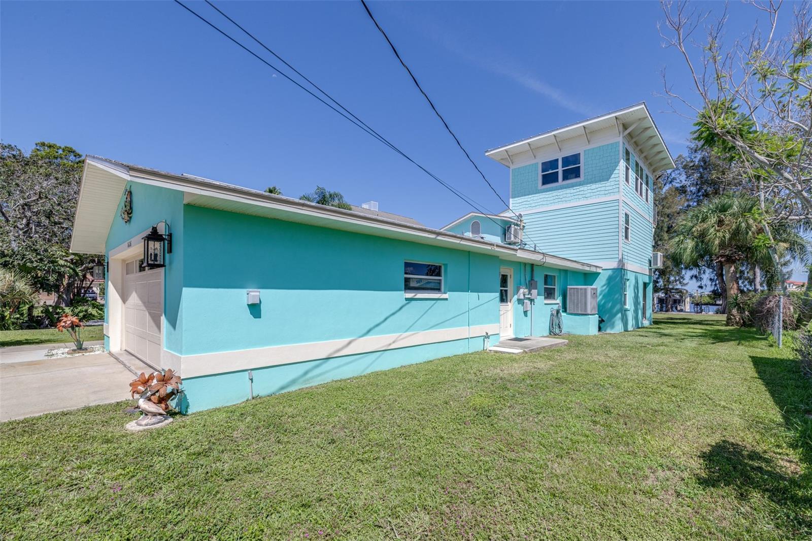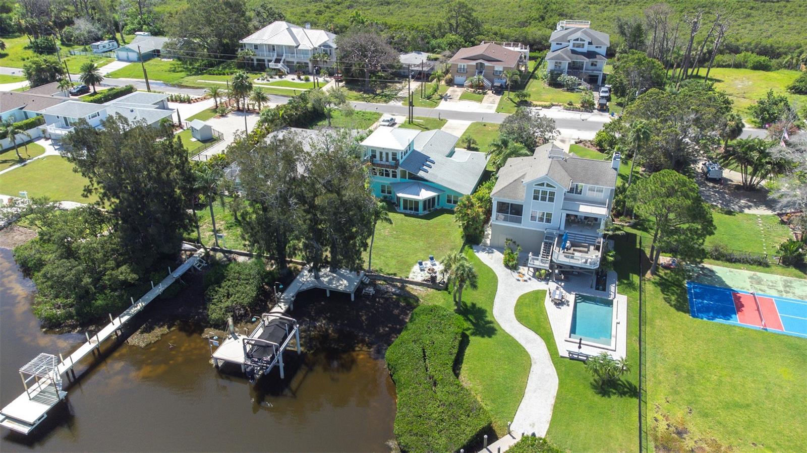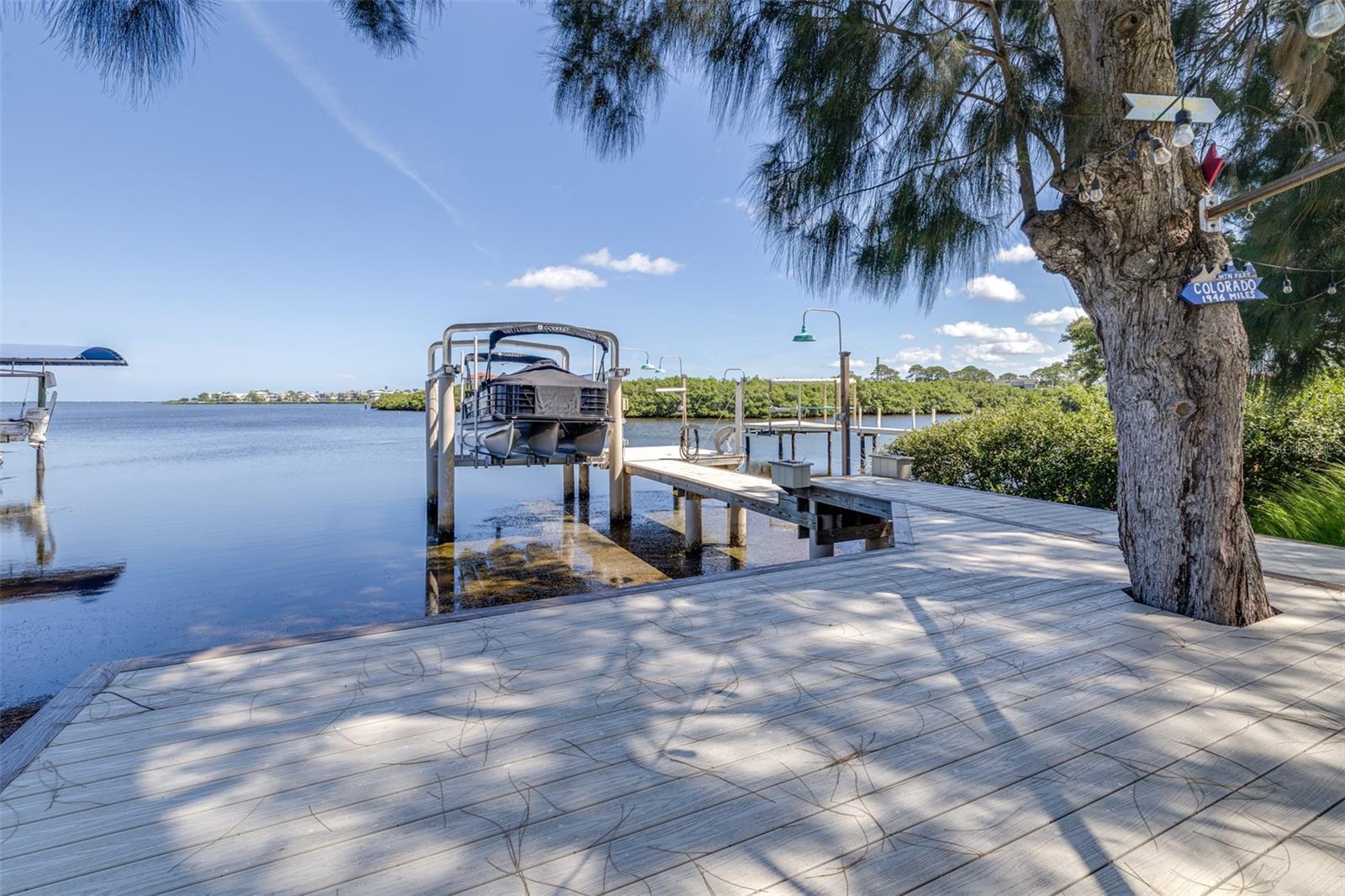 OFFERING this CUSTOM three story waterfront home, on the Gulf of America. Large front yard leading to this incredible home with all the amenities for enjoying the Florida lifestyle. The first floor includes the attached two car garage (brand new hurricane “smart” garage door with opener and camera) which enters into the laundry and kitchen areas. The laundry has custom cabinetry and granite countertops with sink. All new ceramic flooring throughout the home takes you into a custom-built kitchen, which includes the cabinetry, quartz countertops, custom hood and Café Designer Appliances. Continuing from the kitchen to the dining area and living room to the view through the pool area to the gulf and boat dock. Out of the elements is a 7’x15’ fiberglass pool and area within the home. Above the pool room is a loft for additional storage, office or guests. A fantastic place to enjoy the “privacy” of an enclosed indoor pool, or a choice to open the sliding 9 panes of hurricane sliding doors to have an open view of the gulf. The master bedroom has a waterfront view and contains a new walk-in closet and master bath completely remodeled. Around the corner is the second bedroom and second bathroom, updated in 2021. The next level, accessed by a stairway, leads you to the third bedroom. A recently added third floor is the ultimate entertaining room with panoramic water view, walk out observation deck and hurricane windows. Currently is set up with a bar and gaming table. Pay attention to ALL the custom details on your way through the house, such as the exotic canary wood windowsills. On entry to the dock is a 24’x14’ custom deck surrounding two majestic Australian Pines. Great for relaxation and watching the amazing gulf sunsets. Custom 8000 lb. boat lift installed in 2021 and NEW marine grade, maintenance free “wear decking”. The dock also contains custom lighting and an outdoor” manatee” shower. It is approximately a 15-minute boating experience to the Anclote sandbar and channel. As an added area for outdoor enjoyment is a firepit entertainment area at waterfront. Newly installed, Hurricane Rated "Smart" garage door. You can boat to Captain Jacks, downtown Tarpon Springs Sponge Docks, Rusty Bellies, Miss Vicki’s, and Ozona Blue, to name a few. It is also a short boat or bike ride to Howard Park. For your RV or guests, the driveway has a 50 amp hook up and sufficient depth for a 40 ft coach. This is truly THE property to enjoy the Florida lifestyle!