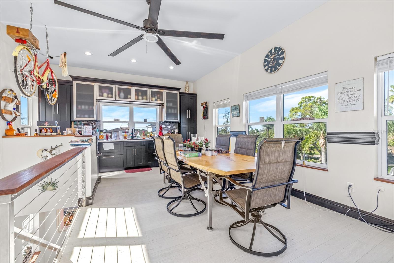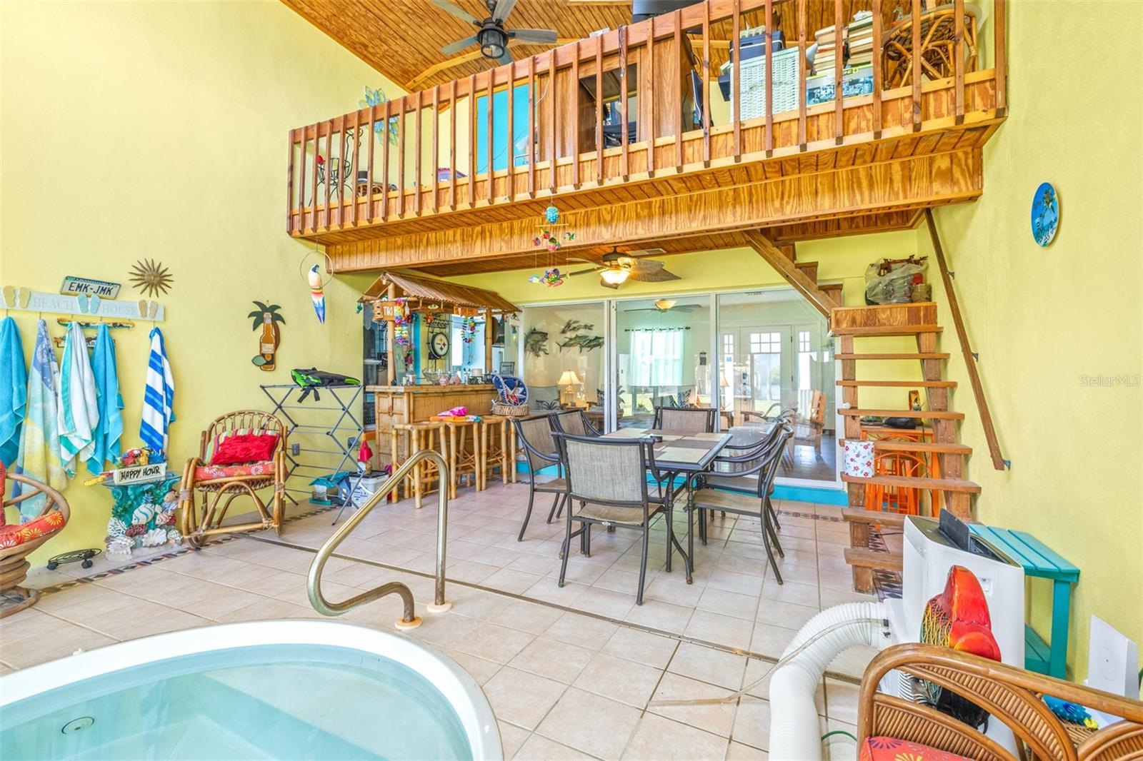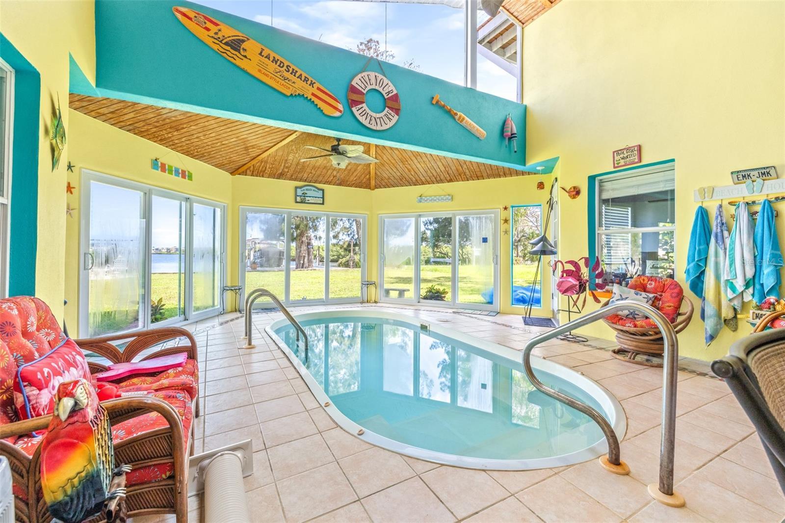 OFFERING this CUSTOM three story waterfront home, on the Gulf of America. Large front yard leading to this incredible home with all the amenities for enjoying the Florida lifestyle. The first floor includes the attached two car garage (brand new hurricane “smart” garage door with opener and camera) which enters into the laundry and kitchen areas. The laundry has custom cabinetry and granite countertops with sink. All new ceramic flooring throughout the home takes you into a custom-built kitchen, which includes the cabinetry, quartz countertops, custom hood and Café Designer Appliances. Continuing from the kitchen to the dining area and living room to the view through the pool area to the gulf and boat dock. Out of the elements is a 7’x15’ fiberglass pool and area within the home. Above the pool room is a loft for additional storage, office or guests. A fantastic place to enjoy the “privacy” of an enclosed indoor pool, or a choice to open the sliding 9 panes of hurricane sliding doors to have an open view of the gulf. The master bedroom has a waterfront view and contains a new walk-in closet and master bath completely remodeled. Around the corner is the second bedroom and second bathroom, updated in 2021. The next level, accessed by a stairway, leads you to the third bedroom. A recently added third floor is the ultimate entertaining room with panoramic water view, walk out observation deck and hurricane windows. Currently is set up with a bar and gaming table. Pay attention to ALL the custom details on your way through the house, such as the exotic canary wood windowsills. On entry to the dock is a 24’x14’ custom deck surrounding two majestic Australian Pines. Great for relaxation and watching the amazing gulf sunsets. Custom 8000 lb. boat lift installed in 2021 and NEW marine grade, maintenance free “wear decking”. The dock also contains custom lighting and an outdoor” manatee” shower. It is approximately a 15-minute boating experience to the Anclote sandbar and channel. As an added area for outdoor enjoyment is a firepit entertainment area at waterfront. Newly installed, Hurricane Rated "Smart" garage door. You can boat to Captain Jacks, downtown Tarpon Springs Sponge Docks, Rusty Bellies, Miss Vicki’s, and Ozona Blue, to name a few. It is also a short boat or bike ride to Howard Park. For your RV or guests, the driveway has a 50 amp hook up and sufficient depth for a 40 ft coach. This is truly THE property to enjoy the Florida lifestyle!
