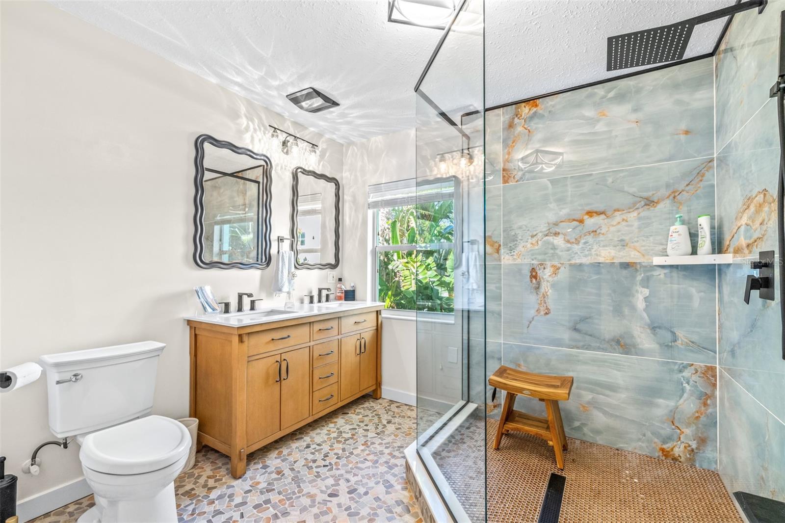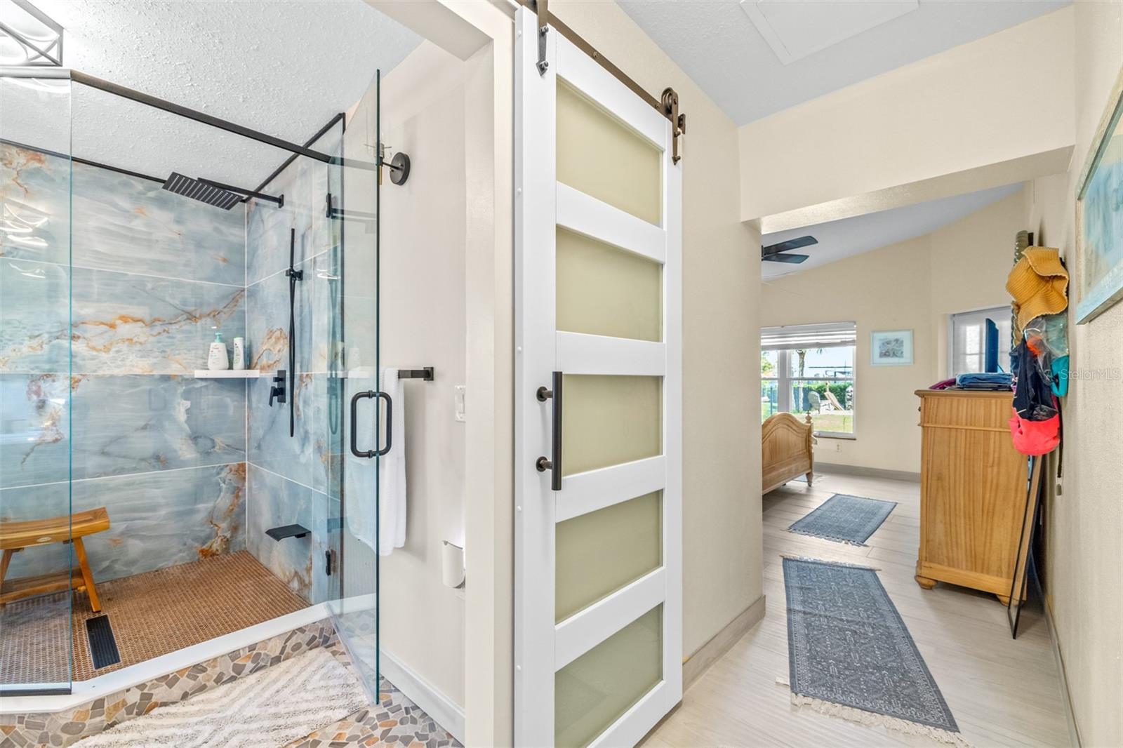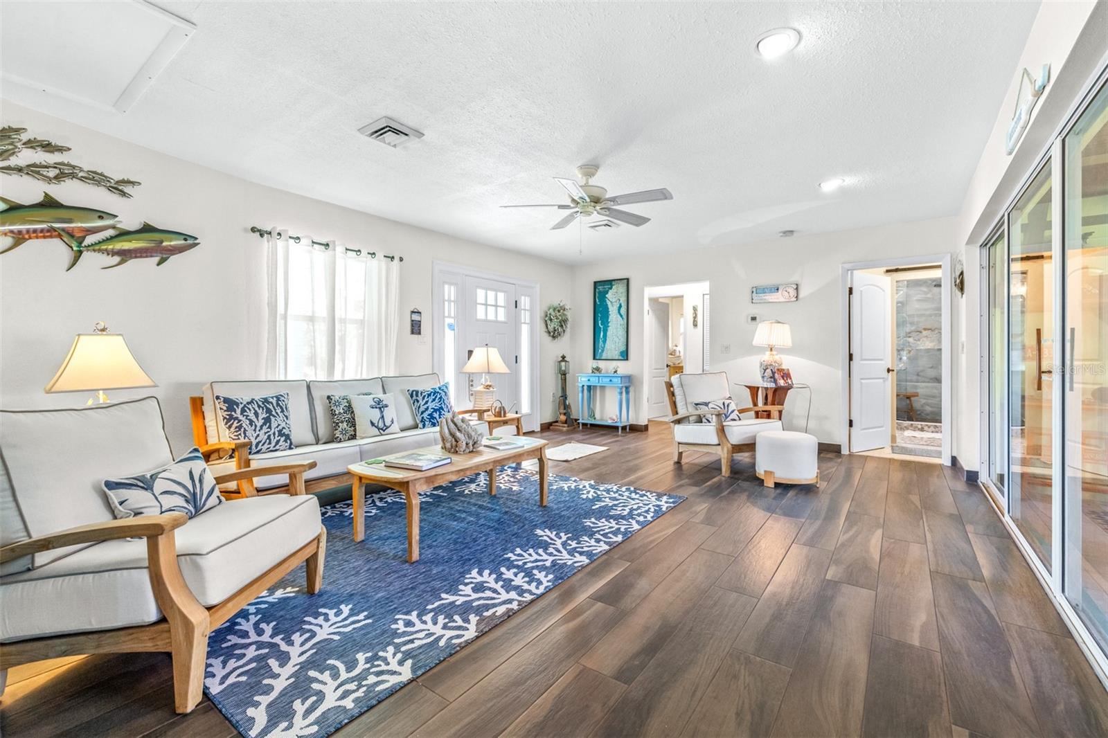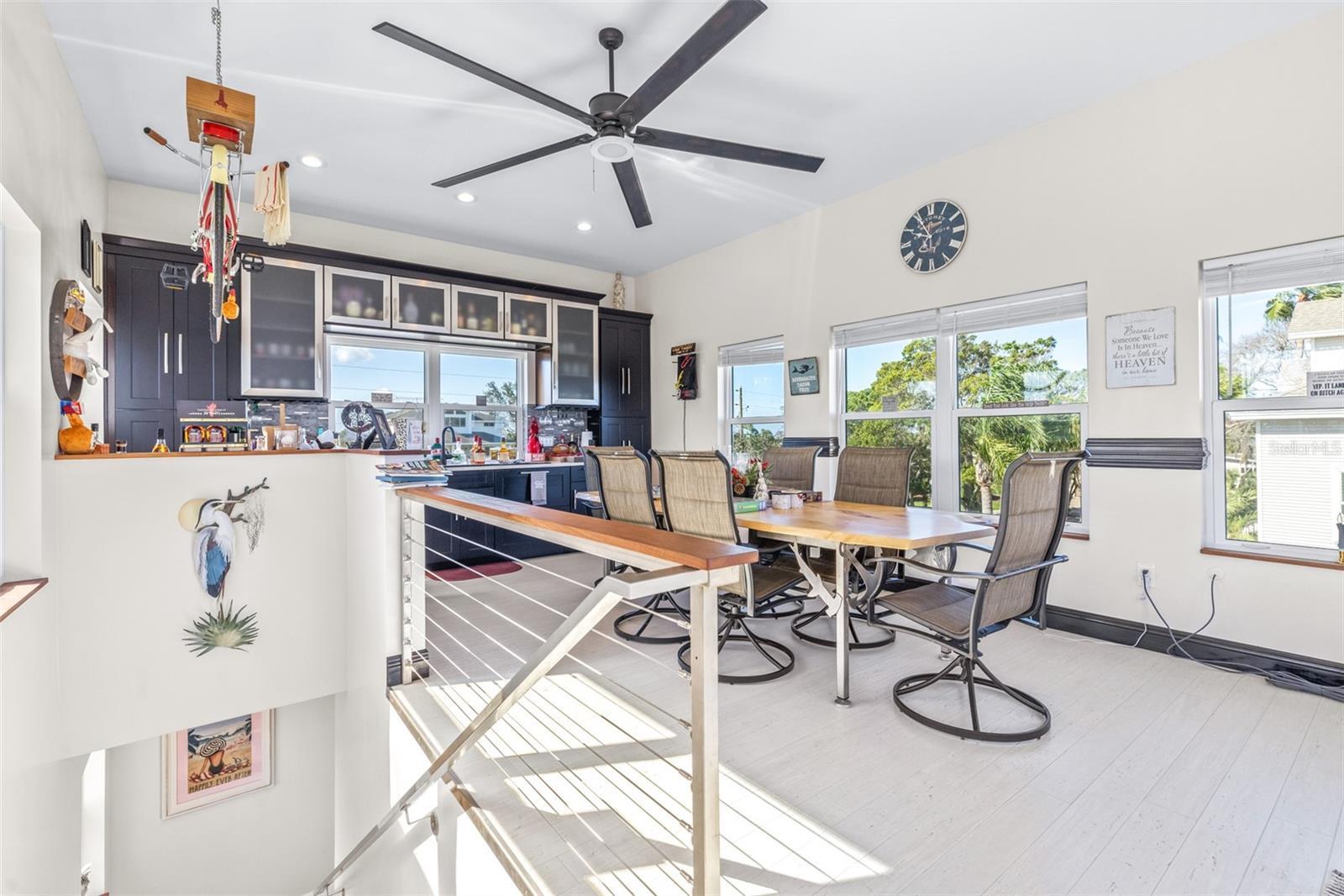 OFFERING this CUSTOM three story waterfront home, on the Gulf of America. Large front yard leading to this incredible home with all the amenities for enjoying the Florida lifestyle. The first floor includes the attached two car garage (brand new hurricane “smart” garage door with opener and camera) which enters into the laundry and kitchen areas. The laundry has custom cabinetry and granite countertops with sink. All new ceramic flooring throughout the home takes you into a custom-built kitchen, which includes the cabinetry, quartz countertops, custom hood and Café Designer Appliances. Continuing from the kitchen to the dining area and living room to the view through the pool area to the gulf and boat dock. Out of the elements is a 7’x15’ fiberglass pool and area within the home. Above the pool room is a loft for additional storage, office or guests. A fantastic place to enjoy the “privacy” of an enclosed indoor pool, or a choice to open the sliding 9 panes of hurricane sliding doors to have an open view of the gulf. The master bedroom has a waterfront view and contains a new walk-in closet and master bath completely remodeled. Around the corner is the second bedroom and second bathroom, updated in 2021. The next level, accessed by a stairway, leads you to the third bedroom. A recently added third floor is the ultimate entertaining room with panoramic water view, walk out observation deck and hurricane windows. Currently is set up with a bar and gaming table. Pay attention to ALL the custom details on your way through the house, such as the exotic canary wood windowsills. On entry to the dock is a 24’x14’ custom deck surrounding two majestic Australian Pines. Great for relaxation and watching the amazing gulf sunsets. Custom 8000 lb. boat lift installed in 2021 and NEW marine grade, maintenance free “wear decking”. The dock also contains custom lighting and an outdoor” manatee” shower. It is approximately a 15-minute boating experience to the Anclote sandbar and channel. As an added area for outdoor enjoyment is a firepit entertainment area at waterfront. Newly installed, Hurricane Rated "Smart" garage door. You can boat to Captain Jacks, downtown Tarpon Springs Sponge Docks, Rusty Bellies, Miss Vicki’s, and Ozona Blue, to name a few. It is also a short boat or bike ride to Howard Park. For your RV or guests, the driveway has a 50 amp hook up and sufficient depth for a 40 ft coach. This is truly THE property to enjoy the Florida lifestyle!