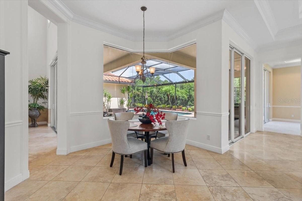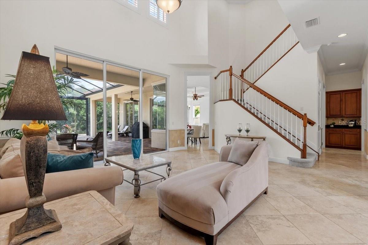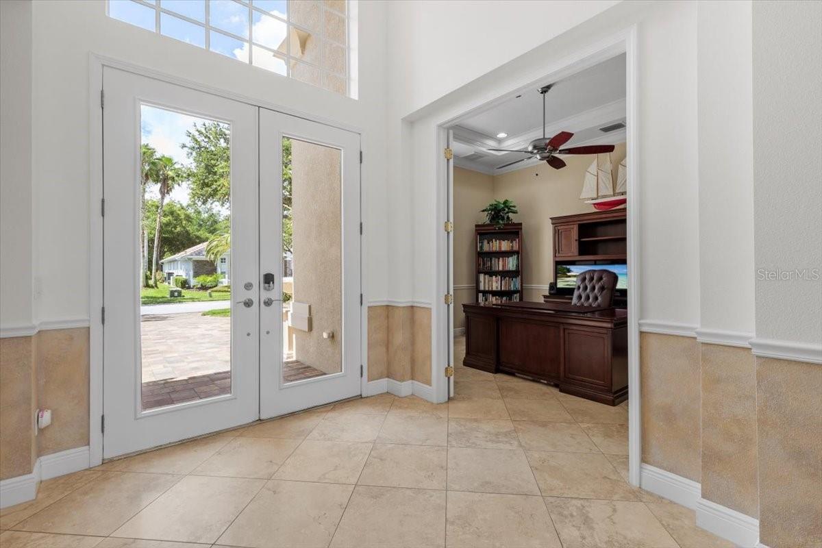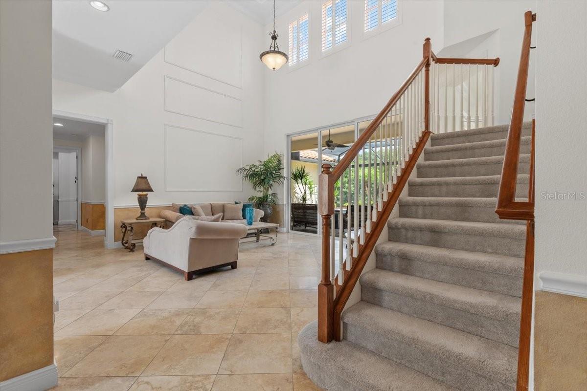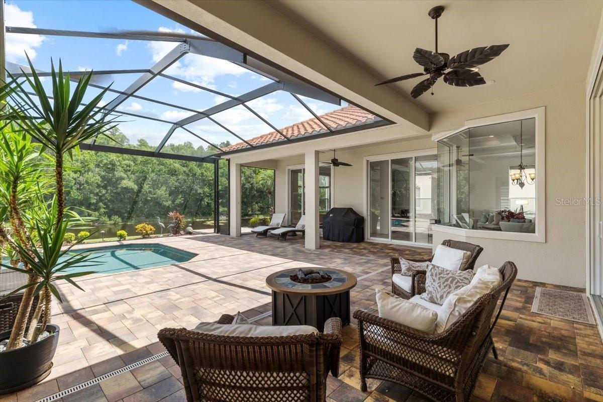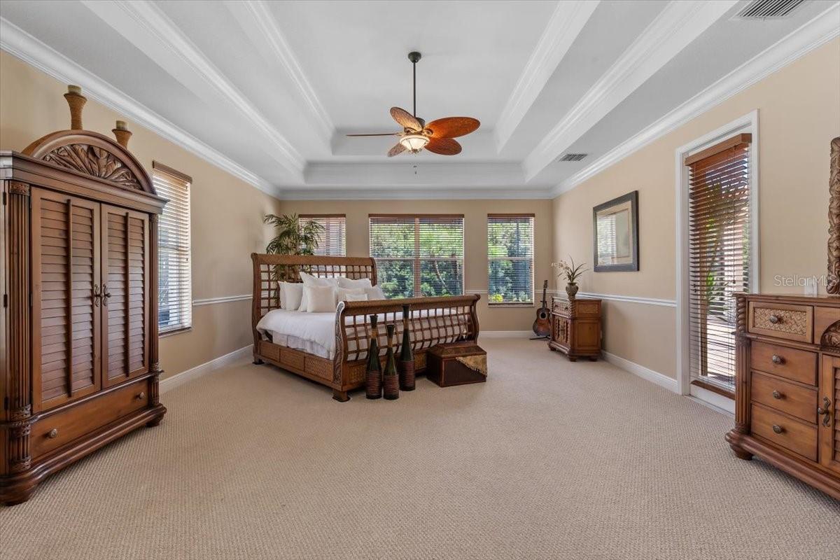 Under contract-accepting backup offers. Refined elegance meets timeless craftsmanship in this architecturally distinguished estate, tucked behind the gates of the coveted Grand Hampton community. Designed and built by Taylor Morrison, this masterfully curated residence offers an exceptional blend of sophistication and comfort—boasting 4,896 Sq-ft, 4 spacious bedrooms, 4 full bathrooms, a private office, bonus room, and a rare 4-car garage. From the moment you arrive, the home's commanding curb appeal sets the tone—lush, upgraded landscaping, dramatic outdoor lighting, and an oversized paver driveway lead to stately glass double doors. Inside, a grand chandelier anchors the foyer, while natural light cascades throughout, highlighting the polished tile floors that flow seamlessly across the main living areas. To the left, the executive office is appointed with elegant plantation shutters and architectural detail. To the right, a formal dining room exudes luxury with tray ceilings and refined millwork—perfect for upscale entertaining. Continue into the first living room where stacker sliding glass doors offer a sweeping, panoramic view of the pond and surrounding conservation area. Adjacent, the first full bathroom—conveniently serving as a pool bath—features a sleek glass walk-in shower and modern finishes. Beyond, French doors open to a private foyer with a lighted niche, leading to the exquisite primary suite. Designed for indulgence, the primary bedroom boasts double tray ceilings, dual walk-in closets, serene pond and conservation views, and direct access to the outdoor retreat. The spa-inspired en-suite bath includes dual vanities, a deep soaking garden tub, and a glass walk-in shower with a built-in bench. Off the living room, the dinette area is surrounded by bay windows, framing peaceful backyard vistas. The gourmet kitchen is a culinary showpiece—featuring upgraded solid wood cabinetry, shimmering quartz countertops, high-end stainless steel appliances, a gas cooktop, and an oversized pantry—all overlooking the second living area, complete with an entertainment niche, built-in surround sound system, and another set of stacker sliding glass doors to the lanai. The bonus room provides endless flexibility—ideal as a gym with stunning views of the pond. Nearby, the expansive laundry room offers abundant cabinetry, generous countertop space, and a deep utility sink—combining practicality with design. Upstairs, discover Bedrooms Two and Three, each with ample closet space, served by two additional full bathrooms. Bedroom Four—the largest of all secondary rooms—offers comfort and versatility for guests. Step into your private outdoor sanctuary—an exquisite retreat thoughtfully crafted for both relaxation and entertaining. The fully screened lanai showcases a heated saltwater pool with a self-cleaning system, elegant decorative jets, and ambient lighting that transforms the space from day to night. Multiple seating areas invite gatherings, quiet mornings, or alfresco dining under the Florida sky. With uninterrupted views of the tranquil pond and lush conservation area, and no rear neighbors in sight, this outdoor haven offers the ultimate in privacy and natural beauty. Situated within Grand Hampton’s resort-style, guard-gated community, residents enjoy access to a luxurious clubhouse, pools, tennis courts, fitness center, playgrounds, and scenic walking trails. This remarkable home is not just a residence—it’s a statement of style, serenity, and elevated living.