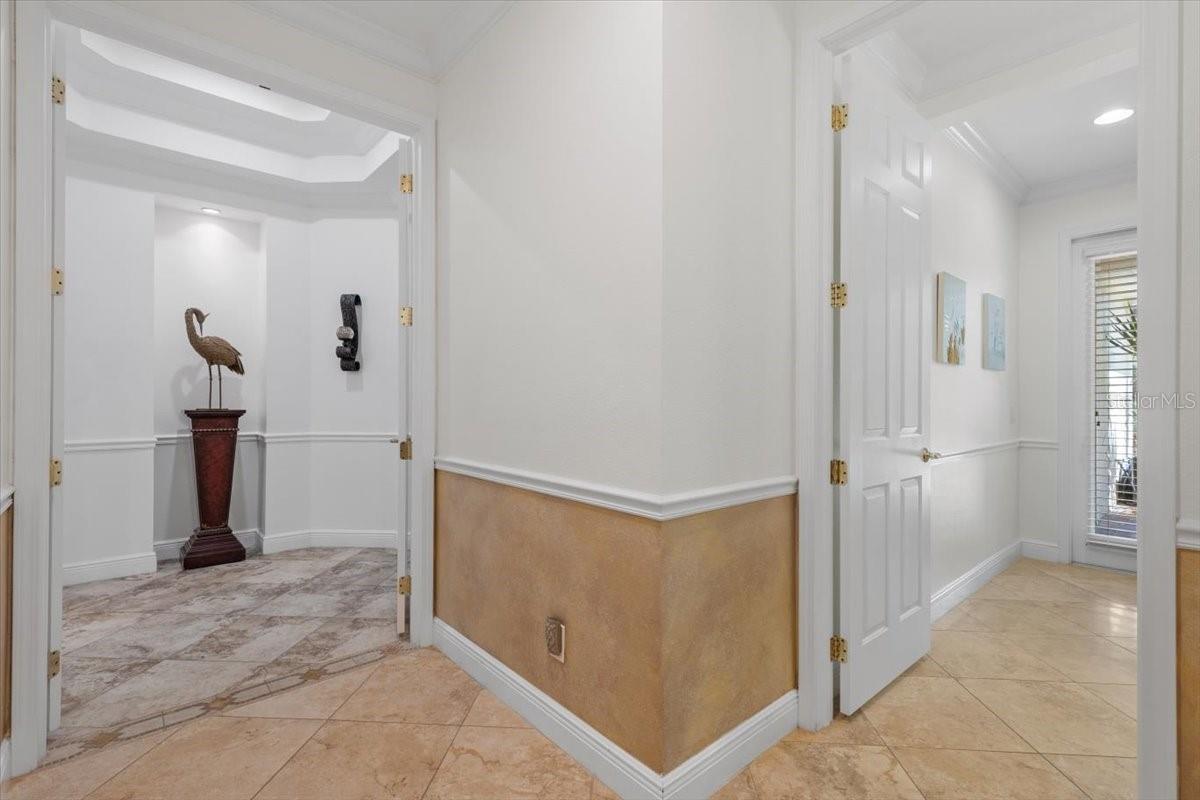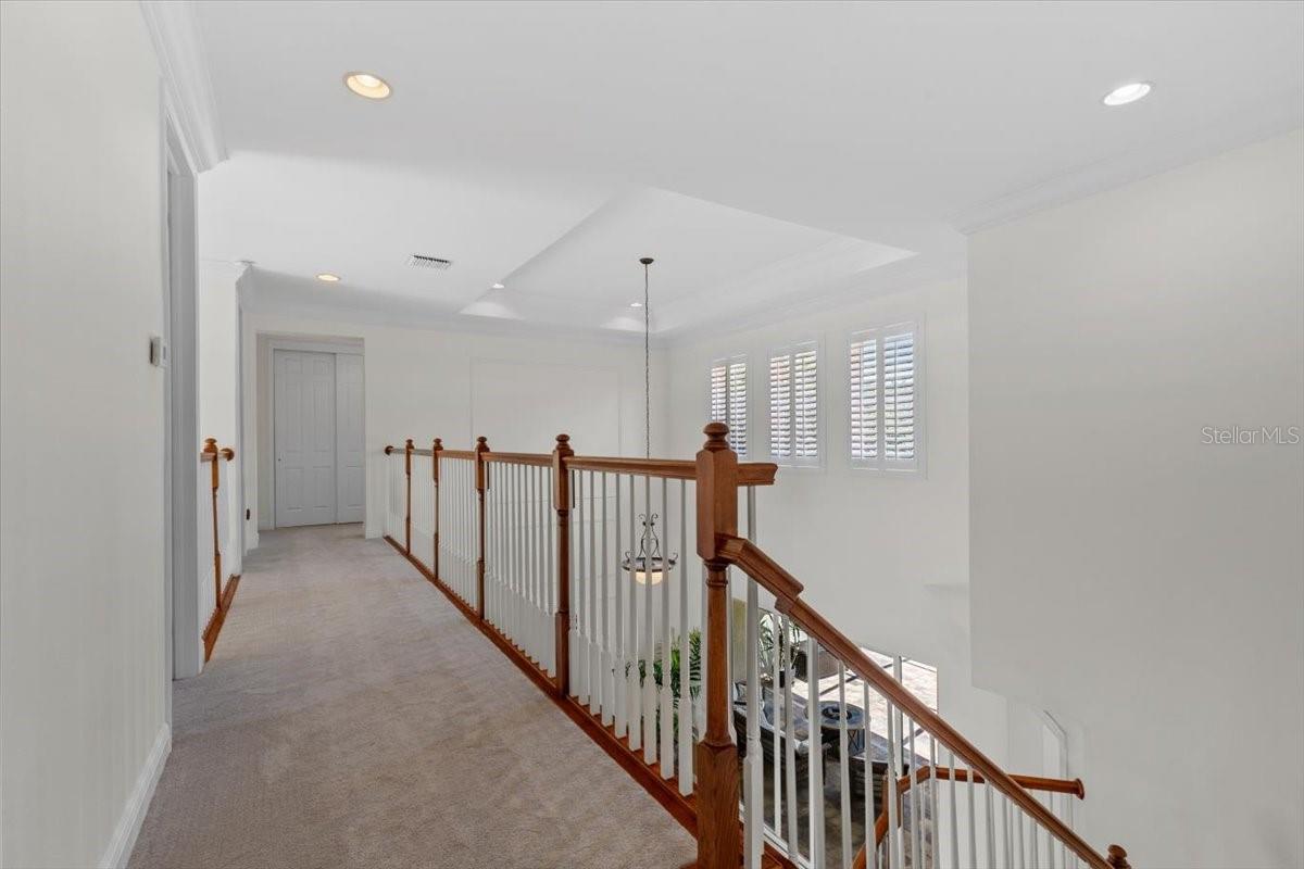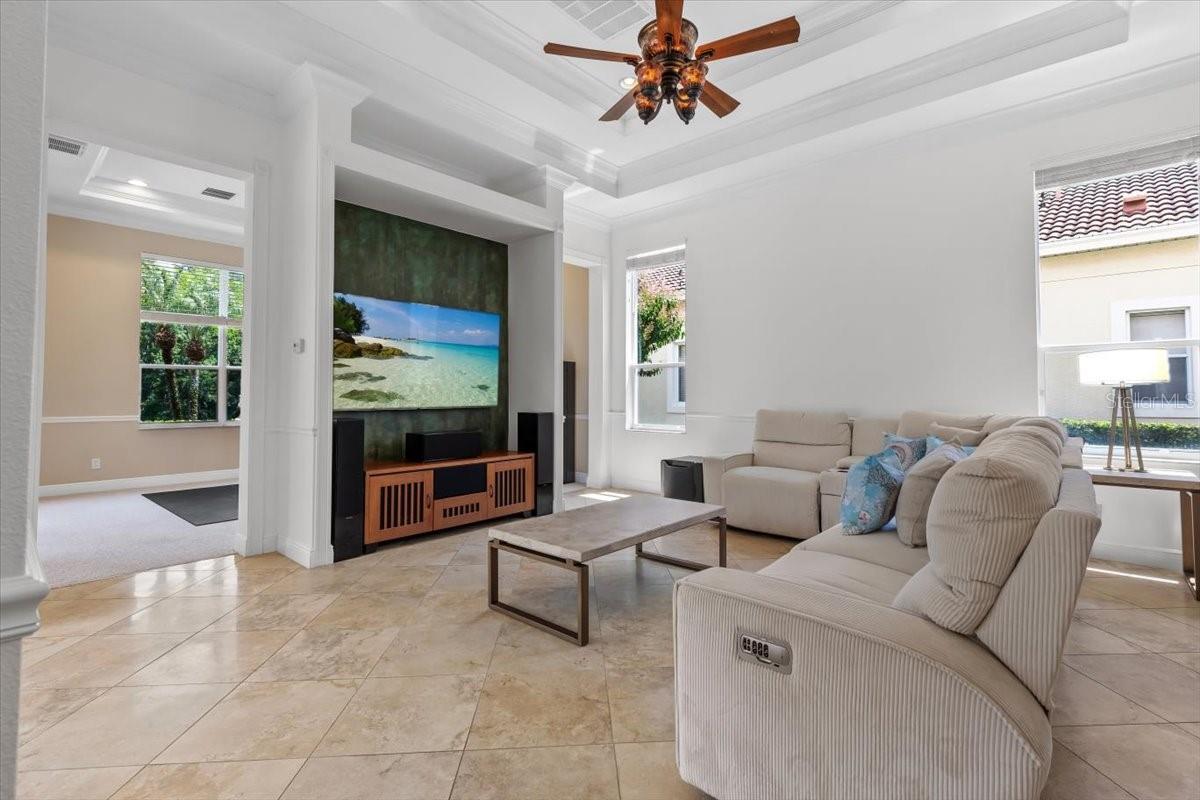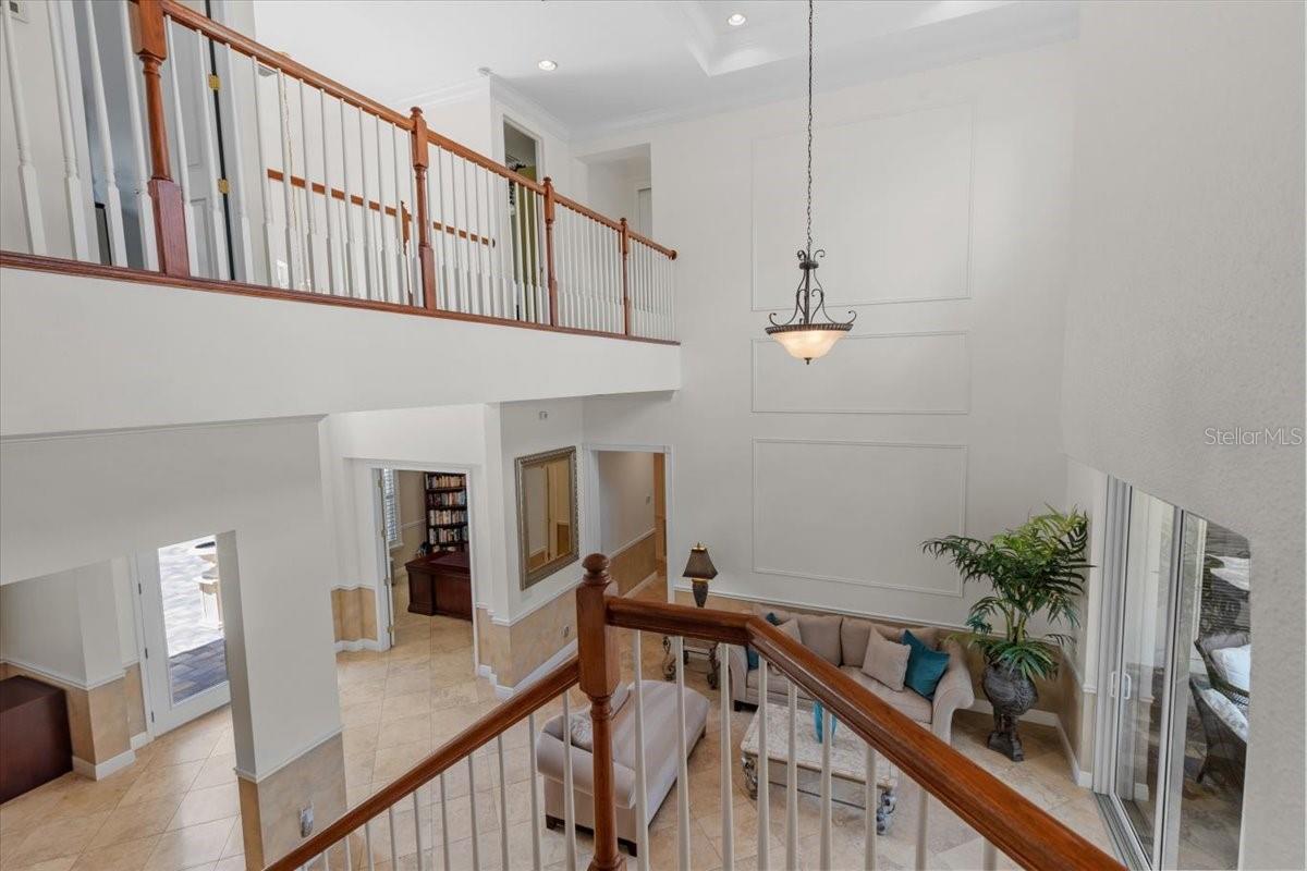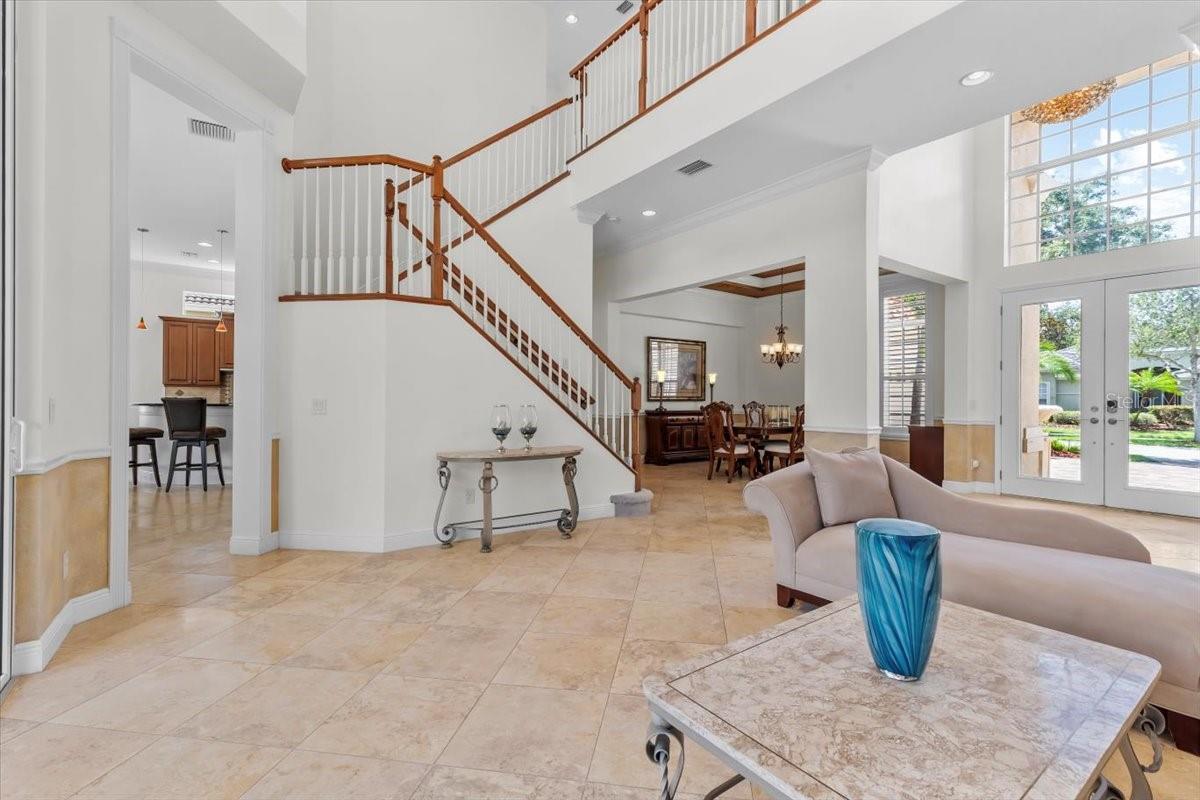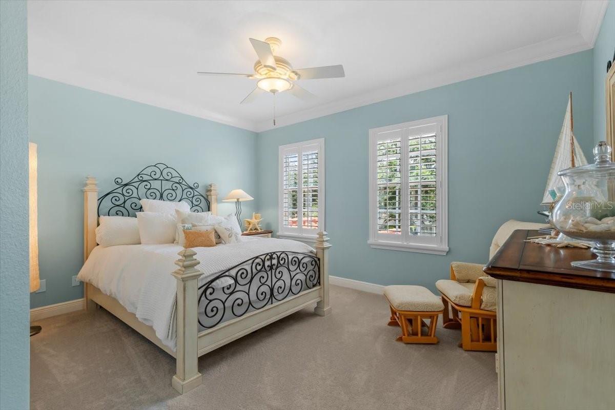 Under contract-accepting backup offers. Refined elegance meets timeless craftsmanship in this architecturally distinguished estate, tucked behind the gates of the coveted Grand Hampton community. Designed and built by Taylor Morrison, this masterfully curated residence offers an exceptional blend of sophistication and comfort—boasting 4,896 Sq-ft, 4 spacious bedrooms, 4 full bathrooms, a private office, bonus room, and a rare 4-car garage. From the moment you arrive, the home's commanding curb appeal sets the tone—lush, upgraded landscaping, dramatic outdoor lighting, and an oversized paver driveway lead to stately glass double doors. Inside, a grand chandelier anchors the foyer, while natural light cascades throughout, highlighting the polished tile floors that flow seamlessly across the main living areas. To the left, the executive office is appointed with elegant plantation shutters and architectural detail. To the right, a formal dining room exudes luxury with tray ceilings and refined millwork—perfect for upscale entertaining. Continue into the first living room where stacker sliding glass doors offer a sweeping, panoramic view of the pond and surrounding conservation area. Adjacent, the first full bathroom—conveniently serving as a pool bath—features a sleek glass walk-in shower and modern finishes. Beyond, French doors open to a private foyer with a lighted niche, leading to the exquisite primary suite. Designed for indulgence, the primary bedroom boasts double tray ceilings, dual walk-in closets, serene pond and conservation views, and direct access to the outdoor retreat. The spa-inspired en-suite bath includes dual vanities, a deep soaking garden tub, and a glass walk-in shower with a built-in bench. Off the living room, the dinette area is surrounded by bay windows, framing peaceful backyard vistas. The gourmet kitchen is a culinary showpiece—featuring upgraded solid wood cabinetry, shimmering quartz countertops, high-end stainless steel appliances, a gas cooktop, and an oversized pantry—all overlooking the second living area, complete with an entertainment niche, built-in surround sound system, and another set of stacker sliding glass doors to the lanai. The bonus room provides endless flexibility—ideal as a gym with stunning views of the pond. Nearby, the expansive laundry room offers abundant cabinetry, generous countertop space, and a deep utility sink—combining practicality with design. Upstairs, discover Bedrooms Two and Three, each with ample closet space, served by two additional full bathrooms. Bedroom Four—the largest of all secondary rooms—offers comfort and versatility for guests. Step into your private outdoor sanctuary—an exquisite retreat thoughtfully crafted for both relaxation and entertaining. The fully screened lanai showcases a heated saltwater pool with a self-cleaning system, elegant decorative jets, and ambient lighting that transforms the space from day to night. Multiple seating areas invite gatherings, quiet mornings, or alfresco dining under the Florida sky. With uninterrupted views of the tranquil pond and lush conservation area, and no rear neighbors in sight, this outdoor haven offers the ultimate in privacy and natural beauty. Situated within Grand Hampton’s resort-style, guard-gated community, residents enjoy access to a luxurious clubhouse, pools, tennis courts, fitness center, playgrounds, and scenic walking trails. This remarkable home is not just a residence—it’s a statement of style, serenity, and elevated living.