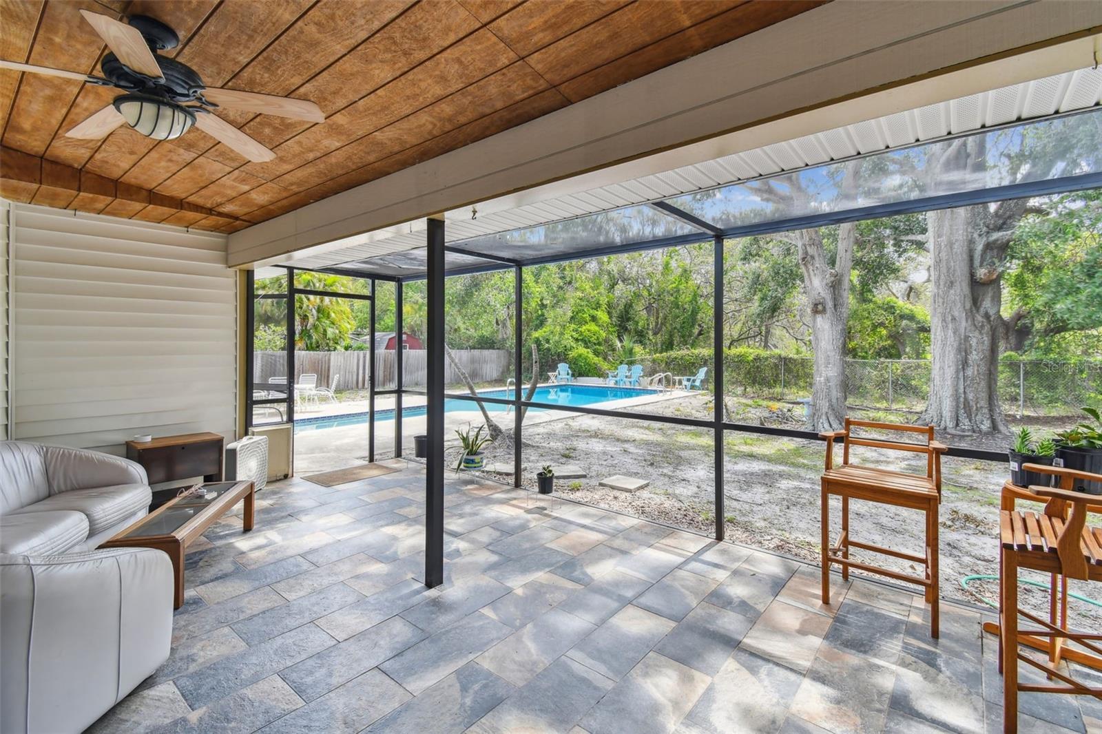 Spacious Pool Home with Endless Potential in a Prime Location Near Walsingham Park! Discover a rare opportunity to own a generously sized pool home in a desirable area—just steps from the scenic 354-acre Walsingham Park. Located on a well-kept street where neighbors take pride in their homes, this property offers incredible space and solid construction—ready for your updates and personal touch. Set on a large homesite with a circular driveway, and a 2-car garage w/separate doors, this home offers great curb appeal. Step through double front doors into a wide, welcoming foyer w/ceramic tile floors & plenty of natural light. To the right of the foyer, a private guest wing features 2 oversized bedrooms w/new luxury vinyl plank flooring & full-wall closets. A spacious vestibule offers privacy and includes a massive linen closet, while the large guest bath features ceramic tile flooring, & a dedicated storage cabinet. To the left of the foyer sits a sprawling kitchen that holds vintage charm & serious potential. Highlights include wood cabinetry, ceramic tile countertops, a vaulted ceiling with skylight, ceramic tile flooring, pantry, laundry closet, & a bright breakfast nook w/sliding glass doors that lead to the screened lanai. Adjacent to the kitchen is a formal dining room with laminate vinyl plank flooring and mitered glass windows overlooking the front yard—ideal for future entertaining or renovation. The living space continues w/an oversized, sunken family room featuring a vaulted ceiling, ceramic tile floors, plenty of recessed lighting, and a cozy gas brick fireplace w/a full hearth & mantle. Beyond the family room, a bonus room w/wet bar & luxury vinyl plank flooring offers endless flexibility—use it for games, hobbies, a home gym, or a future media room. The expansive primary suite is tucked away at the back of the home for added privacy. This room features vaulted ceilings, a skylight, carpeted flooring, & large windows that overlook the pool area. A bonus alcove within the room is perfect for a home office, sitting area, or expanded closet. Dual vanities are positioned outside the en-suite bath, which includes a huge walk-in tile shower & a large picture window that looks out to a private, glass-enclosed garden alcove—currently unplanted but full of potential as a peaceful retreat. Step outside to the covered & screened lanai w/a wood plank ceiling, tile flooring, and a convenient half bath. An air-conditioned storage closet adds even more utility. The large pool is perfect for doing laps or relaxing, with a spacious deck and a tranquil backyard filled with mature trees. One of this home’s most valuable features is its direct proximity to Walsingham Park, a beloved 354-acre county park with something for everyone. The park features a 100-acre lake with scenic overlooks, six miles of paved and unpaved multi-use trails, several picnic areas and shelters, a playground, an outdoor fitness zone, and even a dedicated dog park. It’s a destination for walkers, joggers, cyclists, bird watchers, and families alike—and it’s just steps from your front door. There’s also a fishing platform and multiple scenic spots that make this park a true year-round lifestyle amenity. Located just minutes from shopping, dining, equestrian trails, and major roadways—with Sand Key Beach only 20 minutes away—this home combines location, layout, and untapped potential. A unique chance to renovate and create something truly special in a sought-after setting.
