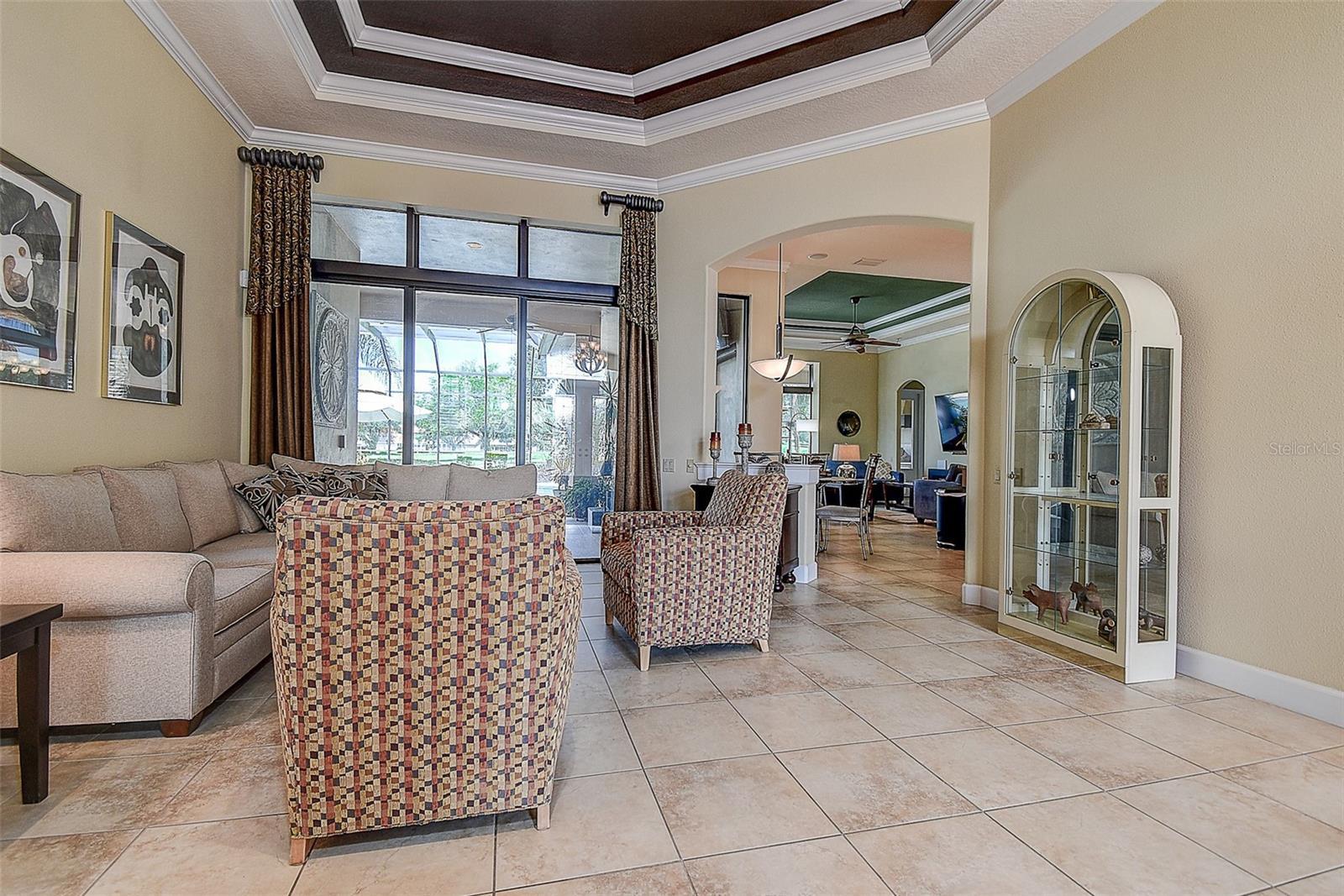 Under contract-accepting backup offers. ** Seller is ill ** Seller's loss is YOUR GAIN! ** NEEDS FAST SALE! One of the BEST GOLF COURSE LOTS IN LAKE JOVITA! BREATHTAKING GOLF COURSE VIEWS on Lake Jovita’s South Course, rated #16 and one of Florida’s “must-play” courses! STUNNING DESIGNER POCKET SLIDERS open the home to views of velvety-smooth greens. 13’ soaring DOUBLE TRAY CEILINGS trimmed with crown molding in the main rooms set the tone for luxurious Florida living. Designed and built by award winning Arthur Rutenberg Homes. Guard-Gated Community with Resort style amenities! CLOSE TO TAMPA WITHOUT THE TRAFFIC! Welcome to the rolling hills of Lake Jovita, a Golf and Country Club community. Discerning buyers will appreciate this well-appointed home situated on a ½ acre lot, with 4 bedrooms PLUS A DEDICATED HOME OFFICE/DEN, 3 baths, 3 car garage and Swimming Pool. As you enter you’ll be struck by the sweeping open floor plan and panoramic golf course views of the 17th fairway. This home was built for entertaining. The open-concept floorplan seamlessly connects indoor and outdoor living. The spacious kitchen offers an abundance of solid wood cabinetry and granite countertops, breakfast bar, generous center island for meal prep, coffee bar and wine cabinet. It opens to the family room, which has STUNNING disappearing corner sliding glass doors and TRANSOM WINDOWS providing an abundance of natural light. Open up the FULLY POCKETING SLIDING DOORS and bring the outdoors in. Take the party outdoors to a breathtaking backyard oasis, where heated pool with spa create a serene escape. Enjoy al fresco dining at the outdoor kitchen or unwind in one of two covered areas with TV’s overlooking the golf course. The primary suite, secluded on one side of the home, offers pool access. The spa-like ensuite bathroom features his/hers walk in closets, dual sinks, vanity seating, soaking tub, and walk-in shower. Adjacent to the primary suite, the HOME OFFICE WITH distinctive GLASS door and windows adds style and elegance. Bedrooms 2 and 3 located on the opposite side of the home share a guest bath. Bedroom 4 boasts it’s own bathroom (pool bath) and a separate entrance, an ideal setup for visitors, in-laws, and multi-generational living! Other custom features include one of a kind, handmade front glass doors, Plantation Shutters, 3M security/tinted glass on all windows and sliders, butler's pantry. The 3 car garage allows ample space for both cars and golf cart and a long, paver driveway offers extended parking . And an irrigation well keeps the lawn and landscaping lush, without the huge water bill. Lake Jovita’s South Course was designed by PGA Tour star Tom Lehman, and boasts the largest elevation change of any hole in Florida (hole #11). The course features tight fairways lined with majestic oak trees and many natural water hazards. Due to its challenging play and natural beauty, it has hosted The PGA Tour Qualifying School since 2000 and is a US Open and US Women's Open qualifying site. LAKE JOVITA is a resort-style community with a 24-hour manned gate and low HOA fees, a playground, park, har-tru tennis courts, pickleball courts, community pool, walking trails & dog park. Optional membership packages include access to 2 world-class 18-hole golf courses, Junior Olympic-sized pool, fitness center, clubhouse, restaurant, social clubs! This is refined Florida living in one of Tampa’s most desirable communities. Located just 5 miles from I-75, with easy access to 2 airports.
