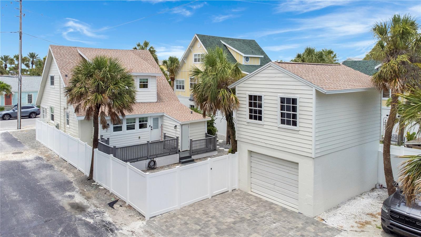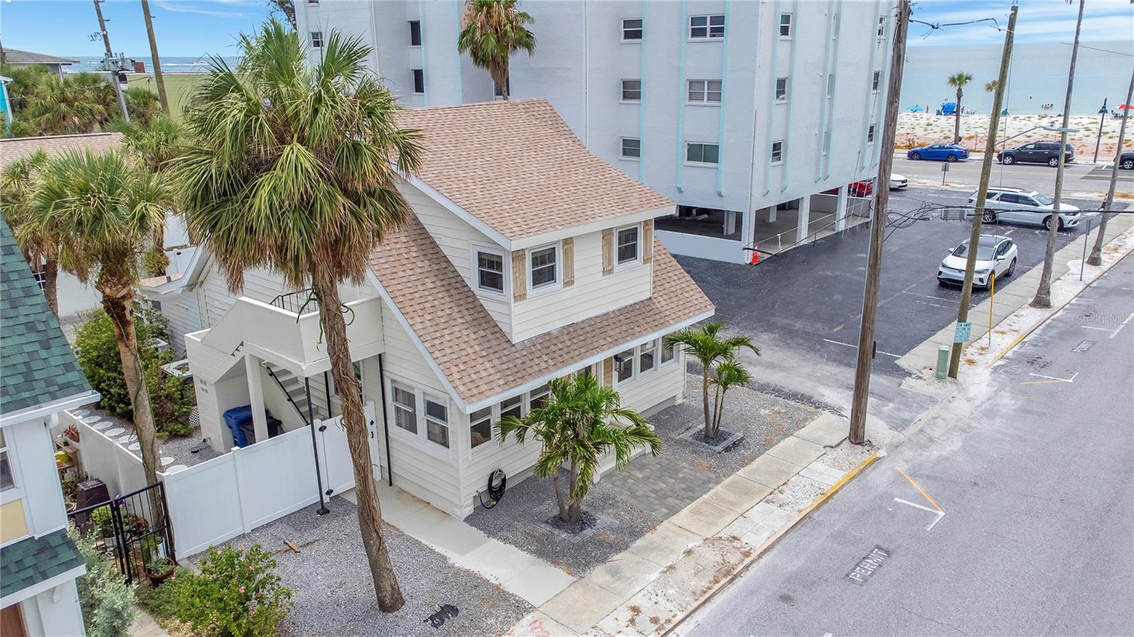 Discover a rare opportunity to own a piece of paradise in Pass-a-Grille Historic District, one of Florida's most coveted and historic beach communities. This meticulously updated 1910 furnished bungalow, perched on a spacious corner lot, offers beautiful Gulf views and an unparalleled coastal lifestyle. Adding to its incredible value and versatility is a separate unfinished guest house over the garage, presenting a fantastic opportunity for an in-law suite, rental income, or additional flexible living space. Step inside and be greeted by the warm elegance of 9-inch wide French Oak flooring that extends throughout the bright and airy interiors. The heart of this home is the custom gourmet kitchen, a true entertainer's delight. It features Shaker-style cabinetry with soft-close drawers, pristine quartz countertops, and top-of-the-line Cafe appliances. An oversized island, ideal for entertaining, anchors the kitchen, while the farmhouse sink is perfectly positioned to capture dazzling emerald water views, transforming every meal into a luxurious experience. This charming residence boasts four generous bedrooms plus a versatile loft, and two full bathrooms. The upstairs sanctuary includes three bedrooms, a full bath, and a loft space crowned with a cathedral ceiling, offering a private retreat. Significant enhancements elevate this property to new heights of luxury and convenience. A new roof installed in June 2025, newer water heater, vinyl fence, pavers, and more contributing to its exquisite curb appeal and low-maintenance charm. Your Pass-a-Grille Lifestyle Awaits - Imagine waking up to the soothing sounds of the waves, with the beach less than 200 feet from your doorstep. Spend your days swimming, paddle-boarding, kayaking, or fishing in the warm Gulf waters. Enjoy leisurely walks along the shore, or simply relax in your beach chair, soaking in breathtaking sunsets. The vibrant Pass-a-Grille lifestyle extends beyond your doorstep. Stroll to Historic 8th Avenue for an array of unique shops, acclaimed dining establishments, and lively community events. Bike to the serene Lazarillo Park or visit the iconic Don CeSar Hotel, a local landmark. For a change of pace, a short drive connects you to Downtown St. Pete's bustling cultural scene, offering five-star dining, world-class museums, and exciting entertainment options. Don't miss the rare opportunity to own a truly extraordinary piece of Pass-a-Grille's heritage. This unique beach home, brimming with authentic Florida character and perfectly situated in the historic district, invites you to embrace life as it was always meant to be lived. Schedule your private showing today!