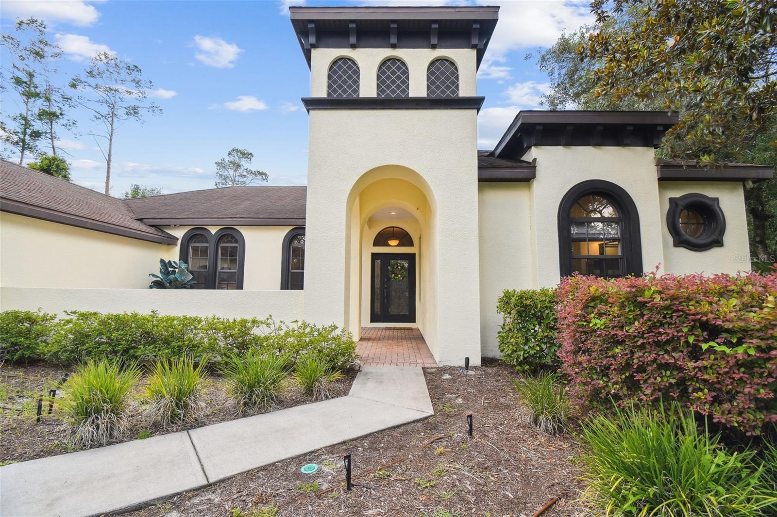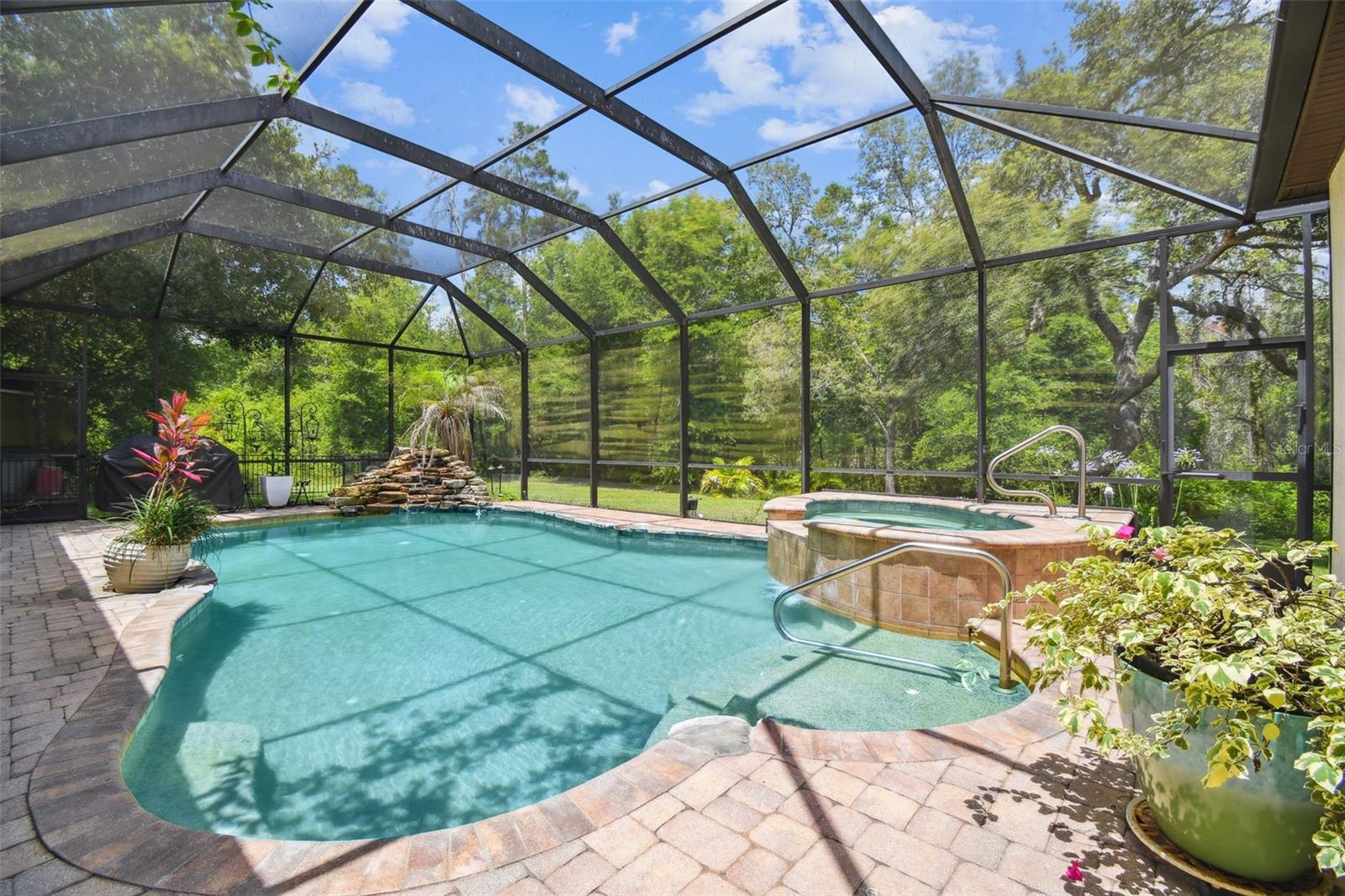 Stunning Custom Estate in Timberwood Acres! Welcome to your dream home nestled on 2 acres of serene woodland in the impressive Timberwood Acres community. This gorgeous custom-built estate features 4 bedrooms, 3 full bathrooms, a den/office, a spacious media room, and a 3-car garage, offering luxury, comfort, and privacy in one exceptional package. Tucked away on a peaceful cul-de-sac with lush landscaping and a courtyard entry, this home boasts a sprawling split floorplan perfect for both everyday living and entertaining. Step into the front of the home to find elegant formal living and dining rooms, a private den/office, and the expansive Owner’s Suite. Throughout the home, you'll find beautiful hardwood flooring, new interior paint, whole house sound system, and sliding glass doors along the back that provide constant views of the stunning pool and backyard oasis. The Owner’s Suite is a true retreat, offering two walk-in closets and a recently remodeled spa-like ensuite complete with quartz countertops, a garden tub, and luxurious finishes—perfect for unwinding after a long day. At the heart of the home is a bright and airy remodeled kitchen, featuring quartz countertops, premium stainless steel appliances, decorative tile backsplash, and elegant pendant lighting. The kitchen-family room combination creates a seamless space for entertaining and gathering. Just off the kitchen are two additional spacious bedrooms and a full bath, ideal for family or guests. At the rear of the home, you'll find another bedroom, a pool bath, and a massive media room—perfect for movie nights, game days, or hosting friends. Step outside and experience your own private resort-style oasis. The heated saltwater pool and spa with rock waterfall invite relaxation, while the outdoor kitchen and expansive lanai provide the perfect backdrop for entertaining—all set against the tranquil views of the surrounding wooded property. The oversized 3-car garage is designed with custom flooring and built-in shelving, offering excellent storage and space for your grown-up toys. This exceptional home offers luxurious estate living with unmatched privacy, all just minutes from the Suncoast Parkway, SR-52, and convenient access to Tampa, local shopping, dining, golf courses, parks, and Florida’s renowned Gulf Coast beaches. If you're looking for peaceful, upscale living without sacrificing convenience—this home has it all. Schedule your private showing today!