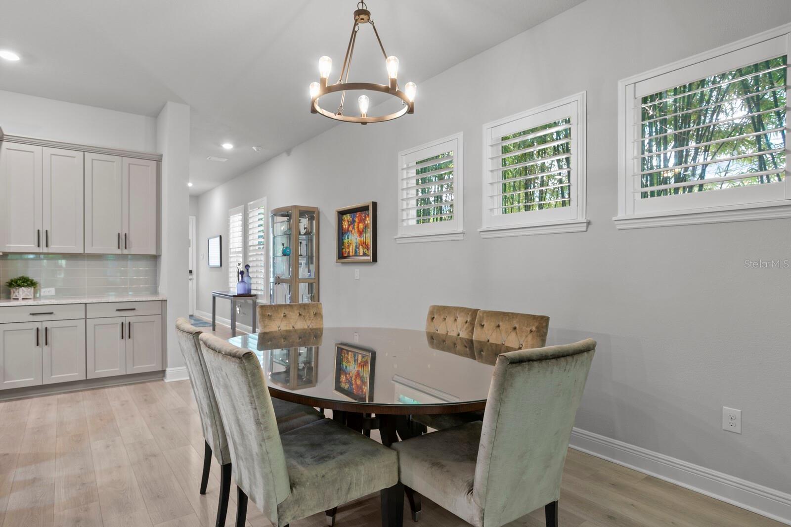 - Ceiling Fans(s), Coffered Ceiling(s), Eat-in Kitchen, High Ceilings, Kitchen/Family Room Combo, Open Floorplan, PrimaryBedroom Upstairs, Solid Wood Cabinets, Stone Counters, Tray Ceiling(s), Walk-In Closet(s), Window Treatments