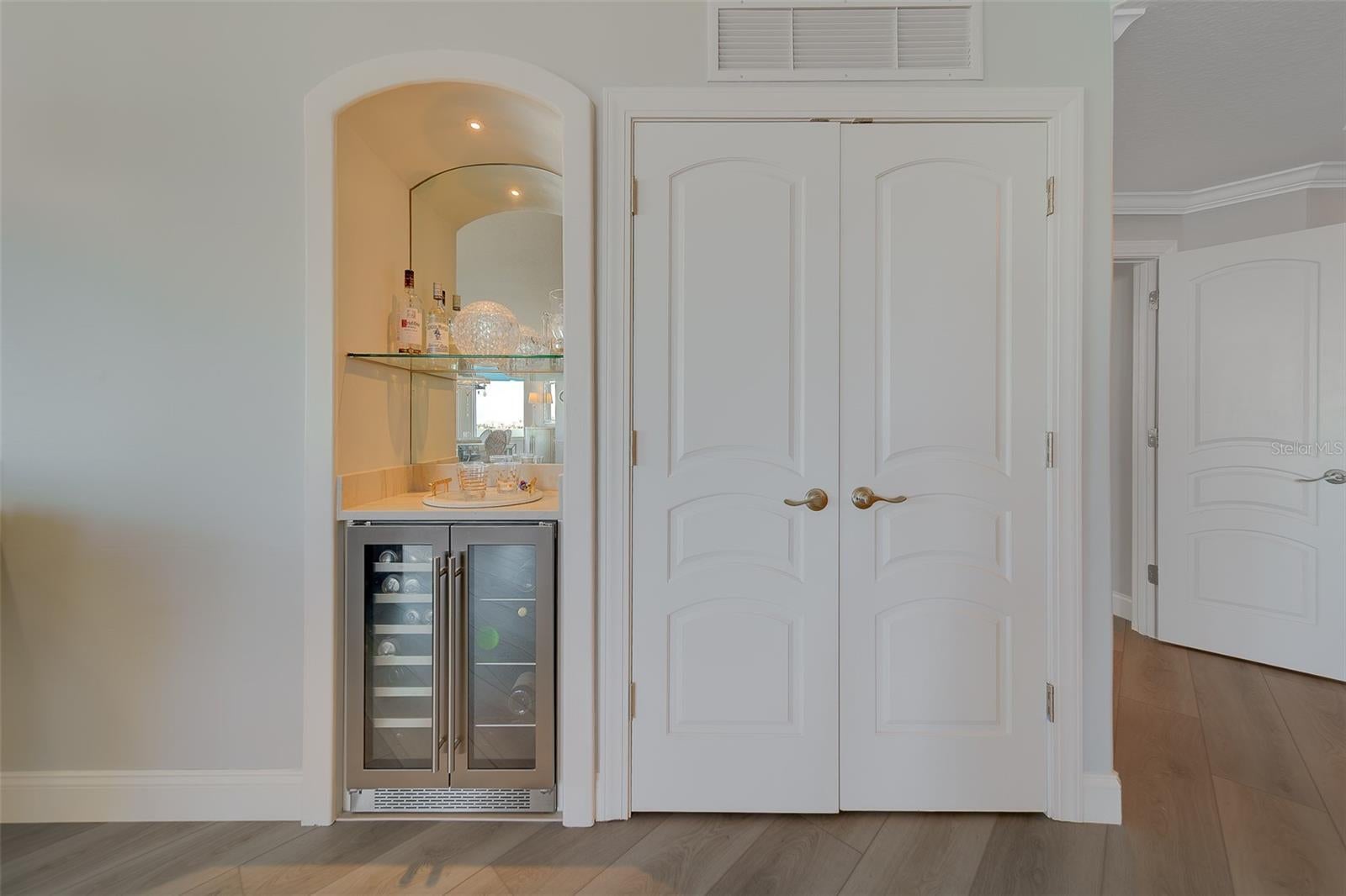 - Dishwasher, Disposal, Dryer, Electric Water Heater, Exhaust Fan, Ice Maker, Microwave, Range, Refrigerator, Washer, Water Filtration System, Whole House R.O. System, Wine Refrigerator
