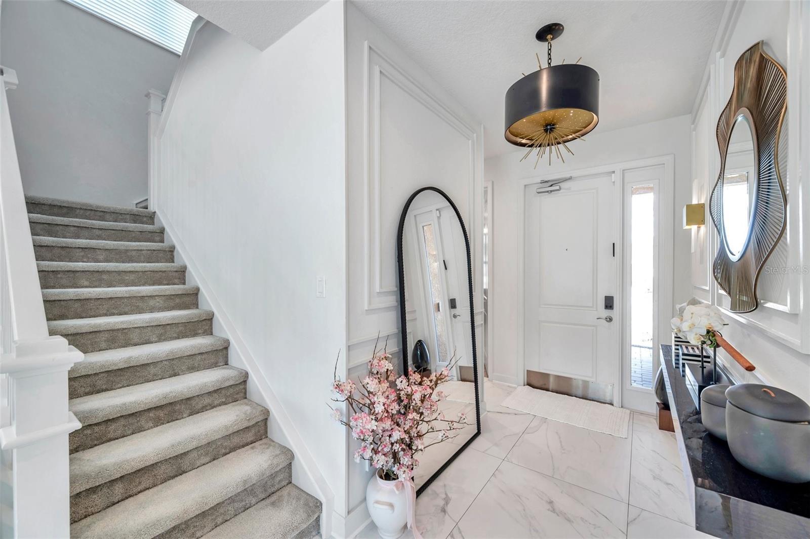 Welcome to the former MODEL HOME by GL HOMES— a beautifully appointed 3-bedroom, 3-bathroom home plus an OFFICE and a FLEX ROOM located in the highly desirable Winding Ridge community with NO CDD fees. Boasting an open split floor plan with nearly 2,600 sq ft of living space, this tastefully designed move-in ready home features a modern kitchen with quartz countertops and stainless steel appliances, a spacious primary suite with dual vanities and soaking tub, and a versatile bonus/flex room. The owners upgraded the NEW TILE throughout the first floor and renovated the bathroom to the luxury spa like escapes. All light fixtures in the house have been upgraded as well. The outside area is extremely private on the oversized lot backing to the wood preserves. Indulge in LUXURY at the Resort-Style Clubhouse, where every detail enhances your lifestyle. Outdoor amenities feature a covered patio overlooking the pool, a wet play activity center, Pickleball and Tennis courts, a full basketball court, a shaded playground, an open playfield, and a party pavilion. Indoors, discover a social hall, catering kitchen, indoor sports complex, game room, and a multi-purpose room for fitness classes, all complemented by a fully equipped fitness center. Enhancing your experience is a Full-Time Party Coordinator who organizes club activities and events. The Winding Ridge community offers a GATED, maintenance-free lifestyle with the HOA FEE covering LAWN MAINTENANCE, landscape maintenance, fertilization, mulching, and exterior pest control. Your new home is conveniently located just minutes from Wesley Chapel’s Top-Rated Schools, near I75 on SR56, Wire-Grass Mall, Tampa Premium Outlets, Hospitals, Restaurants, and more. This is your gateway to a vibrant and convenient lifestyle. With over $80,000 in UPGRADES, this home is a true stunner. Come to see it today!