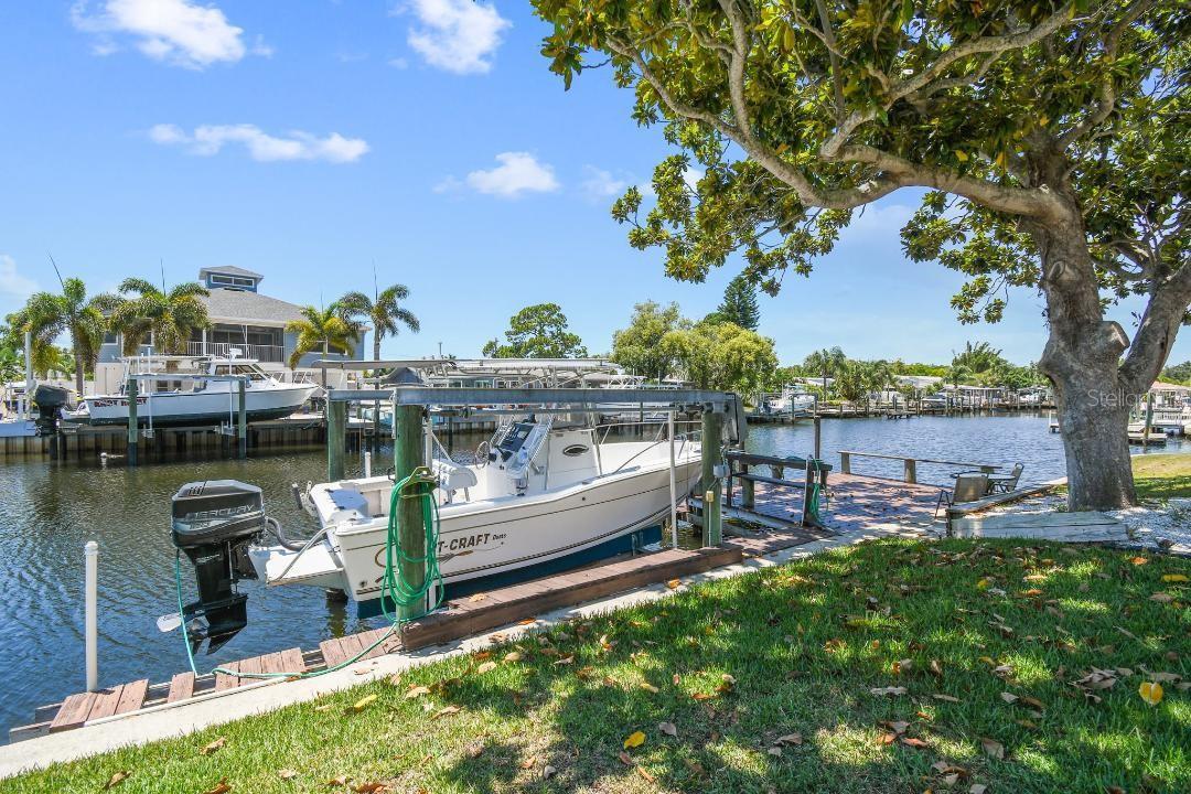 Location, Location, Location! This is your opportunity to customize your dream home in Palm Harbor! This premiere oversized lot on the Westwinds Circle cul de sac in Baywood Village features one and a half parcels with approximately 220 feet of seawall. Enjoy easy deep-water access to the Gulf with no bridges or obstructions....only a 10 min boat ride to the open Gulf waters! The 10,000 lb boat lift is currently working and has recently been refurbished. This waterfront parcel is being sold as-is for the land value but has potential to be renovated under the FEMA 50% rule as a single-story home. Please Note: Hurricane Helene was the first time since this home was built in 1963 that the home has had flood damage. In the family friendly, boat loving community of Baywood Village, you are also only minutes from the Pinellas Trail, Fred Howard Park Beach, Sunset Beach, Honeymoon Island, and Innisbrook Golf Resort as well as right in the middle between both downtown areas of Tarpon Springs & Palm Harbor....so don't miss out on viewing this property if you're ready to start living the Salt Life...Bring your Vision & Offer!