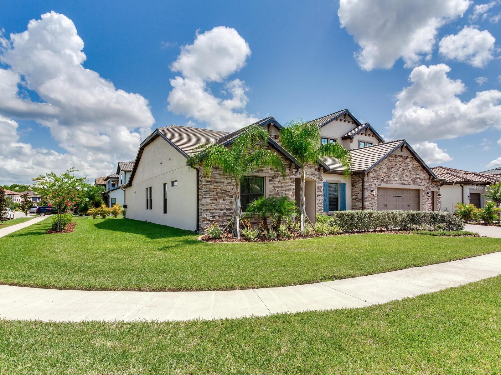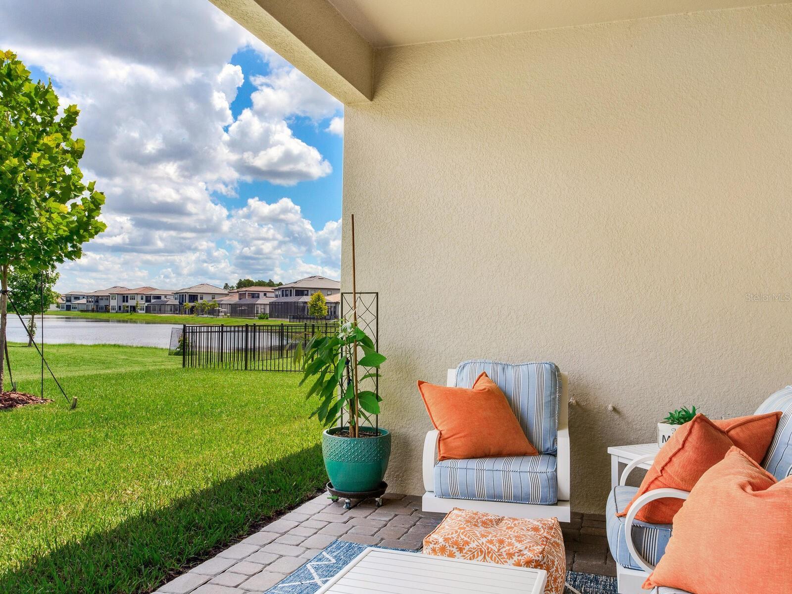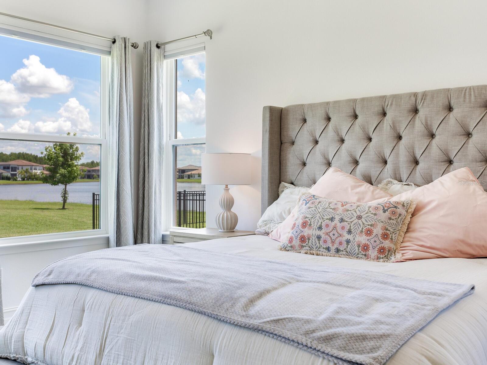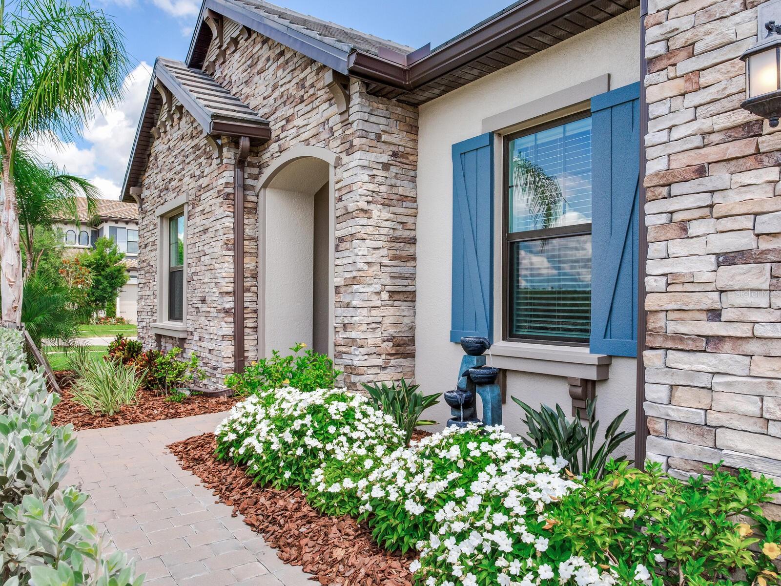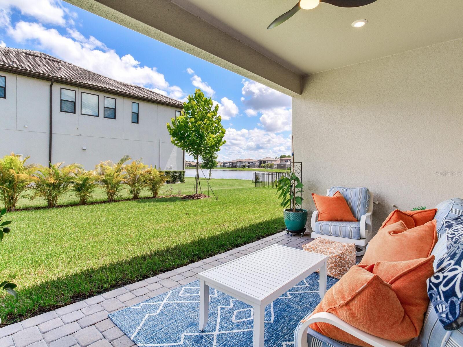 Welcome to refined Florida living at 6057 Marsh Trail Drive, located within the exclusive, gated community of Tarramor Estates in Odessa. Built in 2023, this beautifully upgraded modified Amberly floor plan offers 5 bedrooms, 4 baths, and 3,615 square feet of thoughtfully designed living space on a generous .28-acre lakefront lot—providing both privacy and room to dream. From the moment you arrive, the home makes a statement. Barrel tile roofing, full gutters, the California Color Package, coach lighting, and lush professional landscaping create striking curb appeal, while the full-lite obscure glass front door sets a warm, modern tone. Inside, 10-foot ceilings, wood-look tile flooring, and an open-concept layout deliver a light, airy feel perfect for everyday living and entertaining. The heart of the home is the designer kitchen, showcasing Level 4 Calcutta Gold Silestone countertops, GE stainless steel appliances, a 36” gas cooktop, built-in wall oven and microwave, 42” Alpine-painted cabinetry with crown molding, soft-close drawers, custom pull-outs, a farmhouse apron-front sink, and a full-height custom backsplash. An oversized island with abundant seating anchors the space, while the walk-in pantry with ventilated wood shelving is a chef’s dream. A formal dining room offers elegant entertaining, and expansive sliders from the main living area lead to a covered patio with serene water views. The side yard offers ample room for a future pool, outdoor kitchen, and play space, making it ideal for creating your own private outdoor oasis. Seller is offering a concession toward a side-yard fence, adding flexibility for pets, play, or additional privacy. The flexible floor plan includes a dedicated flex space—perfect for a home office, gym, or playroom—enhanced by frosted glass solid-core barn doors for style and privacy. The owner’s suite is a true retreat, featuring a tray ceiling, dual custom walk-in closets, and a spa-inspired bath with an oversized soaking tub, a semi-frameless glass shower with dual shower heads and rain feature, and dual vanities with Level 4 Silestone countertops. A split-bedroom design ensures comfort and privacy: two bedrooms share a Jack-and-Jill bath, another enjoys its own private bath, and upstairs you’ll find a versatile fifth bedroom with full bath and designer walk-in closet—ideal as a guest suite, media room, or second home office. Additional highlights include a 3-car garage with epoxy floors, laundry room with sink and cabinetry, whole-home LED recessed lighting, 15 SEER Carrier HVAC, tankless water heater, Low-E dual-pane windows, CAT 5 and USB outlets, Sensi programmable thermostats, Ring doorbell, MyQ smart garage technology, and washer and dryer included. Tarramor residents enjoy resort-style amenities, including a heated pool, state-of-the-art fitness center, and elegant clubhouse. Zoned for A-rated schools—Hammond Elementary, Martinez Middle, and Steinbrenner High—with convenient access to shopping, dining, golf, beaches, Tampa International Airport, and downtown Tampa. Located in Flood Zone X (no flood insurance required) with no CDD fees, this move-in-ready home delivers luxury, flexibility, and long-term value in one of Odessa’s premier gated communities.