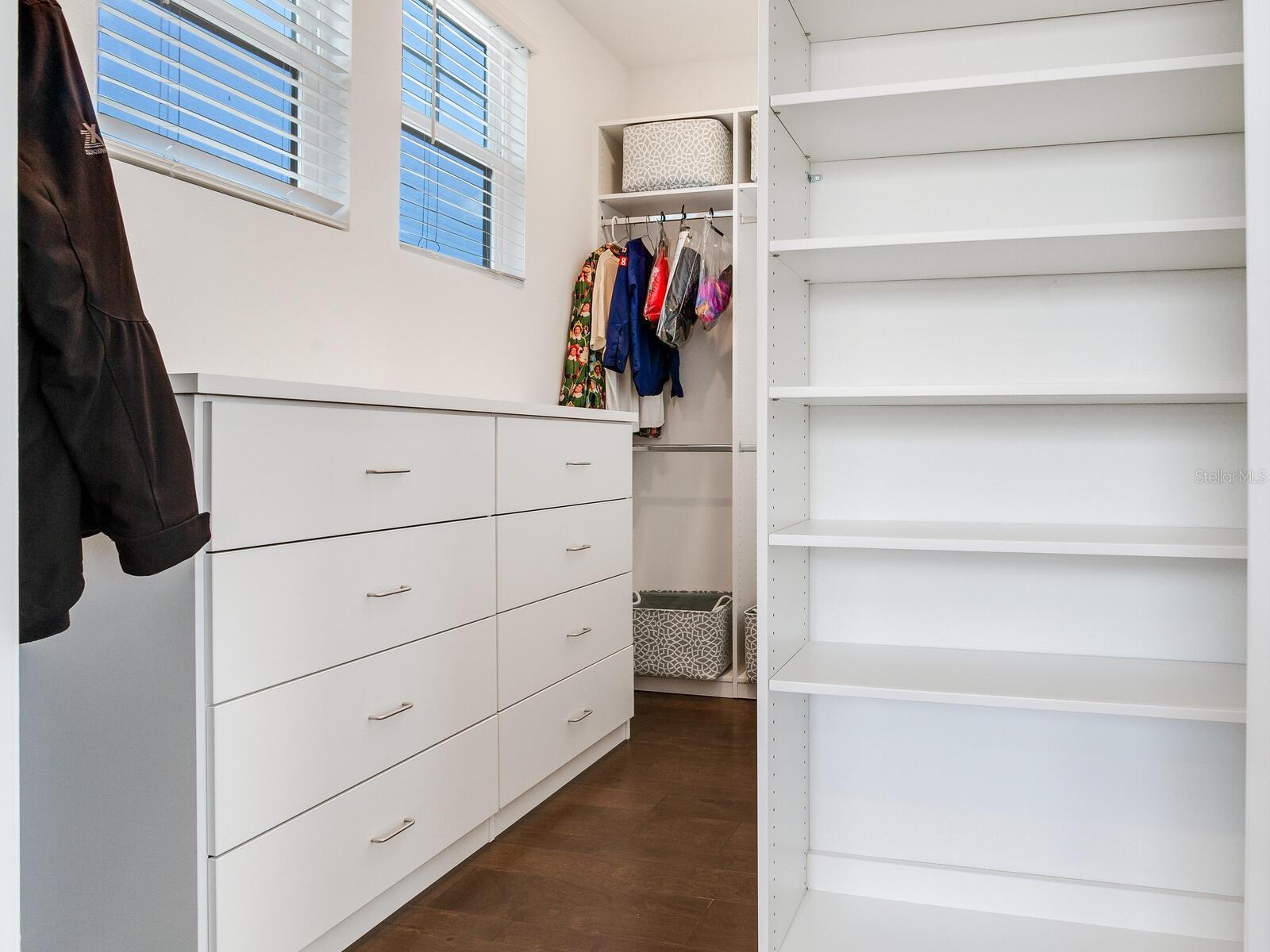 - Accessibility Features, Ceiling Fans(s), Eat-in Kitchen, High Ceilings, Kitchen/Family Room Combo, Open Floorplan, Pest Guard System, Primary Bedroom Main Floor, Smart Home, Solid Surface Counters, Split Bedroom, Stone Counters, Thermostat, Tray Ceiling(s), Walk-In Closet(s), Window Treatments