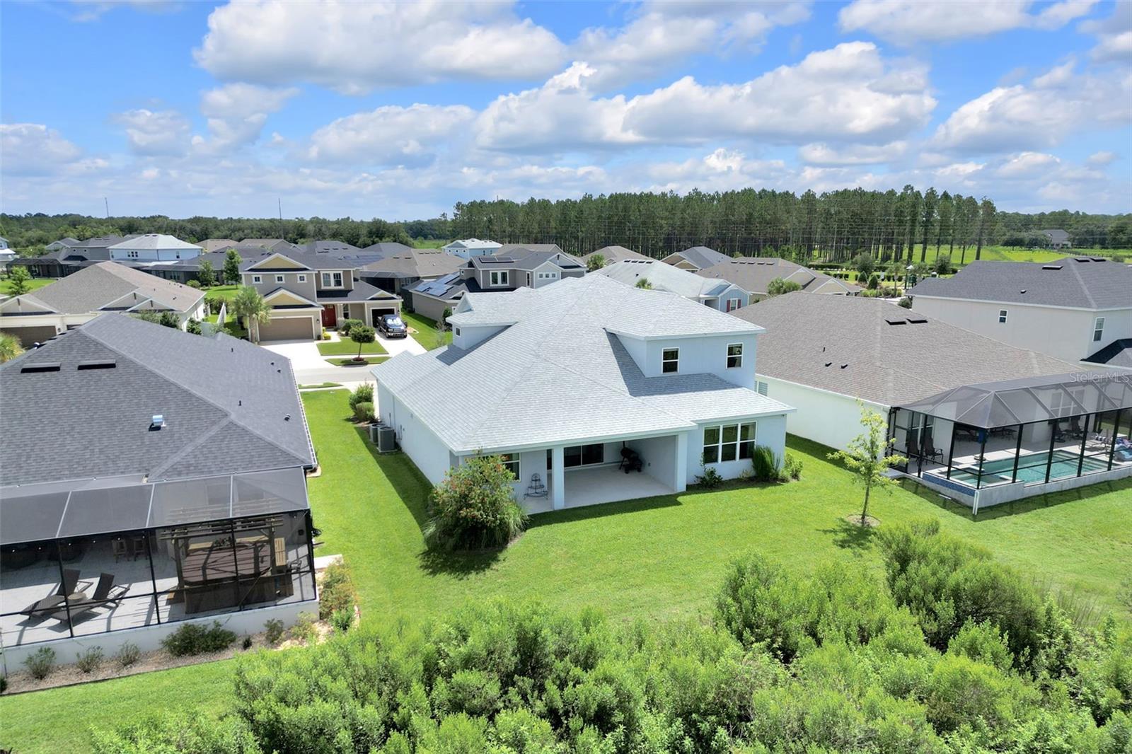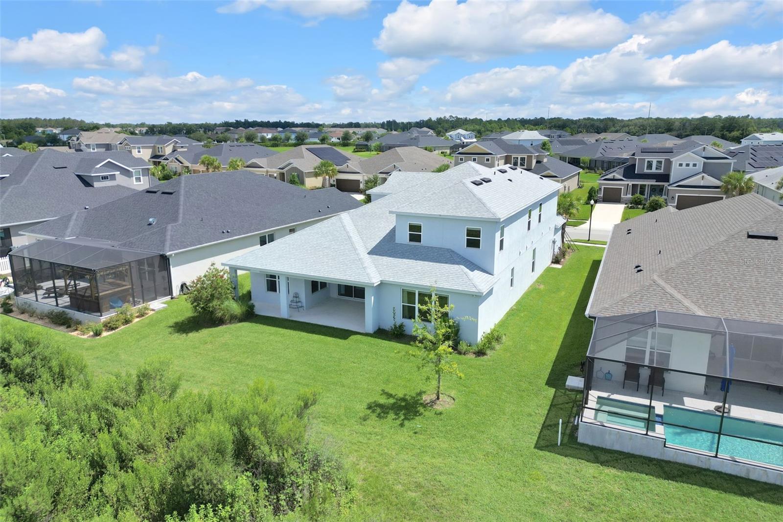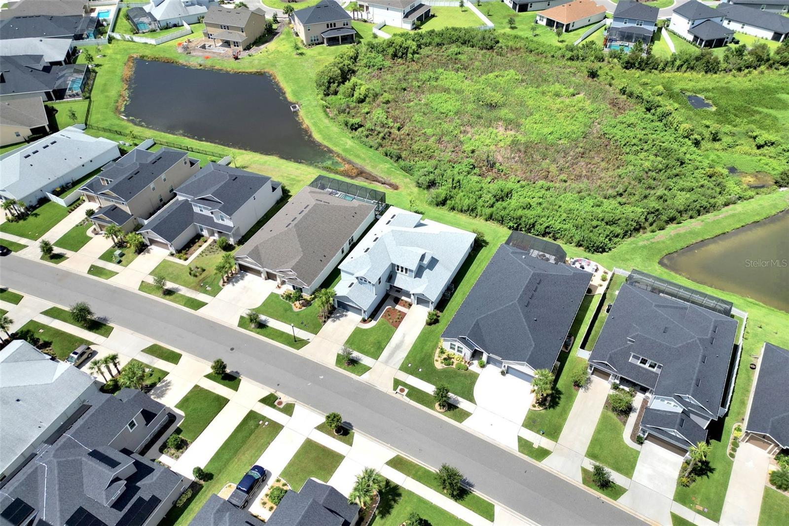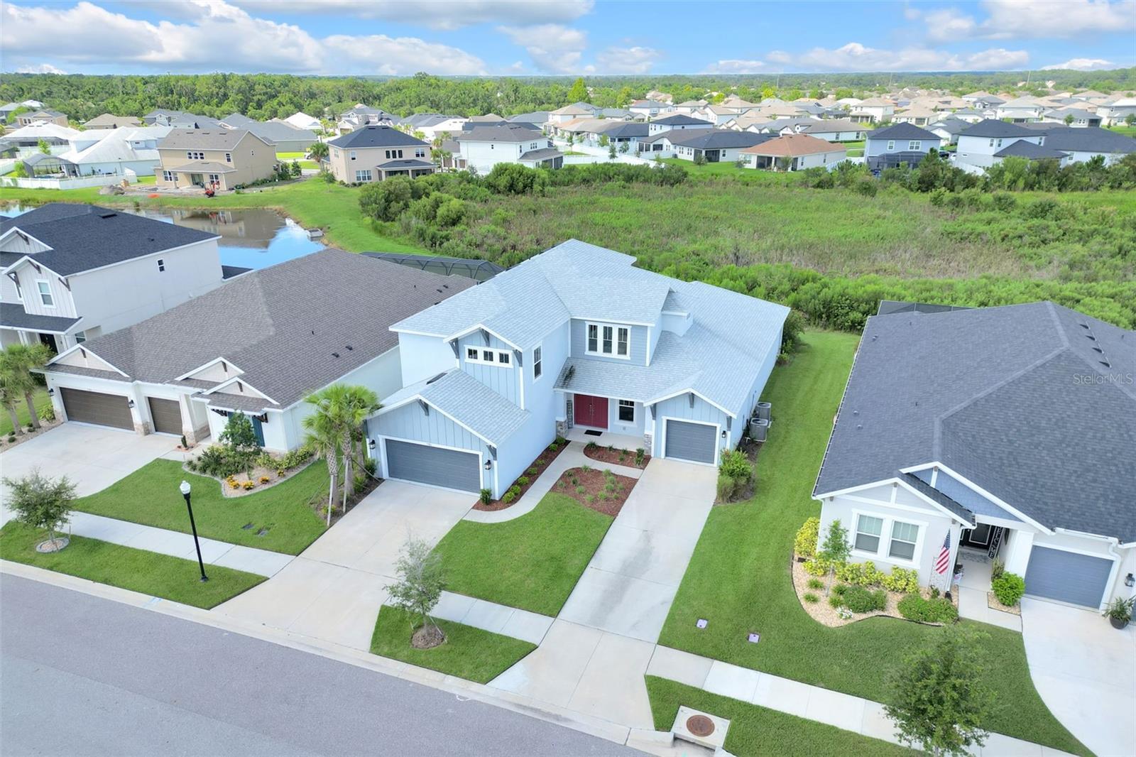 This upgraded 5-bedroom, 4.5-bathroom home offers 3,461 square feet of well-appointed living space and was built in 2023. Located in a sought-after gated community, this move-in ready home is situated on a premium homesite with no rear neighbors and tranquil views of the natural preserve. The open floor plan features a first-floor owner’s suite with tray ceiling, a spa-style walk-in shower, and an extended walk-in closet. The main living area includes luxury vinyl plank flooring, 8-foot interior doors, and elegant tray ceilings in the living room, foyer, and flex/game room. The gourmet kitchen opens to the living space and features a custom built-in wall unit with an electric fireplace, offering a stylish and cozy setting for everyday living and entertaining. Sliding glass doors lead to an extended lanai overlooking the private backyard and preserve. Additional upgrades include a wood staircase with decorative knuckle rails, custom wood blinds throughout, and a theater-style raised platform in the upstairs bonus room. The three-car garage provides ample parking and storage space, including built-in overhead storage in both garage bays. This home is located just minutes from Epperson Lagoon, Publix, shopping centers, dining options, and major commuter routes including I-75 and Highway 301. Ring video doorbell and security cameras are included. Refrigerator, washer, dryer, TV mounts, and home decor do not convey. Schedule your private showing today and experience one of Wesley Chapel’s most beautifully upgraded homes in a desirable gated community.