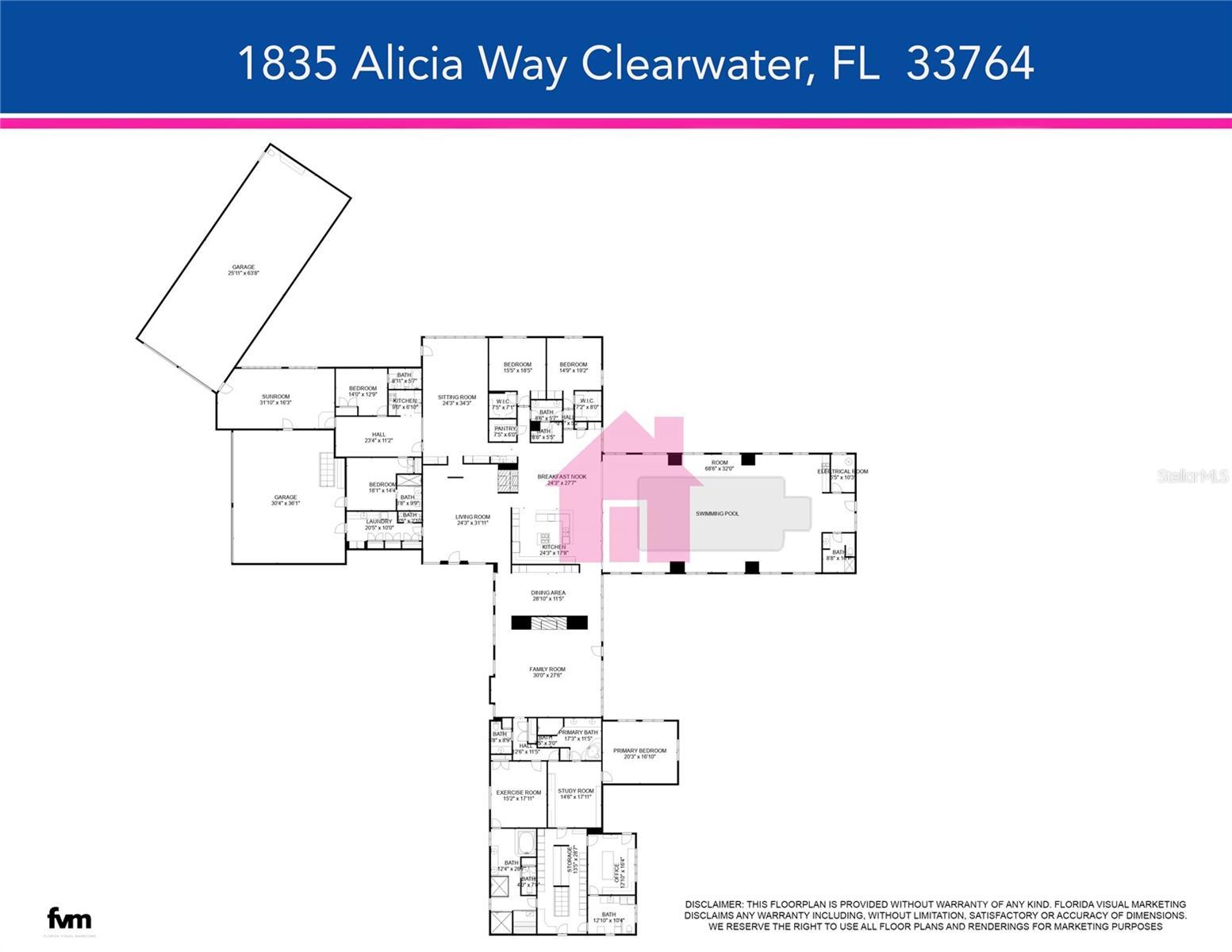 Prepare to be amazed by this extraordinary estate home tucked within Kent Place—one of Clearwater’s most coveted and private neighborhoods, where country-style living meets city convenience. Designed with vision and created with care, this home is a true masterpiece, ideal for car collectors, art lovers, or multigenerational living. Pride of ownership is evident from the moment you arrive, with impeccable landscaping, majestic oaks, and a stately executive presence. Step inside to a gallery-style foyer that sets the tone for the home's artistry and attention to detail. Just beyond, the Key West-inspired room transports you to the southernmost point of Florida with hand-painted murals, skylights, and a wall of floor-to-ceiling windows—a serene escape unlike any other. Entertain in style with a full wet bar leading to a cozy family room with fireplace and cigar cabinet and wine cellar, open to a chef’s kitchen featuring top-of-the-line stainless steel appliances, a center island with vent hood, and access to one of the home's showstoppers: an enclosed indoor pool and spa surrounded by custom murals of Tampa Bay's iconic landmarks. A commercial Wolf grill ensures unforgettable gatherings. The pool can be closed off and separated by glass, accordion sliders. The formal living and dining rooms are a work of art themselves, featuring custom wall murals and grand spaces perfect for hosting intimate dinners or entertaining on a grand scale. The primary suite is a world of its own, complete with a private office featuring a poured concrete safe, a second laundry, a sitting room with custom built-ins, a spa-like ensuite with jetted tub, walk-in shower, double vanities, and an unforgettable custom closet with lighted glass cabinetry, endless storage, and a substantial staircase leading to a cedar-lined closet. Guests will marvel at the castle-like guest suite with soaring ceilings, a whirlpool tub, walk-in shower, steam room, and sauna. Two additional bedrooms with walk-in closets and natural light share a Jack-and-Jill bath. An attached two-bedroom, two-bath apartment with full kitchen and theater room offers the perfect solution for a nanny, in-laws, or long-term guests. For the car enthusiast, a 6 bay garage with four car lifts allows for storing 10-cars. A dream come true, while a separate 3-car garage provides additional storage and access to a large laundry room. Hurricane impact windows with shutters, two home generators that will power a significant portion of the home, storage galore, and custom features around every corner make this a once-in-a-lifetime opportunity to own a truly remarkable Clearwater estate. Ideally located close to shopping, dining, two airports and pristine beaches .Don't miss your chance—homes like this are rare and unforgettable!