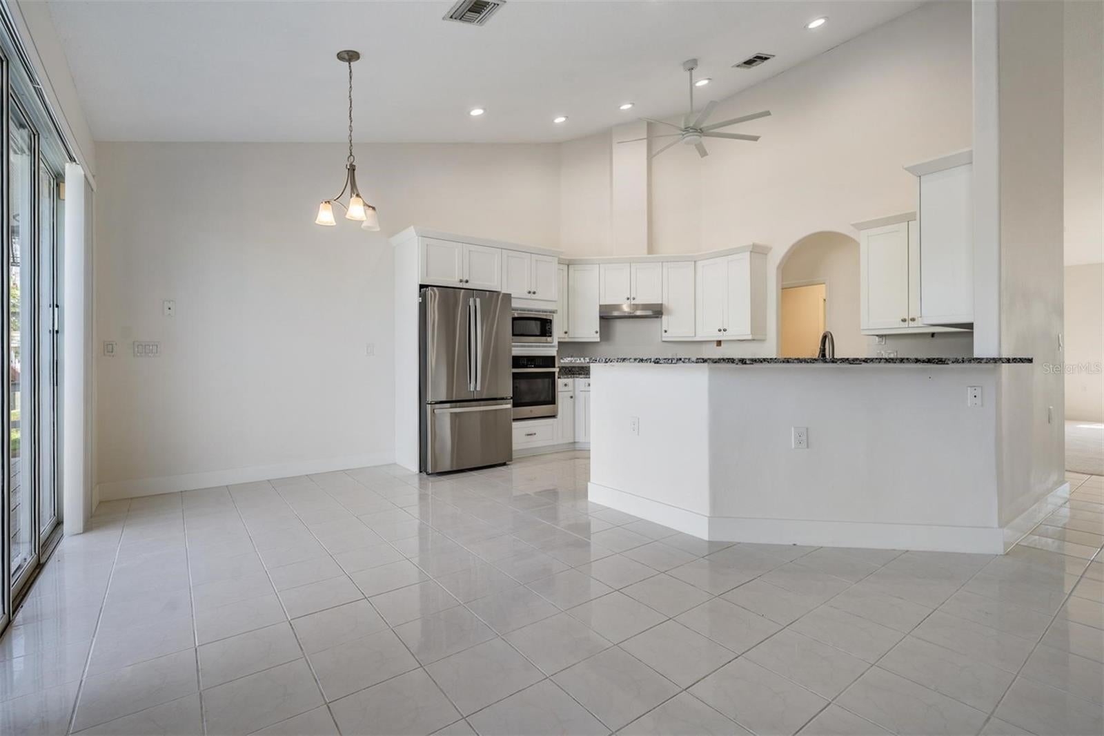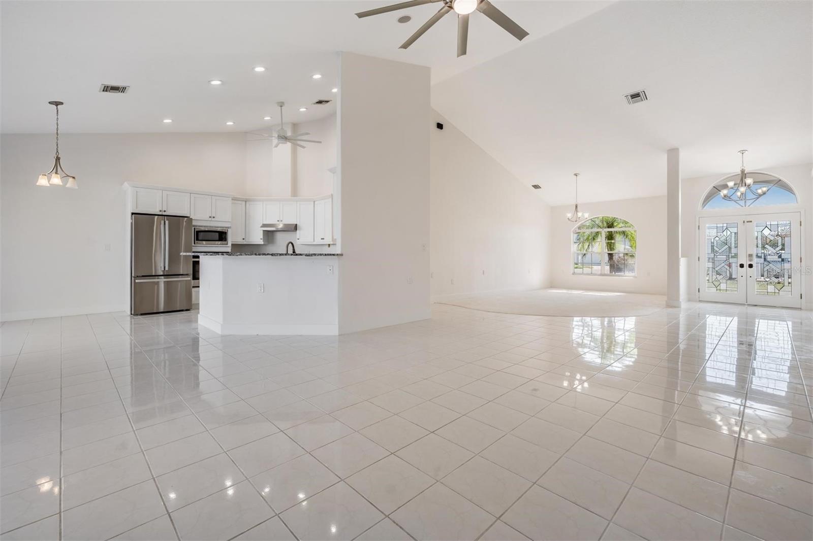 - Cathedral Ceiling(s), Ceiling Fans(s), Eat-in Kitchen, Kitchen/Family Room Combo, Living Room/Dining Room Combo, Open Floorplan, Solid Wood Cabinets, Split Bedroom, Stone Counters, Walk-In Closet(s)