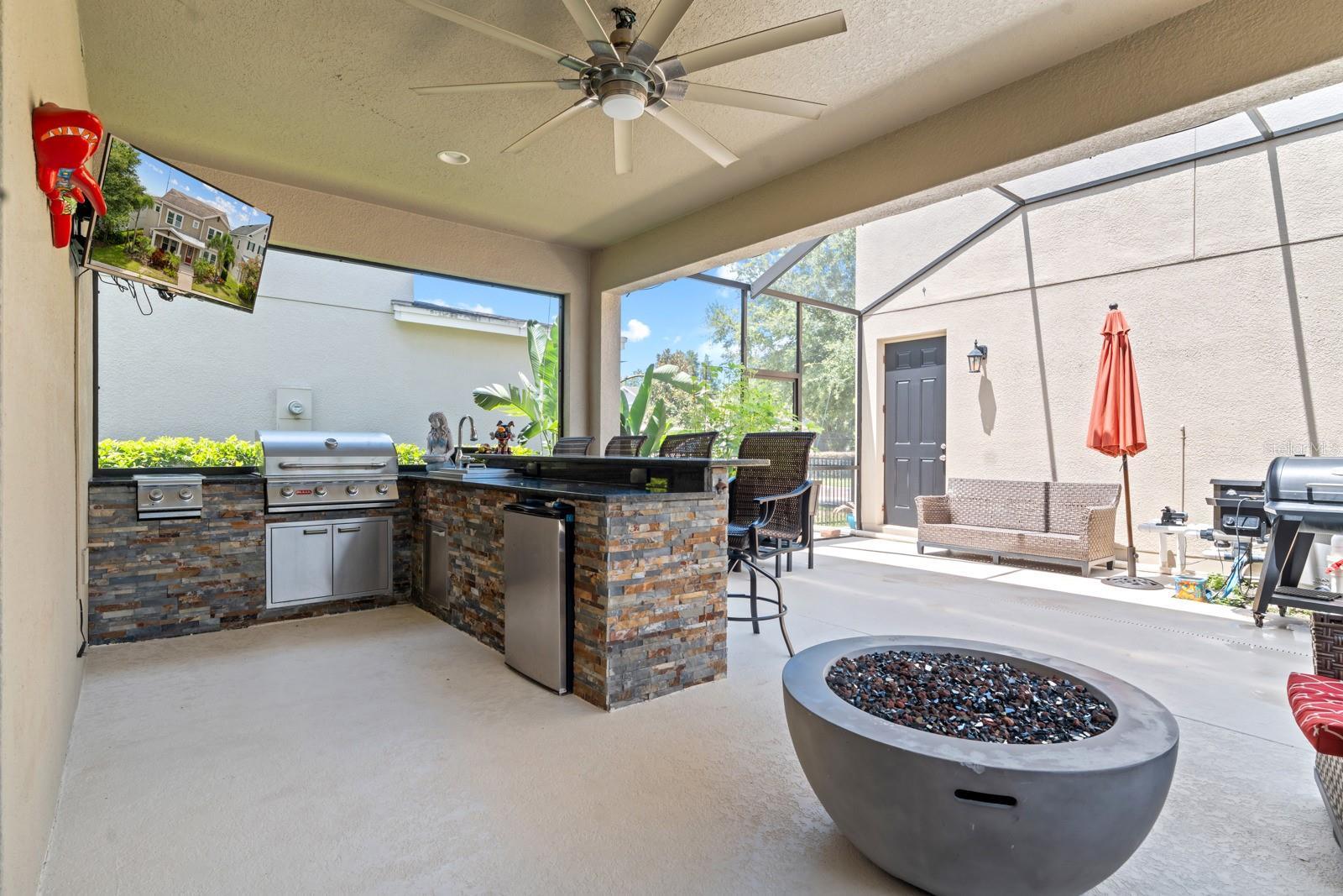 Welcome to 5955 Caldera Ridge Drive, located in the highly desirable FishHawk Ranch West where luxury living meets everyday convenience, and A-rated schools are right in your neighborhood. This property is eligible for a VA Assumable loan at 2.25%! This community offers resort-style amenities pool, playground, and scenic walking trails, perfect for families and an active lifestyle. This stunning property offers five bedrooms and four and a half baths, including a private apartment with its own entrance, full kitchen, laundry hookup, bedroom, and full bath ideal for guests, in-laws, or rental income. Walking up to the front entry, you’re greeted by lush landscaping and a welcoming porch that leads you inside to a bright and spacious living room filled with natural light and modern finishes. The chef’s kitchen is great for entertaining featuring granite countertops, stainless steel appliances, and a large island that flows seamlessly into the open-concept living area. You’ll also love the butler’s pantry and formal dining space. The primary suite offers a relaxing retreat with a spa-like ensuite bathroom, double vanities, and a glass-enclosed shower. You’ll also find a dedicated home office, a large bonus room, and plenty of flexible space to make this home your own. Step outside and you’ll find your very own backyard retreat, complete with a screened-in pool, covered lanai, and a custom outdoor kitchen with a grill, bar, and even a TV- perfect for weekend barbecues and game days.Whether you’re relaxing in the sun or hosting a poolside party, this space is made for memories. This home truly offers room for everyone, including a private guest suite or apartment with its own kitchen, living room, laundry hookup, and a full bedroom/with Murphy-bed and full bath. Ideal for multigenerational living or rental potential. And let’s not forget—you’re in the heart of FishHawk Ranch West, known for its top-rated schools, community events, and access to scenic walking and biking trails. From parks and playgrounds to fitness centers and resort-style pools, this is more than just a home—it’s a lifestyle. If you’re looking for flexibility, space, and the perfect place to grow into, 5955 Caldera Ridge Drive is the one. Schedule your showing today!