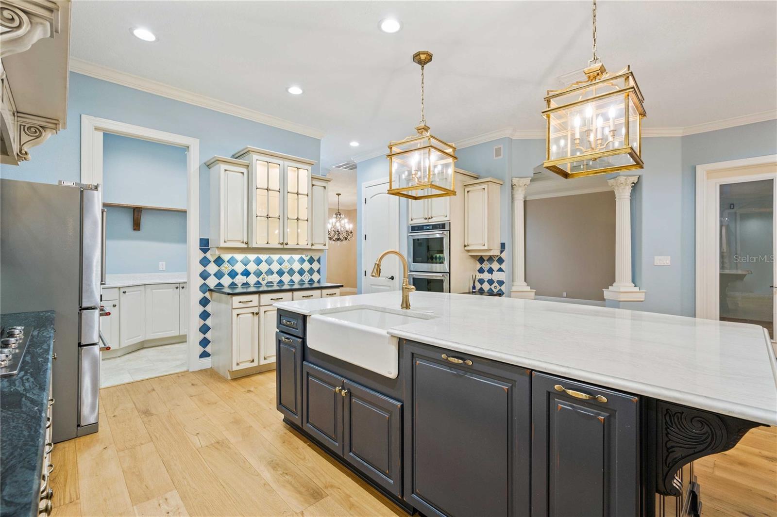 Tucked away on a spacious private lot in the guard gated community of Lake Jovita, this beautifully expanded home offers plenty of room to live, work, and play—with just the right blend of character, comfort, and flexibility. With six roomy bedrooms, a front office with closet and charming brick floors, and loads of adaptable spaces throughout, it’s designed to fit a variety of lifestyles, especially for families who appreciate warmth and privacy. In 2018, the home received a major refresh and addition, bringing in more bedrooms and baths, expanding the custom kitchen and family room, and adding a fabulous bonus space with a wet bar and dishwasher drawer—perfect for movie nights, entertaining, or simply kicking back. When you step through the welcoming double-door entry, and you’ll find a formal living and dining room with a striking tray ceiling, graceful crown molding, and wide-open views of the covered lanai, screen-enclosed pool and hot tub, and peaceful golf course beyond. The neighboring family room mirrors this elevated look with its own tray ceiling, cozy fireplace, and built-in surround sound, adding depth and ambiance to every moment. The heart of the home is the expanded kitchen, thoughtfully equipped with stainless steel KitchenAid appliances, double ovens, a walk-in pantry, soft-close drawers, a second pantry near the wet bar, and a butler’s pantry with cabinetry and a serving station. A large eat-at island anchors the space, while rich wood floors flow through the kitchen and family room, adding warmth and elegance. French doors from both the family room and breakfast nook open to the screened outdoor area, creating a seamless transition for indoor-outdoor living all year round. Two primary suites offer comfort and flexibility and the split plan layout could be perfect for joining or multi-generational families. The main retreat features a remodeled bath with jetted tub, dual walk-in closets, a private workout or flex space, and views of the pool, while the second suite is perfect for guests, teens, or extended family. Other highlights include a study nook with built-in lighting, two fireplaces, plantation shutters throughout, and two laundry rooms, including a primary laundry area off the garage with enough space to function as a convenient mud room. The home also features surround sound throughout with amplifier and control 4 system, enhancing daily life whether you're watching a film, listening to music, or setting the mood for a quiet night in. Continue the activities outside with your basketball goal and spotlight conveniently located in your driveway. The home also includes a home water softener and a WHOLE HOME GENERATOR for your peace of mind and uninterrupted power during unpredictable weather. End your days stepping outside on your lanai to experience the breathtaking sunset views down the 14th fairway of the North Course of Lake Jovita. Take advantage of NO CDD FEES and all Lake Jovita has to offer inclusive of a park with a one-third mile long track with exercise stations, pickleball courts, basketball courts, a playground area, a large open area for any use requiring a field, and two dog parks. The optional clubhouse memberships are also available to enjoy all the additional features of the community including any Club facility, such as the golf course, clubhouse, swimming pool, tennis courts or golf practice facilities. So much to offer in one home you must see it for yourself!