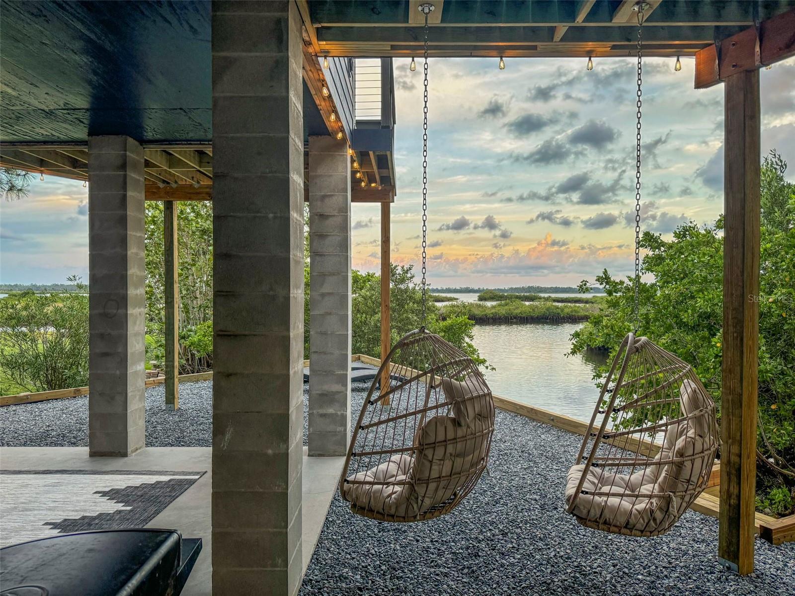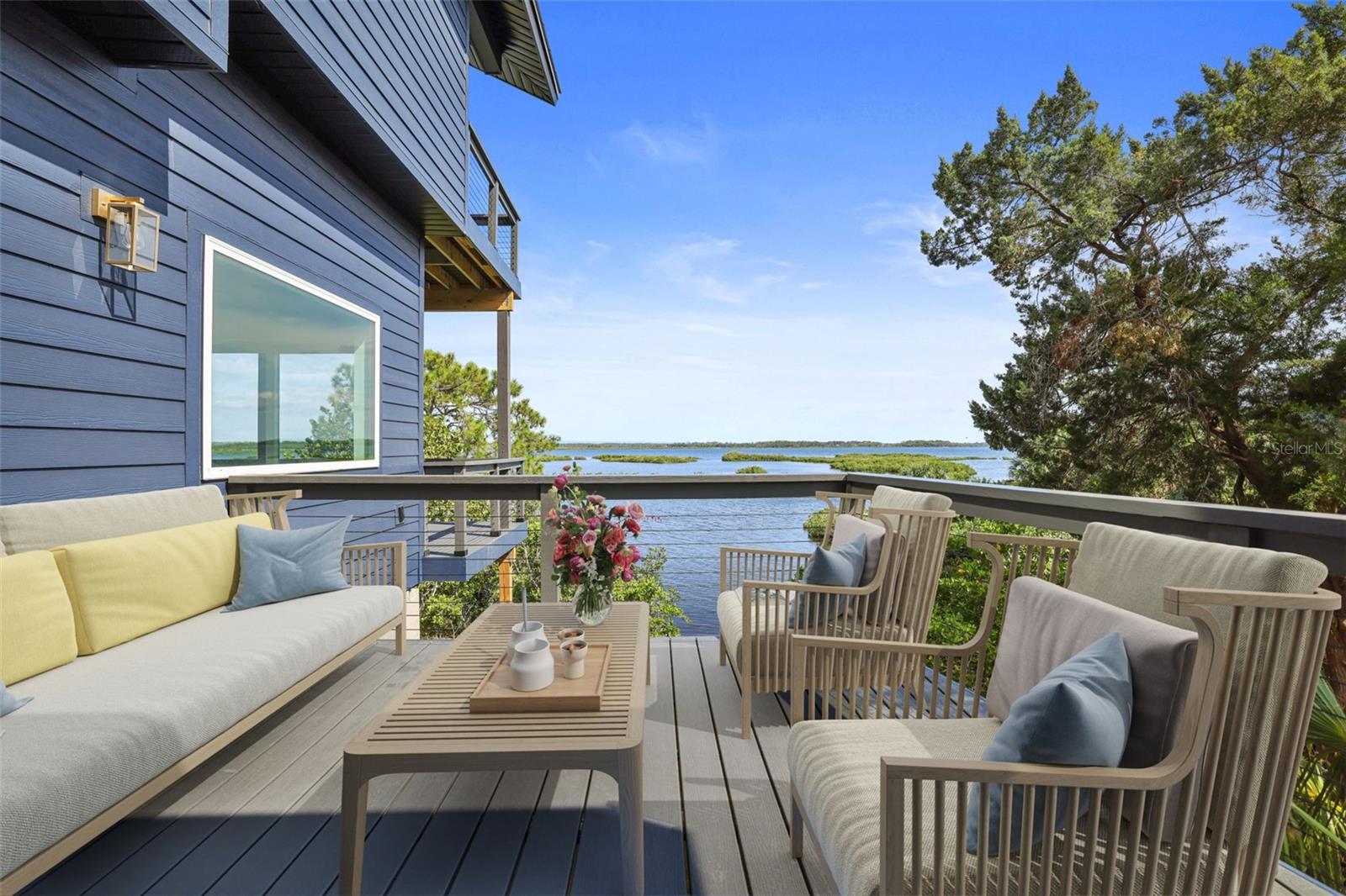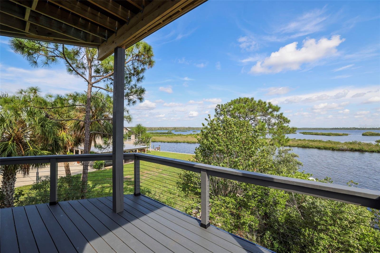 One or more photo(s) has been virtually staged. Welcome to your dream coastal retreat on Pine Island in Weeki Wachee, where every sunrise and sunset paints the sky in vibrant hues and you have water views from every room! This stunning 3-bedroom, 2-bath home has been transformed into a luxurious haven with top-notch coastal modern finishes that blend elegance and comfort. Imagine driving up to your oasis, parking under your elevated home, and relaxing in a charming seating area with serene water views. Your private paradise features a brand-new sea wall with steps leading to your secluded beach and direct gulf access—perfect for your boat or launching a kayak. The home itself is a masterpiece, with new hardie siding painted in deep blue that complements the shimmering waters. Expansive balconies with new composite decking and sleek cable railings offer perfect vantage points for savoring the breathtaking surroundings. Inside, the open-concept design showcases picture windows and wall-to-wall sliders framing spectacular water views. The kitchen is a chef's delight, with custom cabinetry, exotic level 5 natural stone countertops, a custom designer backsplash, and state-of-the-art GE café series appliances. Every detail, from custom light fixtures to the chic bar area, has been thoughtfully crafted to create a functional and beautiful space. Luxurious LVP flooring flows throughout, while smooth level 5 walls enhance the coastal vibe. The guest bathroom, with custom tilework and designer fixtures, exudes sophistication. Each of the two main-floor bedrooms opens onto private balconies overlooking the water. Ascend to the top floor, where the primary suite awaits—an expansive sanctuary with vaulted ceilings and eastern and western views over the Gulf. New hurricane-impact windows and sliders flood the space with natural light. The master bath is a spa-like retreat with a spacious closet, separate tub and shower, and a private balcony overlooking the water, where you can enjoy your morning coffee or soak in the oversized tub with views of the moonlit sky. This one-of-a-kind property offers more than just a home; it’s a lifestyle. Nestled on Pine Island, you'll be surrounded by nature, with dolphins, manatees, and otters as your neighbors. A boat launch for small to mid-size boats is just steps from your door, and Weeki Wachee River State Park is only 5-10 minutes away. With no rental restrictions, this home also offers incredible potential as a luxury vacation rental. Make it your private getaway or an income-generating paradise. Take a leisurely walk or hop on your golf cart to Alfred McKethan Pine Island Park, a 3-acre Gulf-front oasis with a beach, playground, volleyball courts, and a concession stand. Pine Island is a charming community, 6 blocks long and 2 blocks wide, with only about 40 homes. The optional HOA ($40/year) grants access to a private community dock, boat ramp, and beach. Experience the magic of island living—your ultimate Florida escape awaits. Schedule your showing today and make your island dreams come to life!