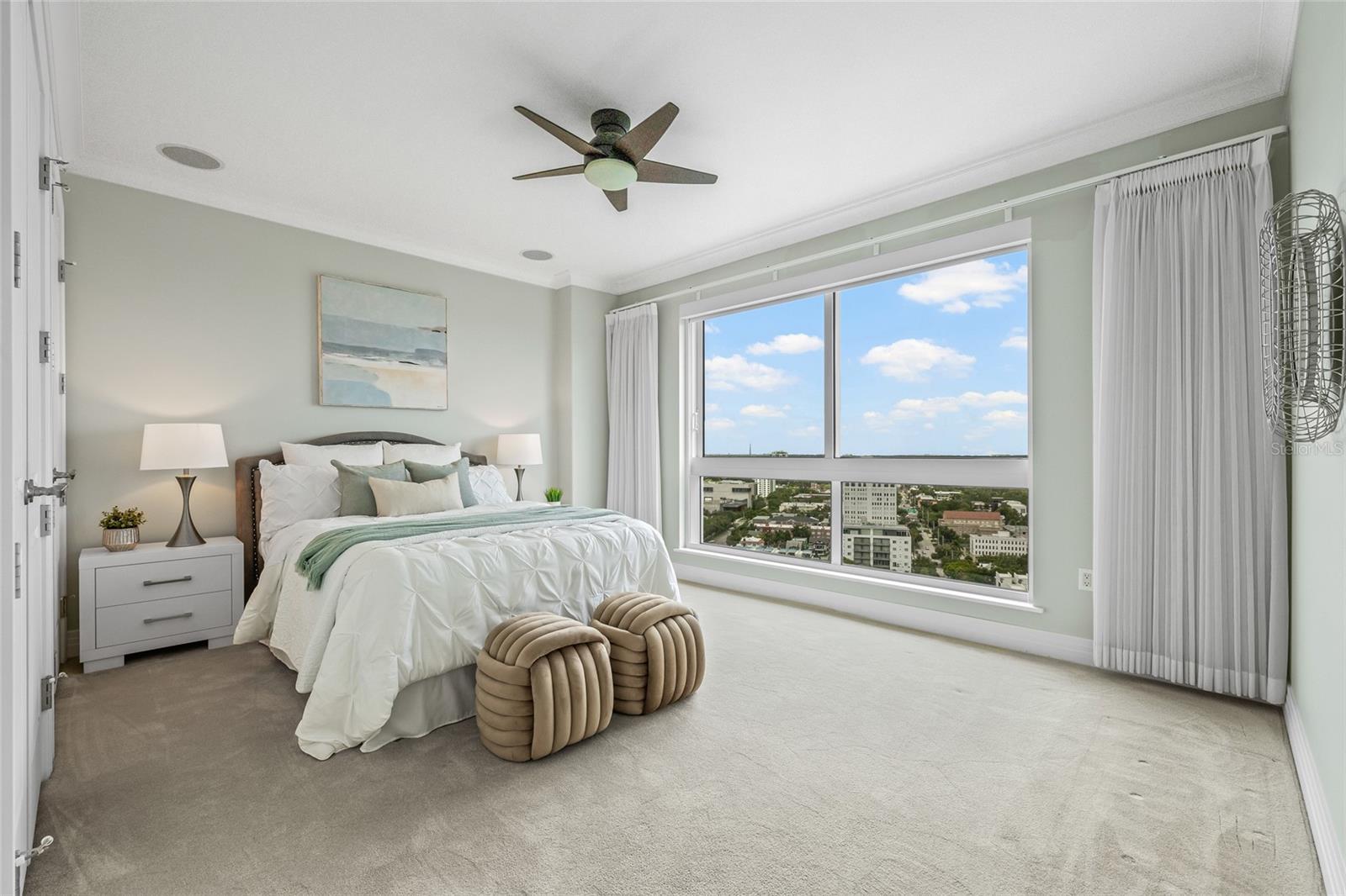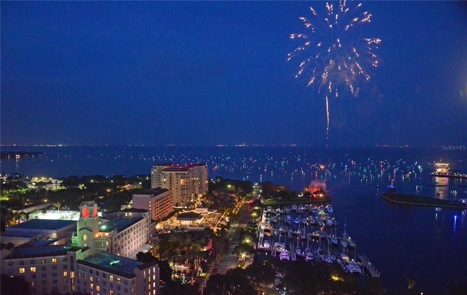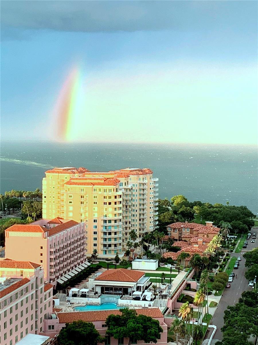 Sweeping views greet you from the moment you step through the private foyer into this 23rd-floor home overlooking the historic Vinoy Hotel! Few buildings in St Petersburg offer the Luxury Level of Amenities of 400 Beach Dr such as 24-hour concierge, expansive amenity deck, updated fitness center with modern equipment and expansive club room. This beautifully designed 2-bedroom, 2-bath residence offers 2,203 sq ft of upscale living with unobstructed views of Tampa Bay. From sunrise to sunset, take in the stunning backdrop of water and beautiful northeast views from nearly every room. Step off the elevator into your private foyer, a special feature compared to typical common hallway buildings. This quiet and secure entrance leads directly into your residence. As you walk into the main living area, you are immediately greeted by wall-to-wall windows, filling the space with natural light and water views. In addition to the two spacious bedrooms, this home features a generously sized office that offers flexibility as a media room or den—great for guests or working from home. The open layout is perfect for both everyday living and entertaining, and features Crestron electric shades and lighting throughout. Step out to the balcony—accessible from both the kitchen and the primary suite—for your morning coffee or an evening glass of wine with views of the illuminated St Pete Pier, Vinoy Marina and seasonal firework displays. This well-maintained residence offers the ease of low-maintenance with a lock-and-go lifestyle—ideal for full-time or seasonal living. The HOA fee covers an impressive array of amenities including 24/7 concierge service, heated lap pool and spa, fitness center to rival any local gym, multiple social rooms, outdoor fireplace for cool nights, immaculately maintained grilling stations, water, sewer, trash and low-cost high-speed internet and cable. Recently the HOA has shown its committed stewardship of the building with 2025 refresh of the outdoor amenities, fresh exterior paint in 2024 and investment in top fitness equipment. The home comes with two side-by-side covered parking spaces with an EV charger in the secured garage. Set in the heart of Downtown St. Pete on iconic Beach Drive, you’re just steps from parks, the Pier, waterfront trails, top-rated restaurants, boutique shopping, and world-class museums. Whether you're enjoying the vibrant downtown energy or relaxing in your private home with a view, this residence offers the best of both worlds. Call to set up your private showing today!