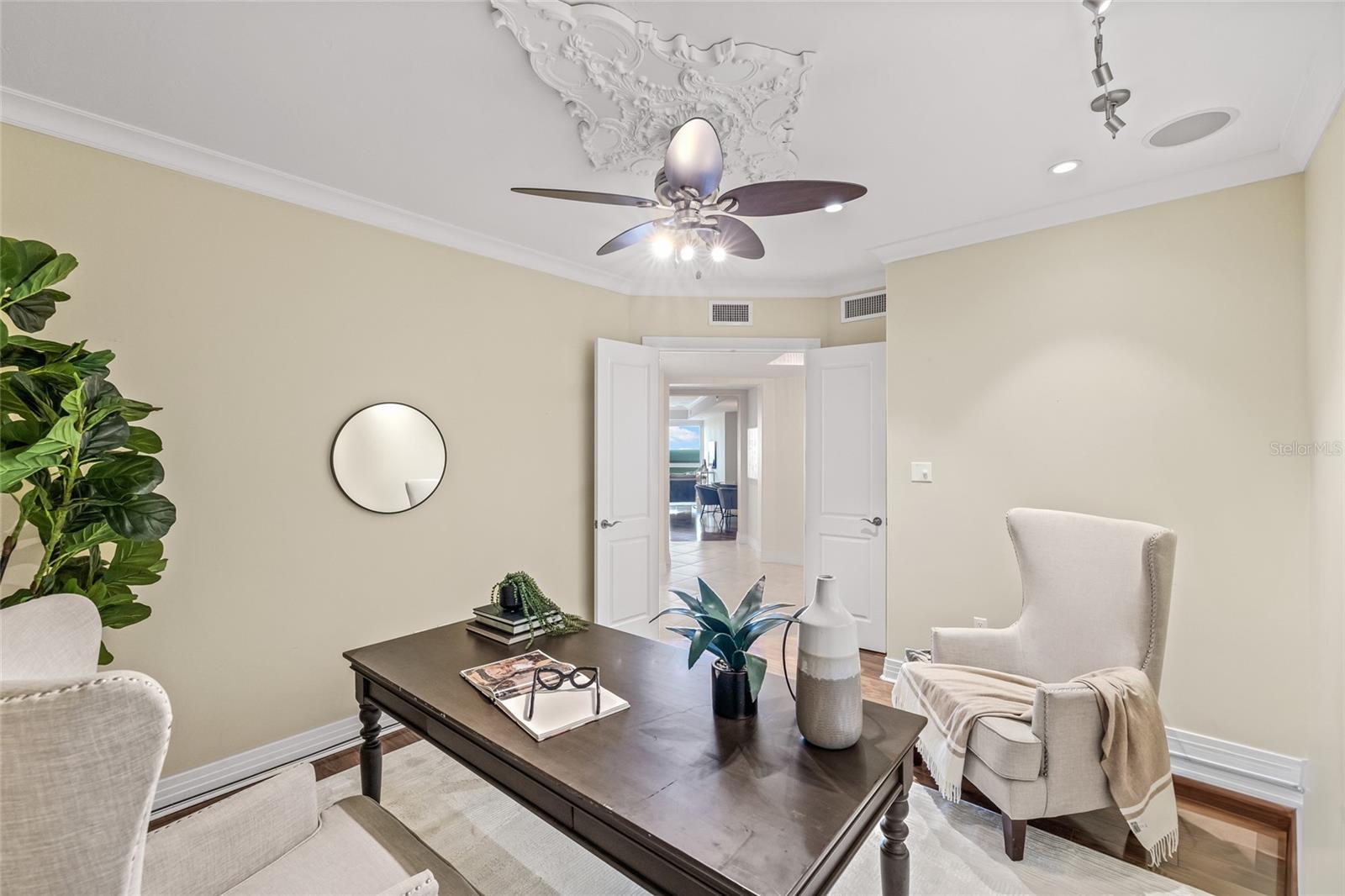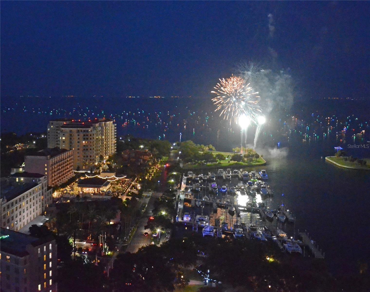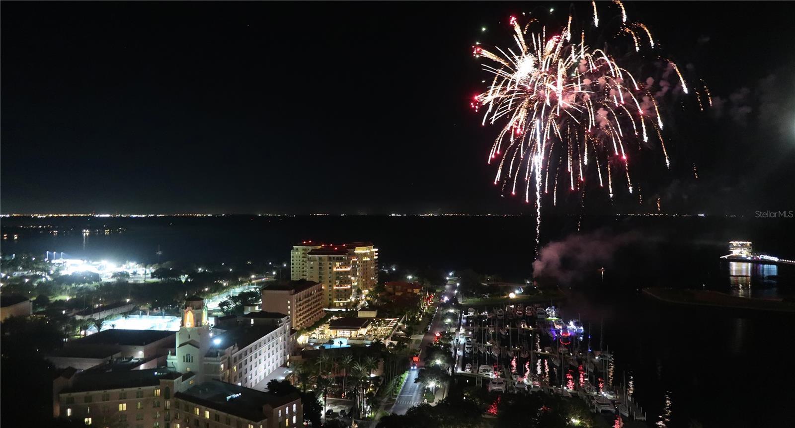 Sweeping views greet you from the moment you step through the private foyer into this 23rd-floor home overlooking the historic Vinoy Hotel! Few buildings in St Petersburg offer the Luxury Level of Amenities of 400 Beach Dr such as 24-hour concierge, expansive amenity deck, updated fitness center with modern equipment and expansive club room. This beautifully designed 2-bedroom, 2-bath residence offers 2,203 sq ft of upscale living with unobstructed views of Tampa Bay. From sunrise to sunset, take in the stunning backdrop of water and beautiful northeast views from nearly every room. Step off the elevator into your private foyer, a special feature compared to typical common hallway buildings. This quiet and secure entrance leads directly into your residence. As you walk into the main living area, you are immediately greeted by wall-to-wall windows, filling the space with natural light and water views. In addition to the two spacious bedrooms, this home features a generously sized office that offers flexibility as a media room or den—great for guests or working from home. The open layout is perfect for both everyday living and entertaining, and features Crestron electric shades and lighting throughout. Step out to the balcony—accessible from both the kitchen and the primary suite—for your morning coffee or an evening glass of wine with views of the illuminated St Pete Pier, Vinoy Marina and seasonal firework displays. This well-maintained residence offers the ease of low-maintenance with a lock-and-go lifestyle—ideal for full-time or seasonal living. The HOA fee covers an impressive array of amenities including 24/7 concierge service, heated lap pool and spa, fitness center to rival any local gym, multiple social rooms, outdoor fireplace for cool nights, immaculately maintained grilling stations, water, sewer, trash and low-cost high-speed internet and cable. Recently the HOA has shown its committed stewardship of the building with 2025 refresh of the outdoor amenities, fresh exterior paint in 2024 and investment in top fitness equipment. The home comes with two side-by-side covered parking spaces with an EV charger in the secured garage. Set in the heart of Downtown St. Pete on iconic Beach Drive, you’re just steps from parks, the Pier, waterfront trails, top-rated restaurants, boutique shopping, and world-class museums. Whether you're enjoying the vibrant downtown energy or relaxing in your private home with a view, this residence offers the best of both worlds. Call to set up your private showing today!