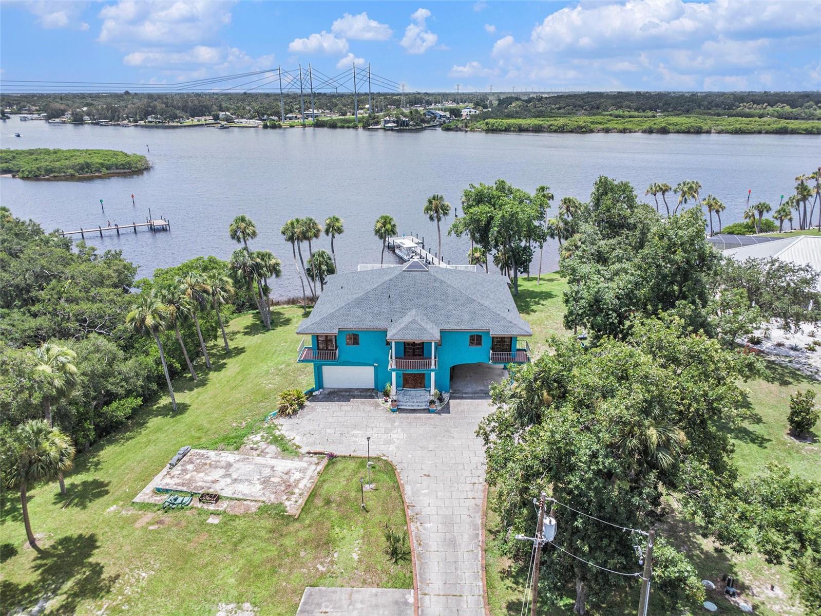 Your slice of paradise awaits! Check out the unparalleled opportunity of this unique waterfront property that offers room to grow or space to roam. Land development? Or create your own estate or family compound. This home is located on approximately 6 acres where you can enjoy captivating views of the Alafia River. Unique character abounds in the one of a kind home built by a former ship builder. Bring your vision and transform this diamond in the rough to your dream home. 4 bedrooms, 3 full baths and two half baths. Highlights include two en-suites, a beautiful kitchen with custom cabinets, stone fireplace, skylight with an art deco chandelier, beach themed master bath, walk-in attic, rooftop balcony and a massive enclosed garage area with multiple roll up doors. Ideally located, minutes to shopping, restaurants, medical and the interstate and minutes to Tampa Bay by water.