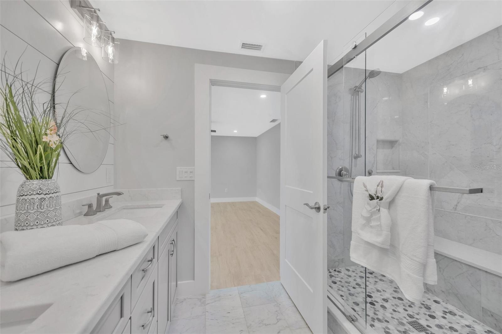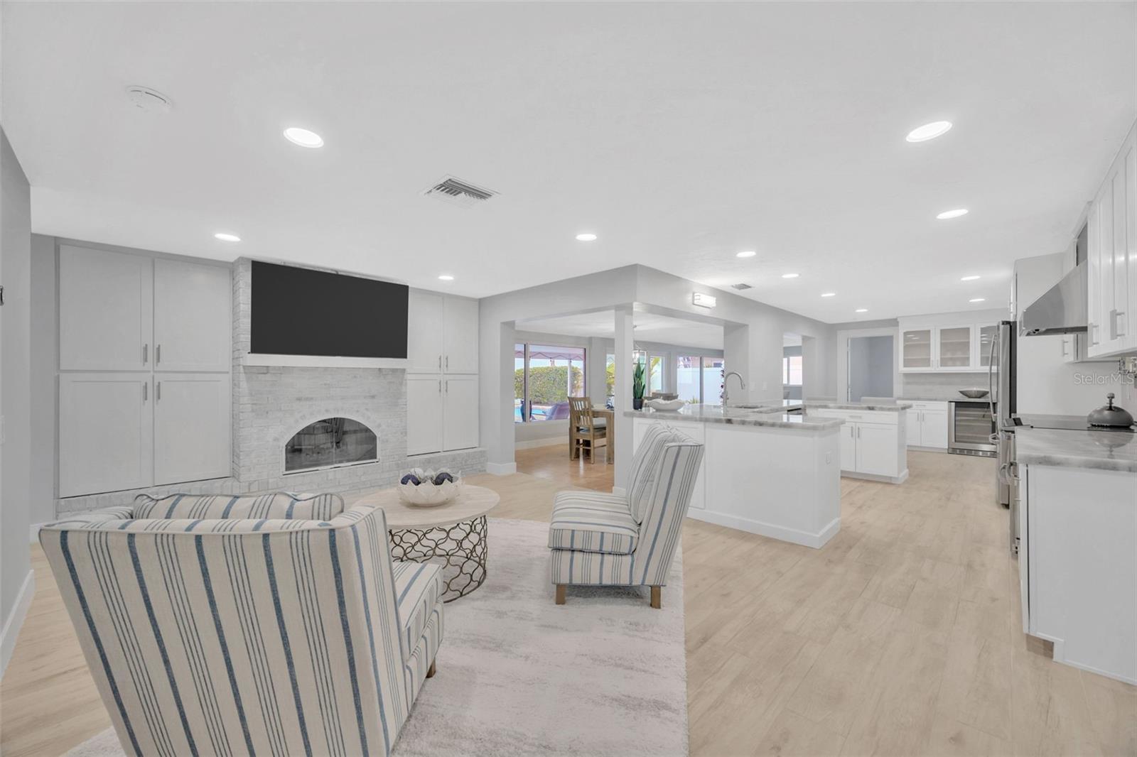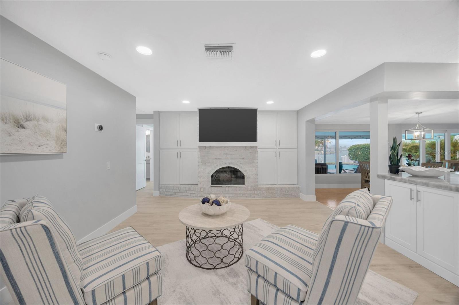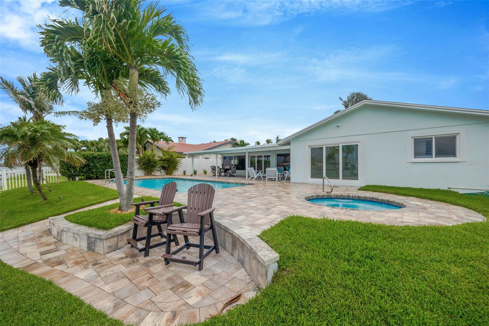 One or more photo(s) has been virtually staged. Florida Living at it’s BEST on the water, with a boat lift/dock/jet ski pad, salt water pool and spa! This amazing home is located on 3rd Palm Point, one of the Gulf Beaches most desirable waterfront neighborhoods, and so close by boat to countless sandbars, islands, beaches and the Gulf of Mexico while minutes by golf cart or bicycle to beautiful St. Pete Beach, shops and restaurants! This coastal home, with over 2300 heated sq feet of multiple living areas, features a chef’s dream with an open concept kitchen, NEW gorgeous granite countertops, NEW wood cabinets with pull- out hidden features, breakfast bar, NEW stainless steel appliances, dry bar with lighted glass front and a NEW wine refrigerator; perfect for gathering inside or out! The kitchen ebbs into the family room with a wood-burning fireplace, flatscreen TV and built-in custom storage cabinets while also flows into the Florida room and Flex Office Space with triple panel sliding pocket doors for indoor or outdoor dining and entertaining. The expansive living room is perfect for relaxing and enjoying a movie or captivating book. The split bedrooms provide so much privacy; the primary master suite overlooks the waterfront, also with 3 panel sliding pocket doors providing direct access to the paver pool deck, enormous walk-in closet and bath with dual sinks, generous storage, and double head glass enclosed shower. Spacious 2nd bedroom also offers as sitting area and in-suite bath with tub/shower. While the 3rd bedroom, off the family room, utilizes a huge bath with a glass enclosed shower. The interior laundry room houses NEW LG front loaders and ample storage space. An oversized garage gleams with a sealed floor, while other features include a half governor’s driveway, whole house water softener, propane tankless hot water heater, hurricane windows with sliders, salt water pool, propane-heated spa, and concrete brick paver deck. The private dock is a Boaters personal oasis with Trek planks, 10,000 lb boat lift, on-site water/electric, storage, and a floating dual jet ski pad! It is so easy to soak in endless sunsets with 500 sq.ft covered lanai space, 1500 sq.ft of pool/deck and 250 sq.ft of private dock – all on Boca Ciega Bay. Don’t delay any longer and experience YOUR new Florida lifestyle in YOUR new waterfront home!