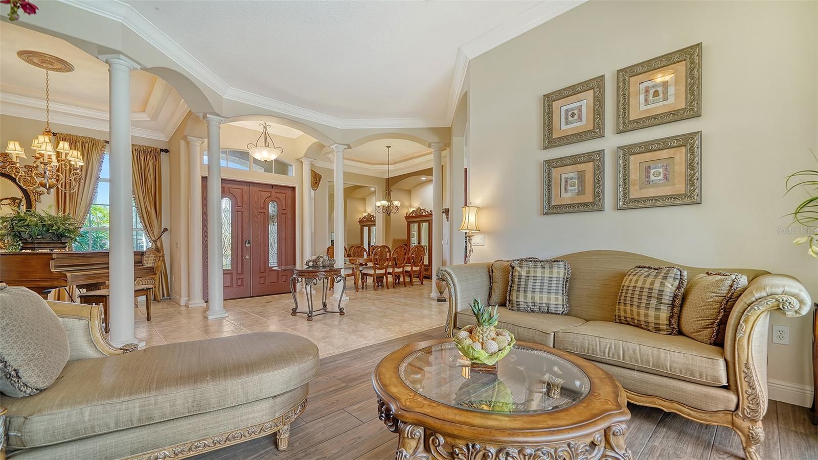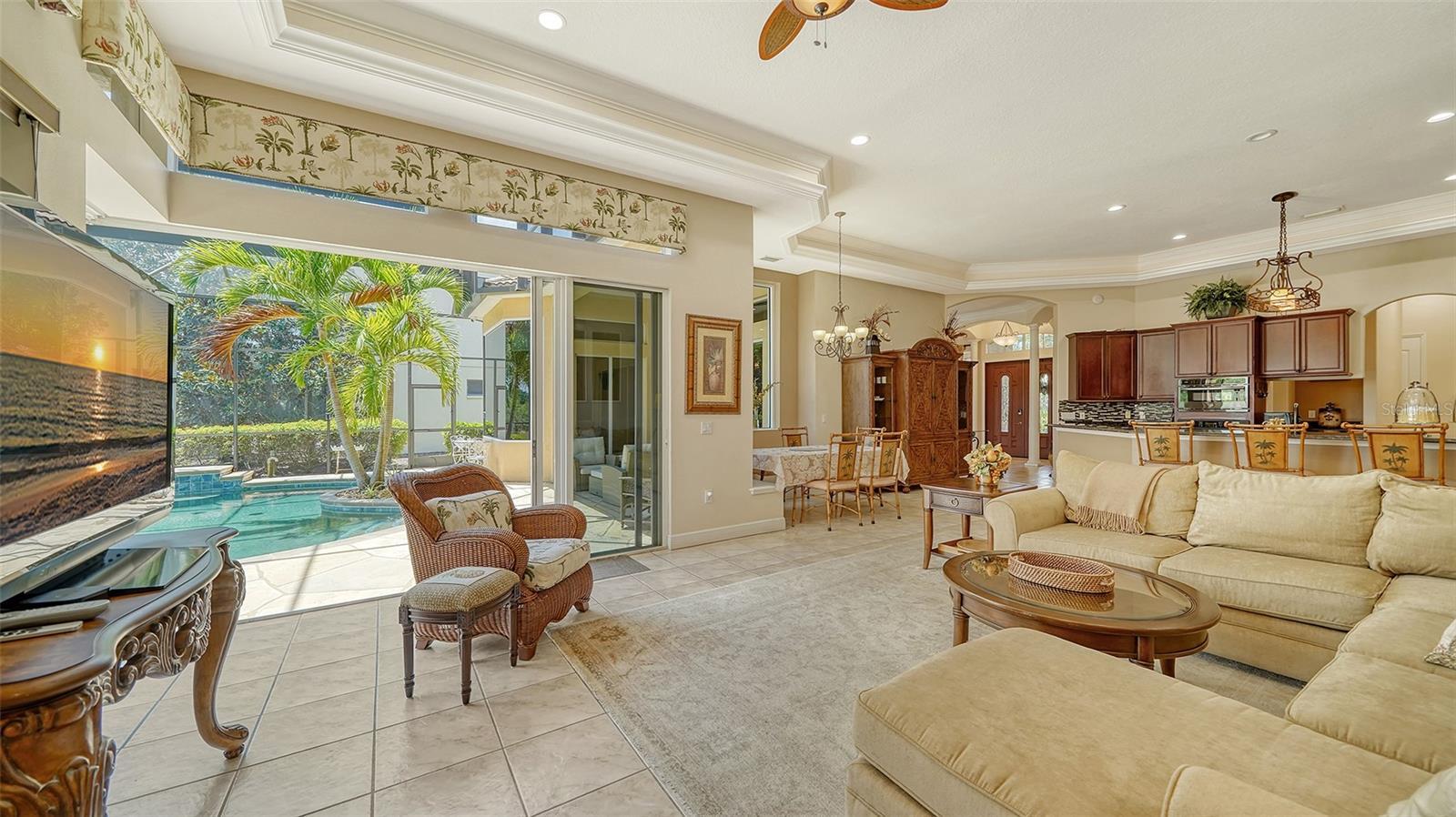 Under contract-accepting backup offers. Professionally Decorated, Turnkey Pool Home in the Heart of Lakewood Ranch! This stunning home is the epitome of style, comfort, and convenience—expertly curated by a professional interior designer and offered completely turnkey. Every element, from the custom window treatments to the tasteful furnishings and accessories, has been selected with purpose and precision. The result? A home that radiates warmth, elegance, and effortless livability from the moment you walk through the door. Step into a spacious, light-filled foyer that immediately sets the tone for what’s to come. To your right, a cozy den overlooks the screened-in pool and lanai—ideal for morning coffee, quiet reading, or simply relaxing in style. Continue into the open-concept living area where the beautifully appointed kitchen steals the show with its quality finishes, ample cabinetry, and thoughtful layout that makes both cooking and entertaining a pleasure. The first floor features a split-bedroom plan with a luxurious master suite, a dedicated office, and two additional bedrooms—all with easy access to the private pool area through oversized sliding glass doors. The master suite is a true retreat with elegant décor, abundant natural light, and spa-like finishes. Head upstairs and you’ll find two more bedrooms, a generous bonus room, and a private balcony with serene views of the pool and the peaceful waterway beyond. Behind the home, a lush wooded preserve adds privacy and natural beauty—your own slice of Florida paradise. Located in one of the most desirable neighborhoods in Lakewood Ranch, this home offers the perfect balance of upscale living and everyday convenience. You’ll be just minutes from shopping, dining, parks, and top-rated schools—including one of the area’s best middle schools within walking distance. Whether you're a full-time resident or seasonal homeowner, this location checks every box. Mature landscaping, meticulously maintained, enhances the curb appeal and reinforces the care that has been poured into this property—both inside and out. But what truly sets this home apart is its turnkey nature. Unlike most furnished listings, everything stays (aside from a few personal items). This is not a house that gets stripped bare after the sale—it remains a fully designed, move-in-ready home. Just bring your clothes, your toothbrush, and maybe a bottle of wine to celebrate—you're all set. Don’t miss this rare opportunity to own a completely move-in-ready home that delivers on luxury, location, and lifestyle. Homes like this don’t come around often—especially not in Lakewood Ranch, one of the nation’s most sought-after communities. Schedule your private showing today and step into a home that’s as extraordinary as the lifestyle it offers.