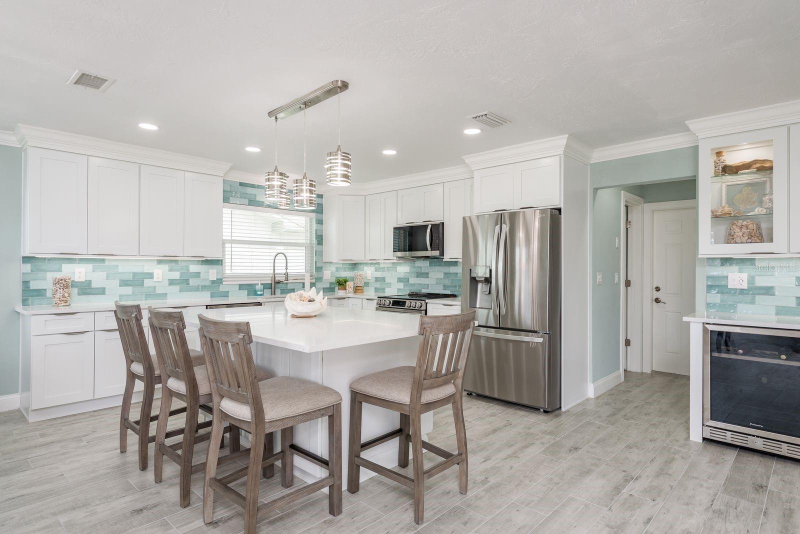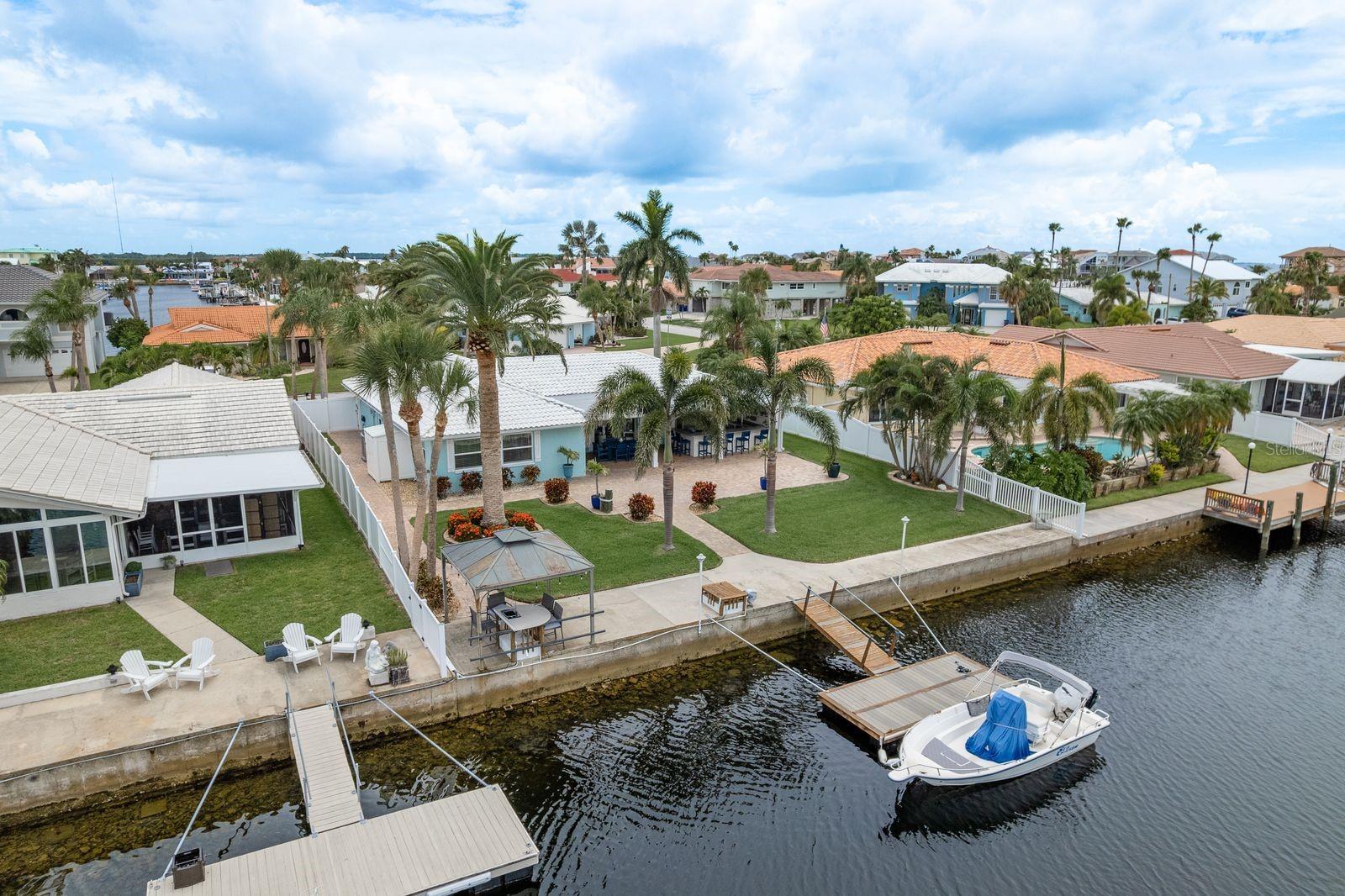 BACK ON THE MARKET WITH BRAND NEW ROOF '25. Welcome to your dream waterfront retreat at 3301 Seaway Drive, located in the highly sought-after boating community of Gulf Harbors in New Port Richey. This beautifully updated 2-bedroom, 2-bath home offers 1,640 square feet of thoughtfully designed living space on one of the widest and deepest sailboat-friendly canals in the neighborhood—just minutes to the open Gulf with no bridges to navigate. The home sits on a large lot with 75 feet of seawall, and a floating dock, 1200SF of outdoor living space and ENOUGH ROOM FOR YOUR VERY CUSTOM - POOL, making it a true boater’s paradise. Inside, the open floor plan provides privacy and functionality, while the updated kitchen features a beautiful island, quartz countertops, white cabinetry, retractable outlets and new stainless steel appliances. Luxury ceramic tile, plantation shutters, and crown molding that add comfort and style throughout. The spacious primary suite includes sliding doors leading to the bar and outdoor entertainment area, a walk-in closet, and a private bath with a step-in shower. You are going to love all the natural lighting this home has to offer. Step outside to enjoy your outdoor space, lush landscaping, and fenced yard perfect for entertaining or relaxing in the Florida sun. Recent upgrades include new baseboards, flooring throughout, quartz countertops and fixtures in bathrooms, new blown-in insulation, new pavers, freshly painted and new landscape. Gulf Harbors offers an optional private beach club just two blocks away for only $200 per year, featuring white sand, cabanas, grills, and stunning sunsets. The optional Civic Association membership ($125/year) includes access to community events, clubs, and two boat ramps. Located close to downtown New Port Richey’s shops, restaurants, Sims Park, and the scenic Cottee Riverwalk, this home offers the perfect blend of coastal charm, modern upgrades, and unbeatable location. Don’t miss your chance to live the Florida lifestyle—schedule your private showing today!