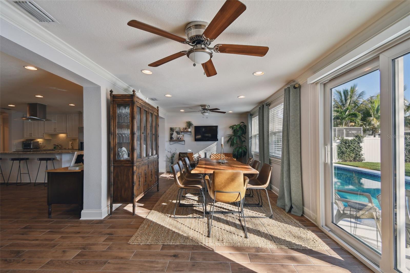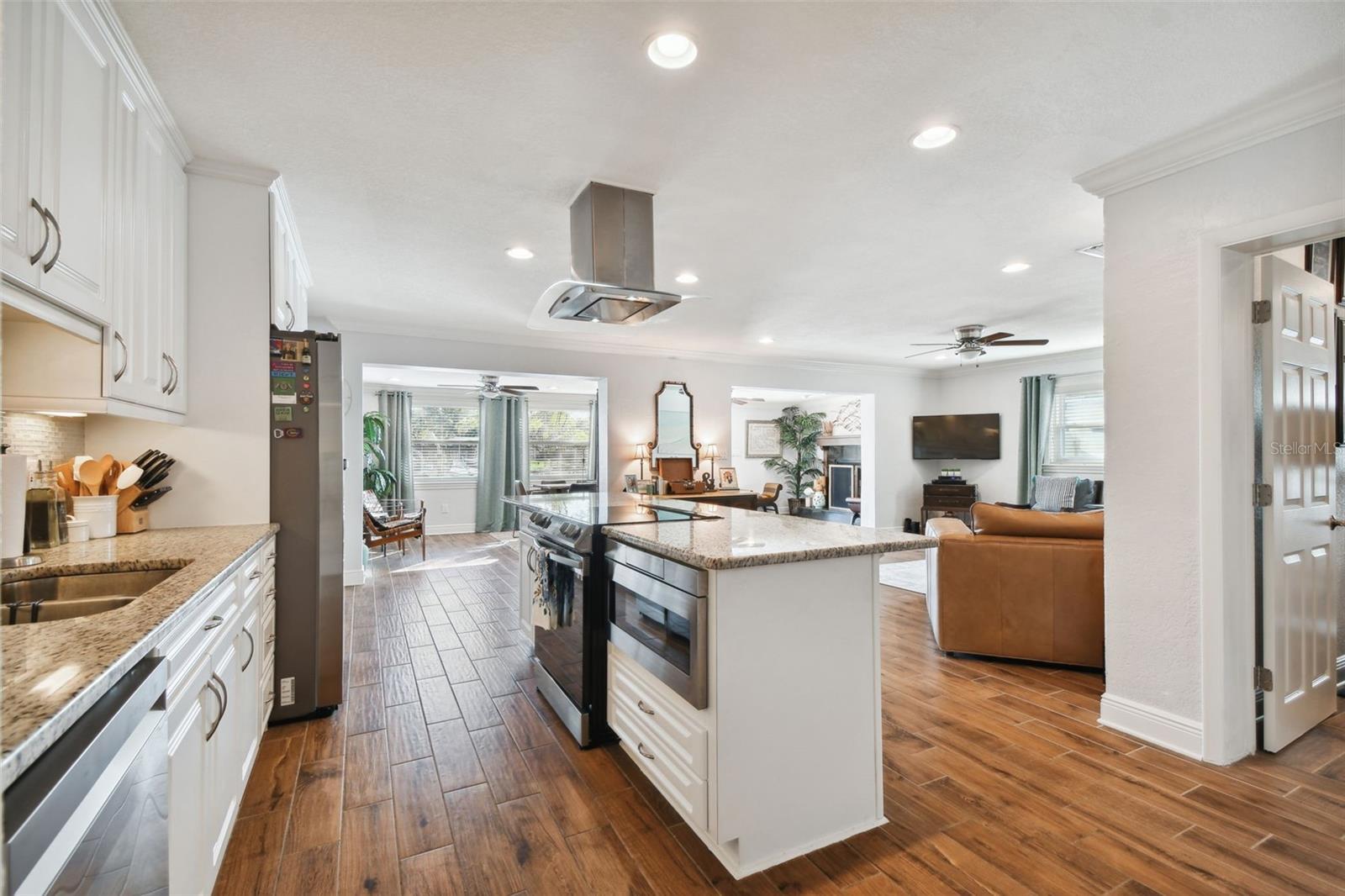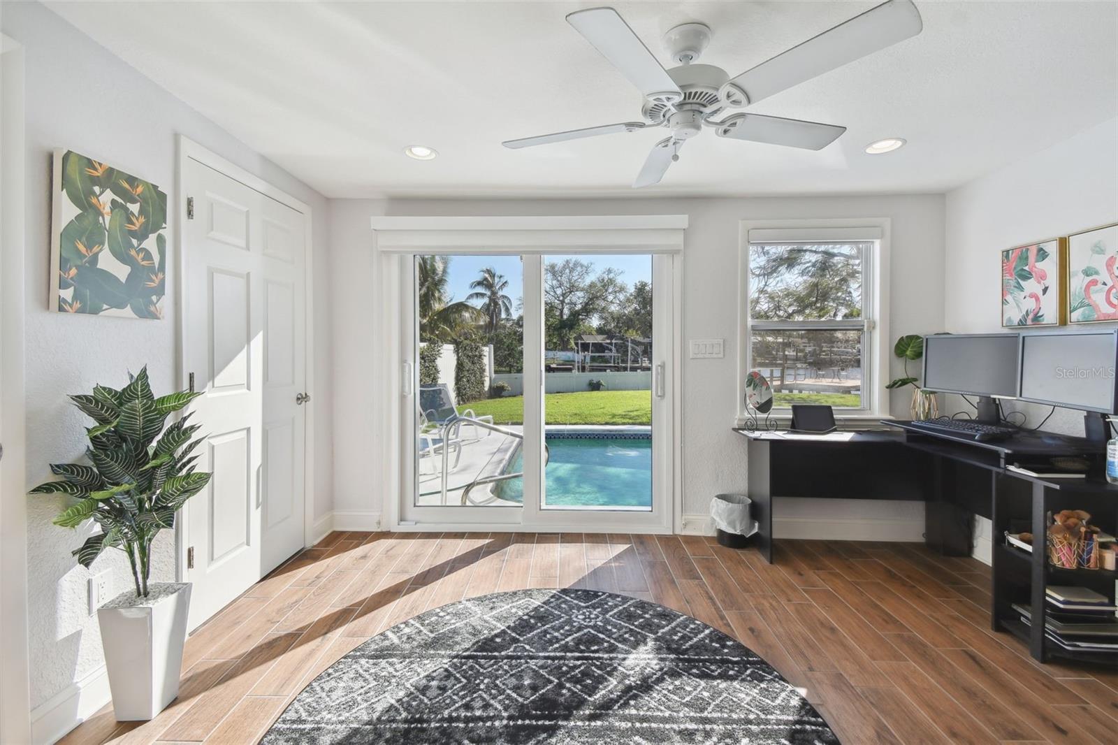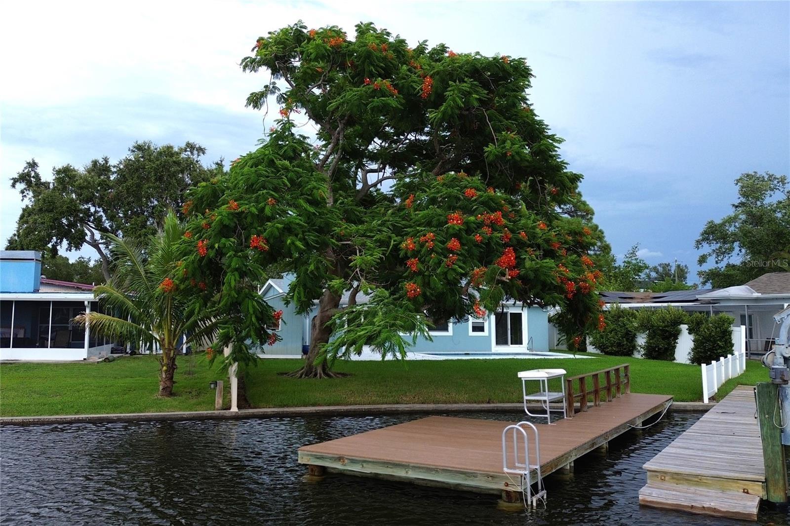 Enjoy modernized waterfront living just minutes from downtown St. Petersburg in this three-bedroom, two-bath home with nearly 2,000 square feet of thoughtfully designed space. A bonus room and one-car garage add flexibility, while the open layout includes wood-look tile flooring, recessed lighting and a chef’s kitchen with white cabinetry, stainless steel appliances, granite countertops and an oversized island with extended prep space. The backyard features a private pool, dock with new concrete wraps and a mature Royal Poinciana tree that blooms each summer. Recent upgrades include a new roof, elevated HVAC system and a Dam It Defense Flood Prevention System — a reinforced aluminum barrier system engineered for added protection during extreme weather events, transferrable to the new owner. The bonus room offers washer and dryer hookups and flexible use. A detached shed, one-car garage and long driveway add storage and parking. This turnkey home blends indoor-outdoor living with sought-after coastal access.