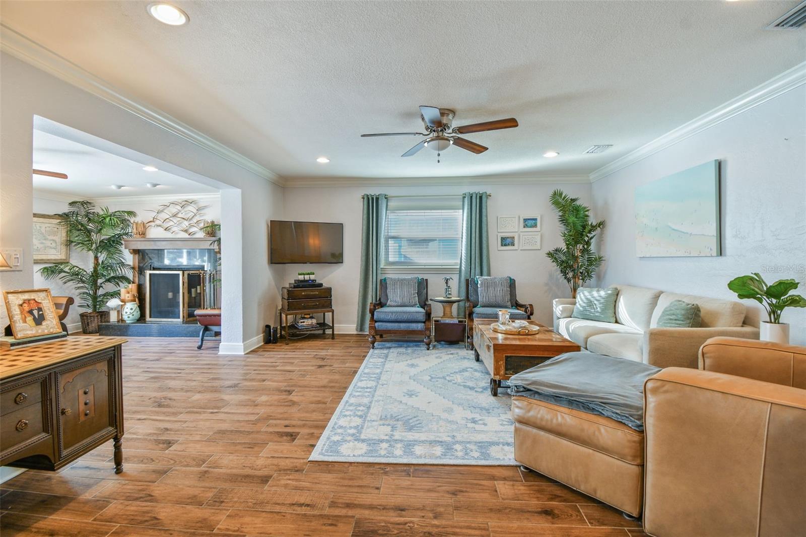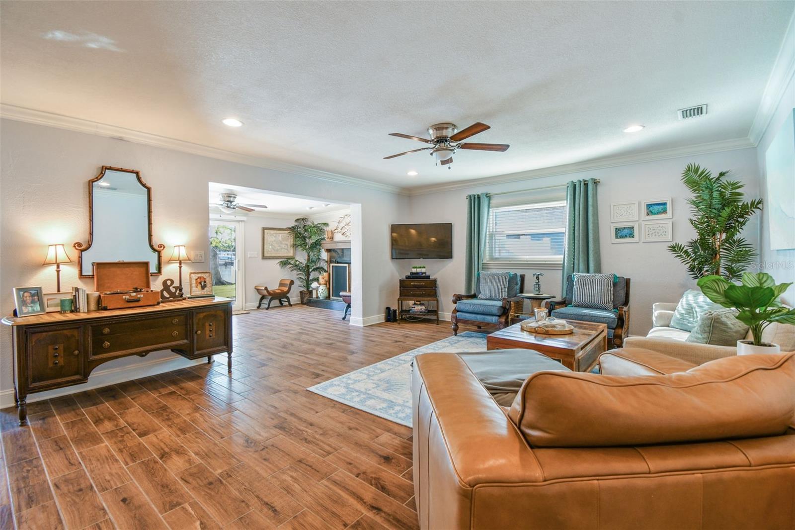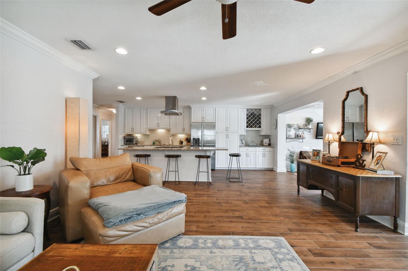 - Ceiling Fans(s), Crown Molding, Eat-in Kitchen, Kitchen/Family Room Combo, Living Room/Dining Room Combo, Open Floorplan, Primary Bedroom Main Floor, Thermostat