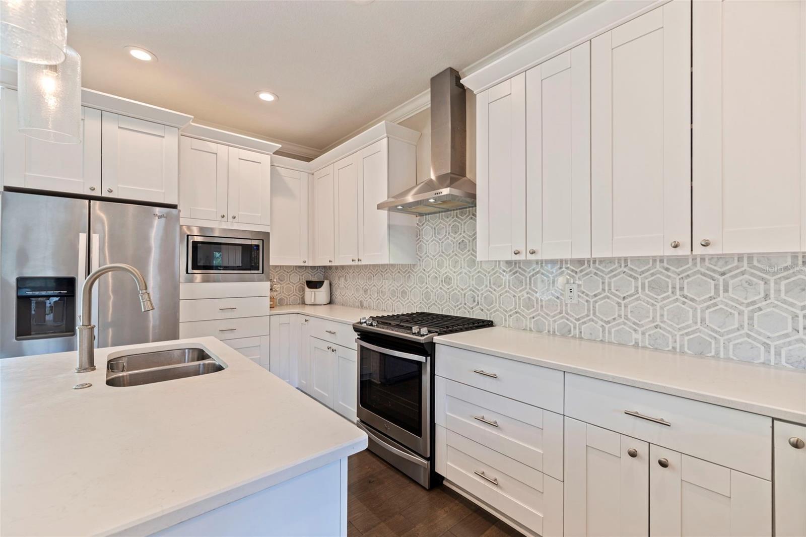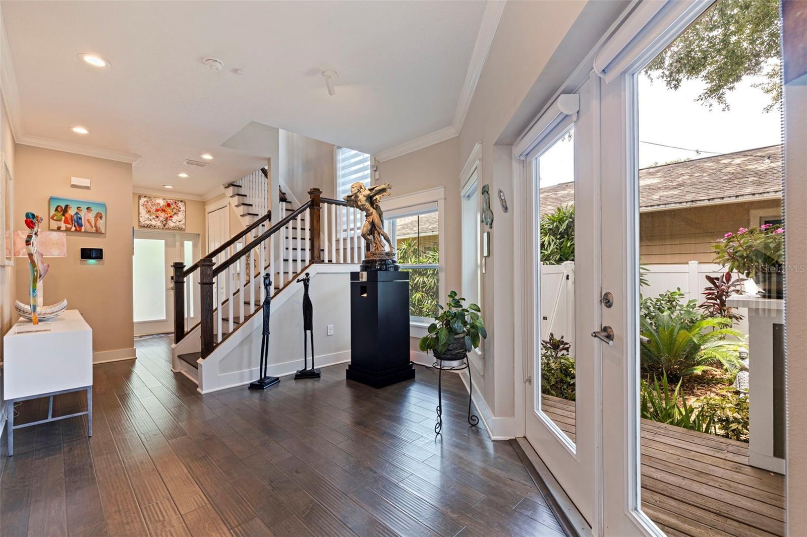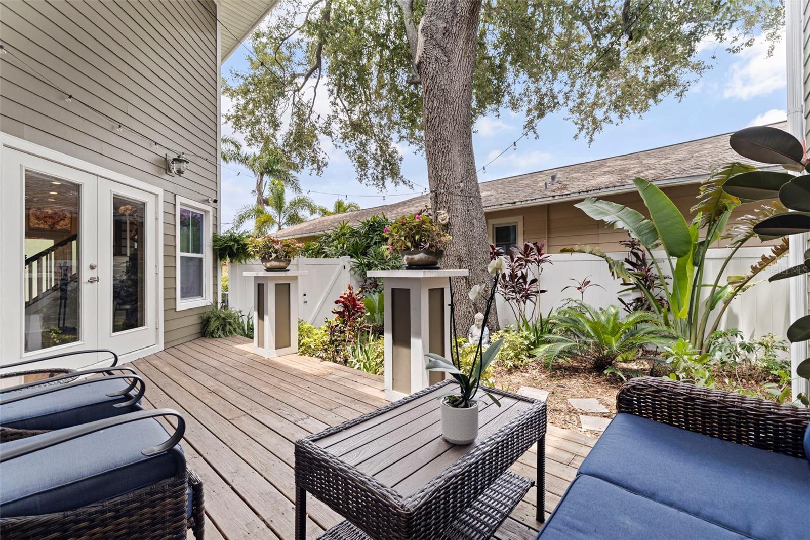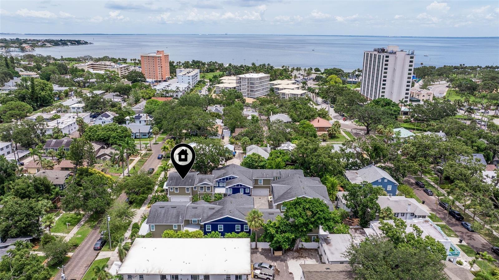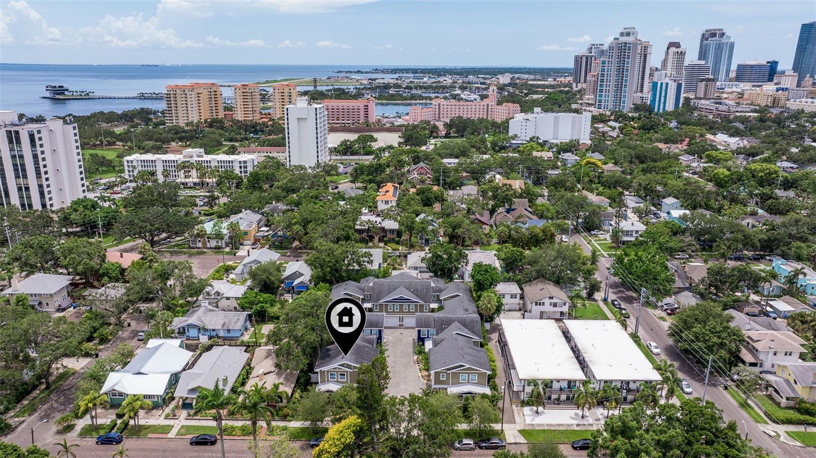 Under contract-accepting backup offers. Located in the highly sought-after Historic Old Northeast neighborhood in a NON-FLOOD ZONE this impeccably designed 2-bedroom and den/bonus room, 2.5-bath townhome, built in 2017, offers the perfect blend of classic charm and modern convenience. With 2,096 sq ft of thoughtfully designed space, this two-story masonry block construction townhome is positioned at the front of a boutique 8-unit community, offering a single-family home feel with a large front porch featuring a charming swing and a private, cozy backyard ideal for outdoor entertaining or grilling. Just a 10-minute walk and six blocks from vibrant downtown, this home is in the perfect location. The open-concept first floor is designed for both everyday living and entertaining, featuring a spacious dining room and a beautifully appointed kitchen with custom soft-close solid wood cabinetry, quartz countertops, a stylish backsplash, and stainless steel appliances with natural gas range. The living room effortlessly transitions into the kitchen and overlooks French doors that lead to the private backyard. An oversized 2-car garage is seamlessly integrated into the home, offering easy access. Completing this level is a well-designed half-bath. Upstairs, you’ll find a spacious family room, a private laundry room, and a generously sized guest bedroom with an en-suite bathroom. The primary bedroom is a true retreat, complete with a large walk-in closet and a spa-like en-suite bathroom featuring an oversized frameless glass shower and premium fixtures. This home is loaded with thoughtful upgrades, including a new HVAC system (2024), wood flooring throughout, crown molding, custom blinds, hurricane-impact windows, built-in closet systems, a built-in Murphy bed, ceiling fans in every room, and lush landscaping in the backyard. The entire home is equipped with a whole-house water filtration system, ensuring the utmost comfort and convenience. Located just moments from the vibrant downtown area, with its eclectic shops, acclaimed restaurants, and picturesque Tampa Bay waterfront, this move-in-ready townhome offers the ultimate in comfort, style, and location. Experience Florida living at its finest—schedule your private showing today!