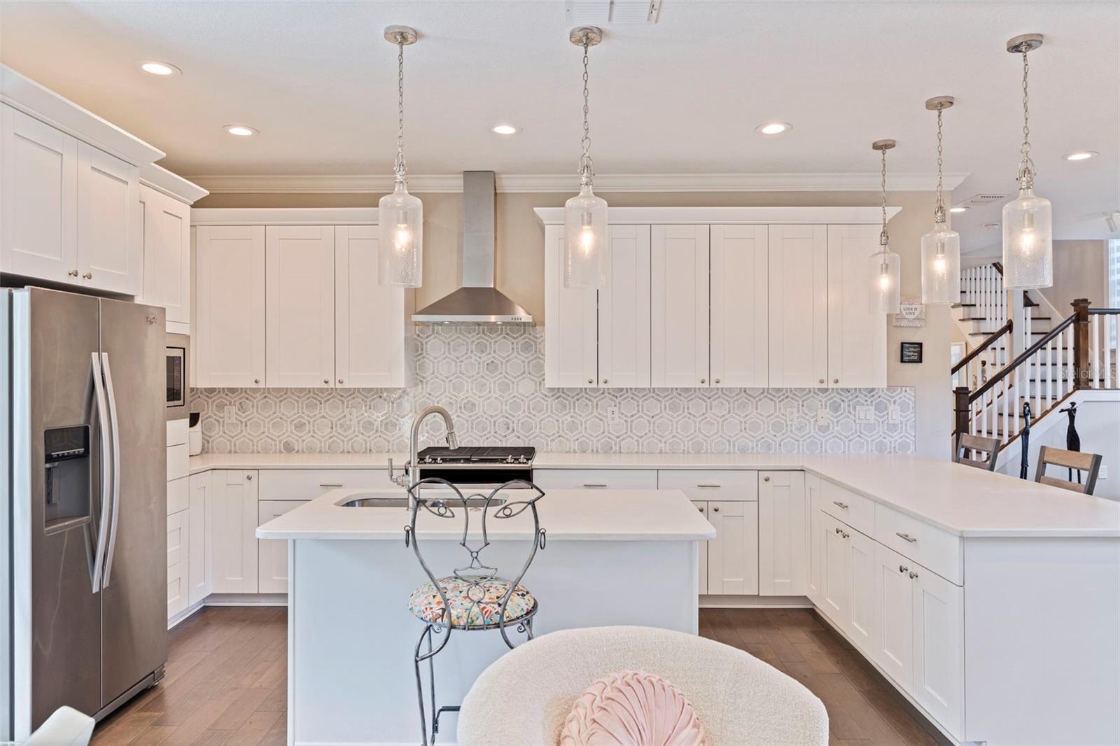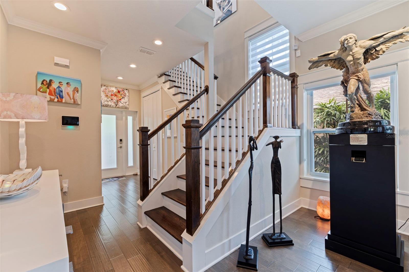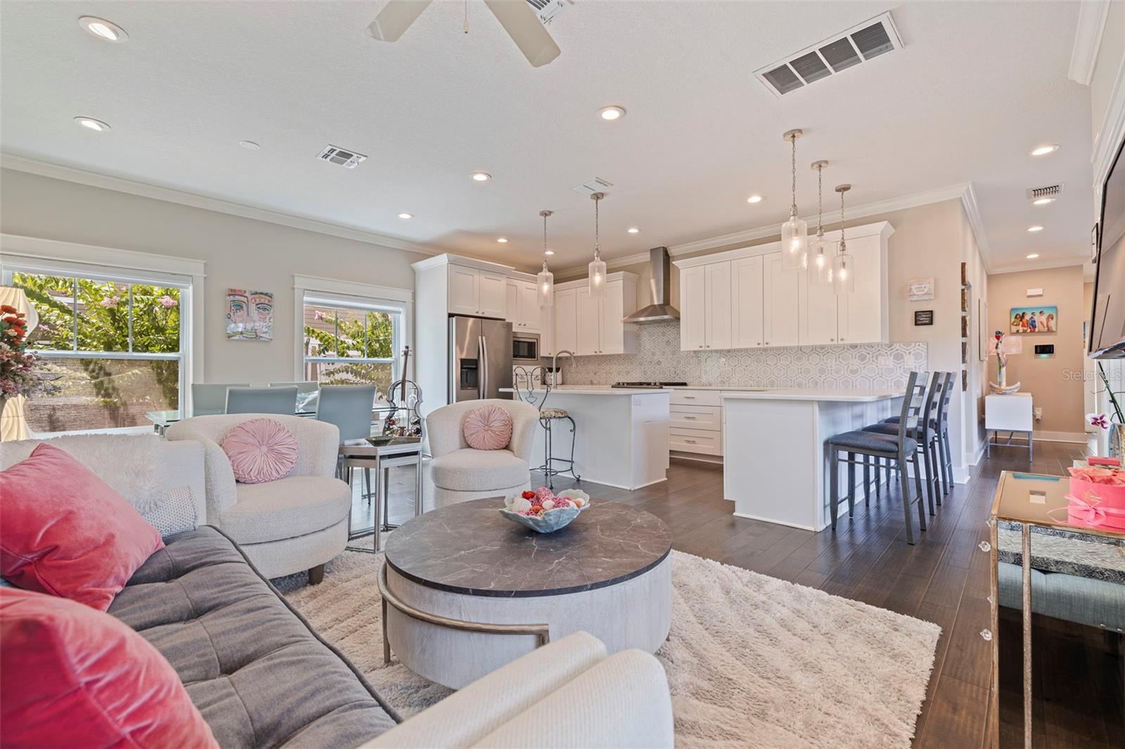 - Ceiling Fans(s), Crown Molding, High Ceilings, Kitchen/Family Room Combo, Open Floorplan, Solid Wood Cabinets, Stone Counters, Walk-In Closet(s), Window Treatments